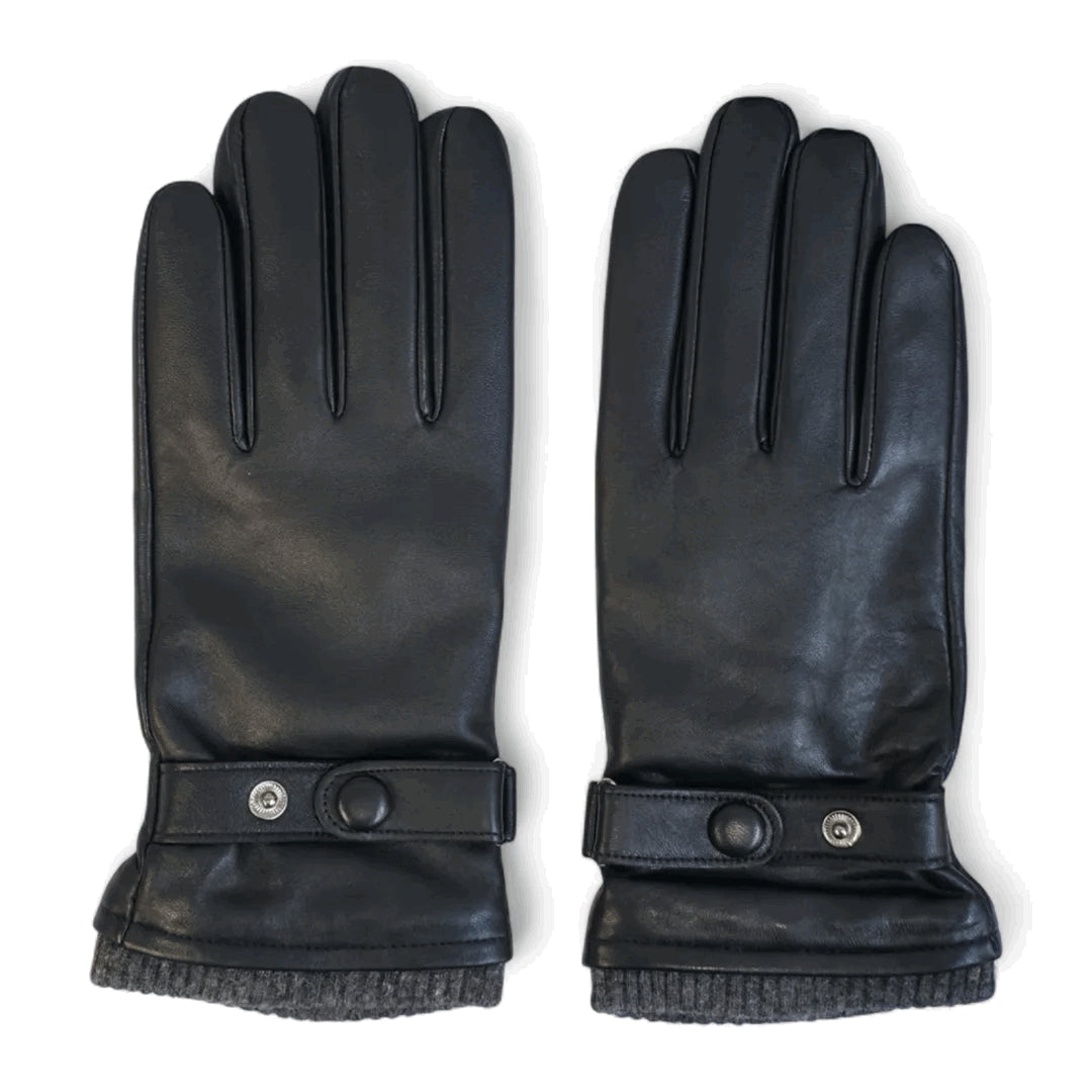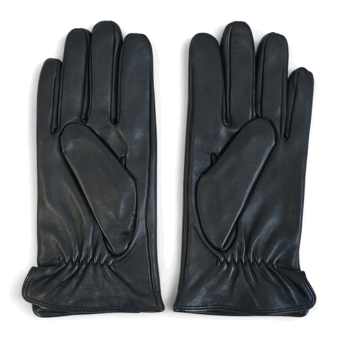 Men's Leather Wool Lined Elastic Wrist Gloves