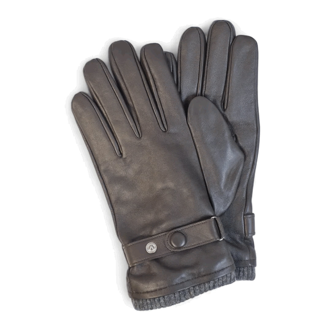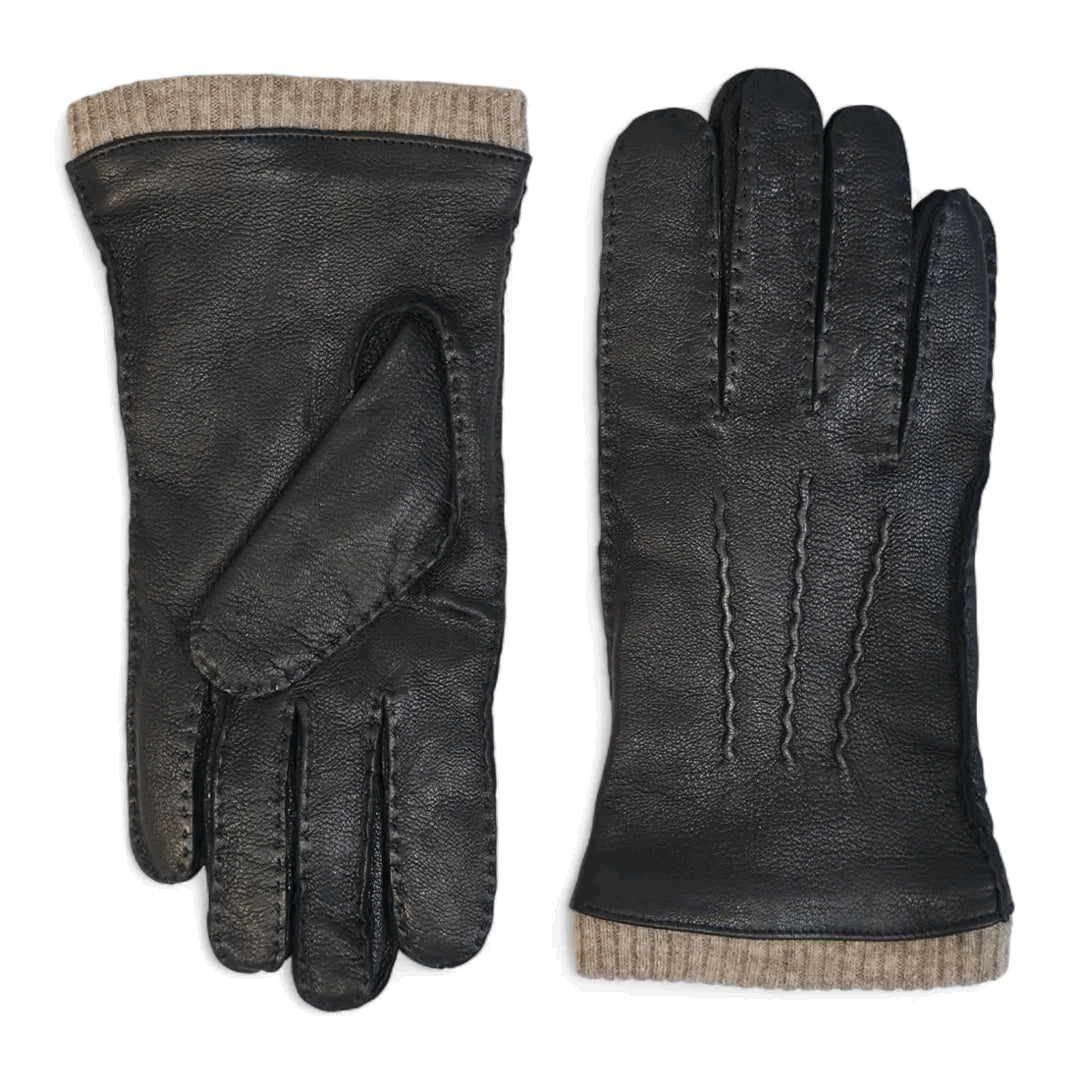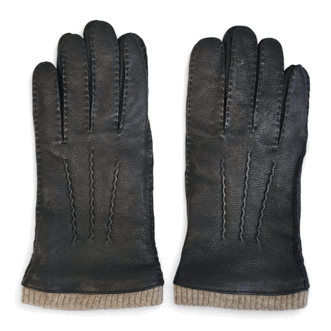 Men’s Genuine Leather Ribbed Knit Cuff Gloves