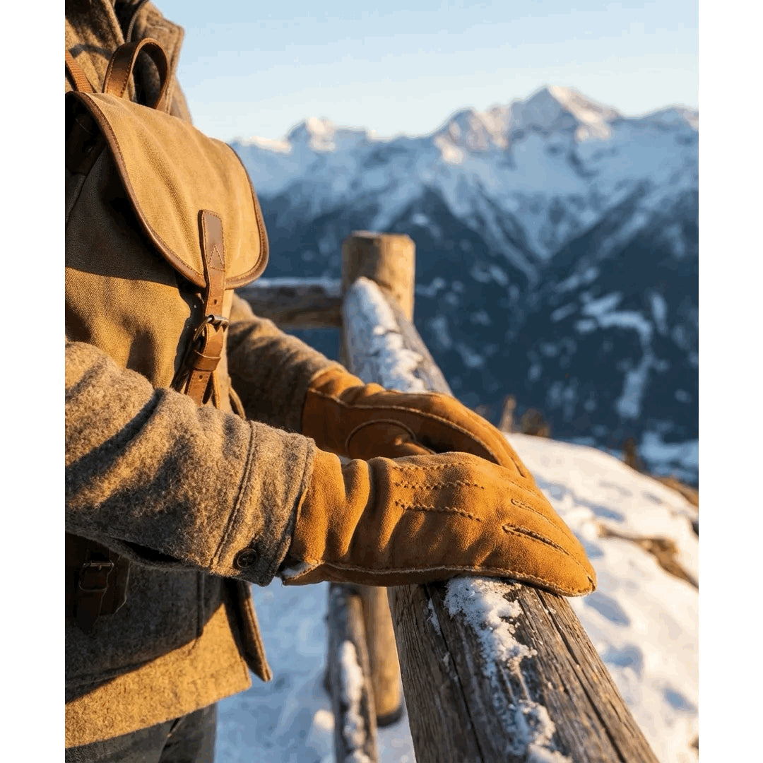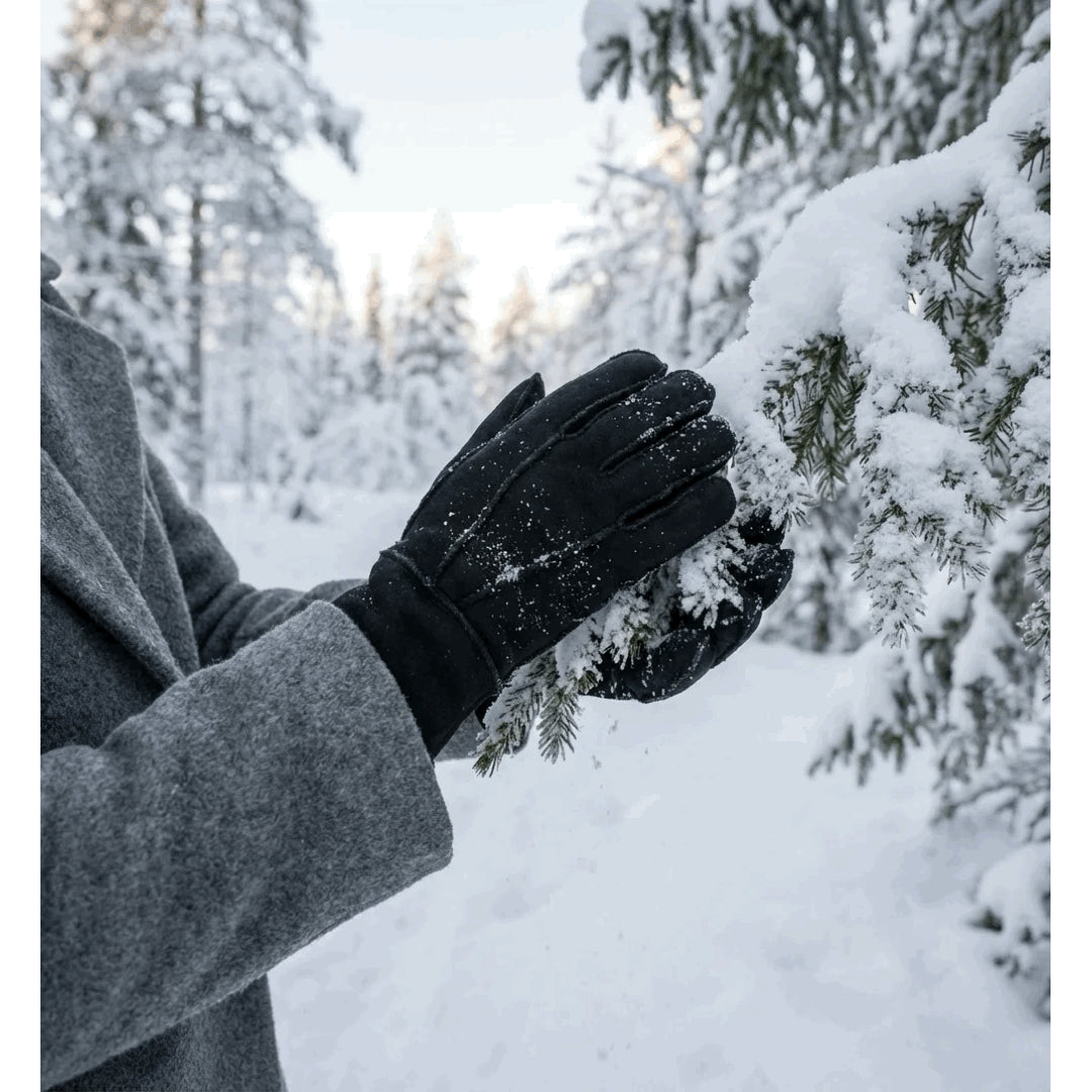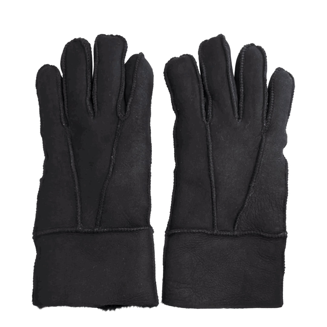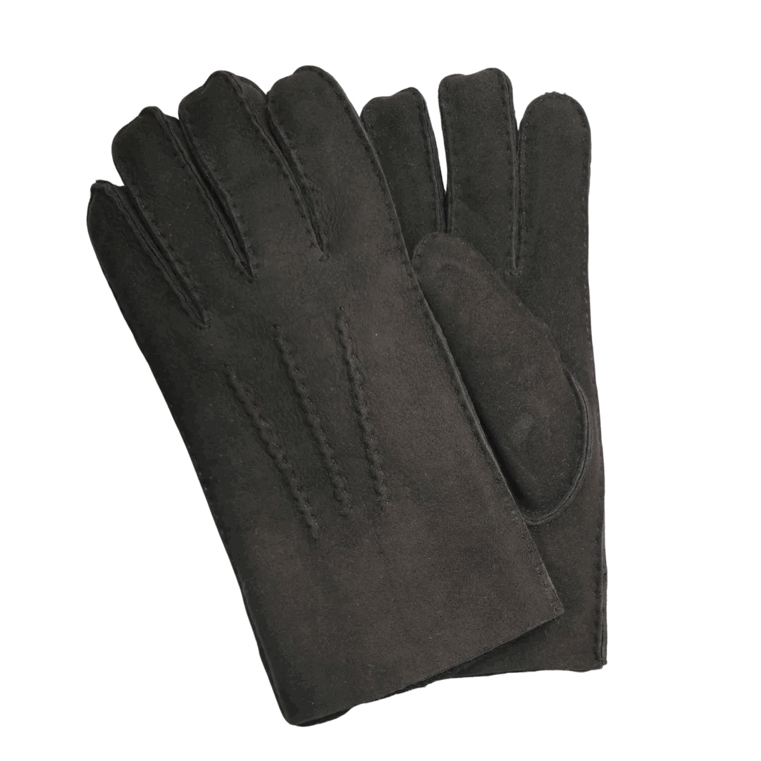 Unisex Suede Leather Shearling Wool Lined Thermal Gloves