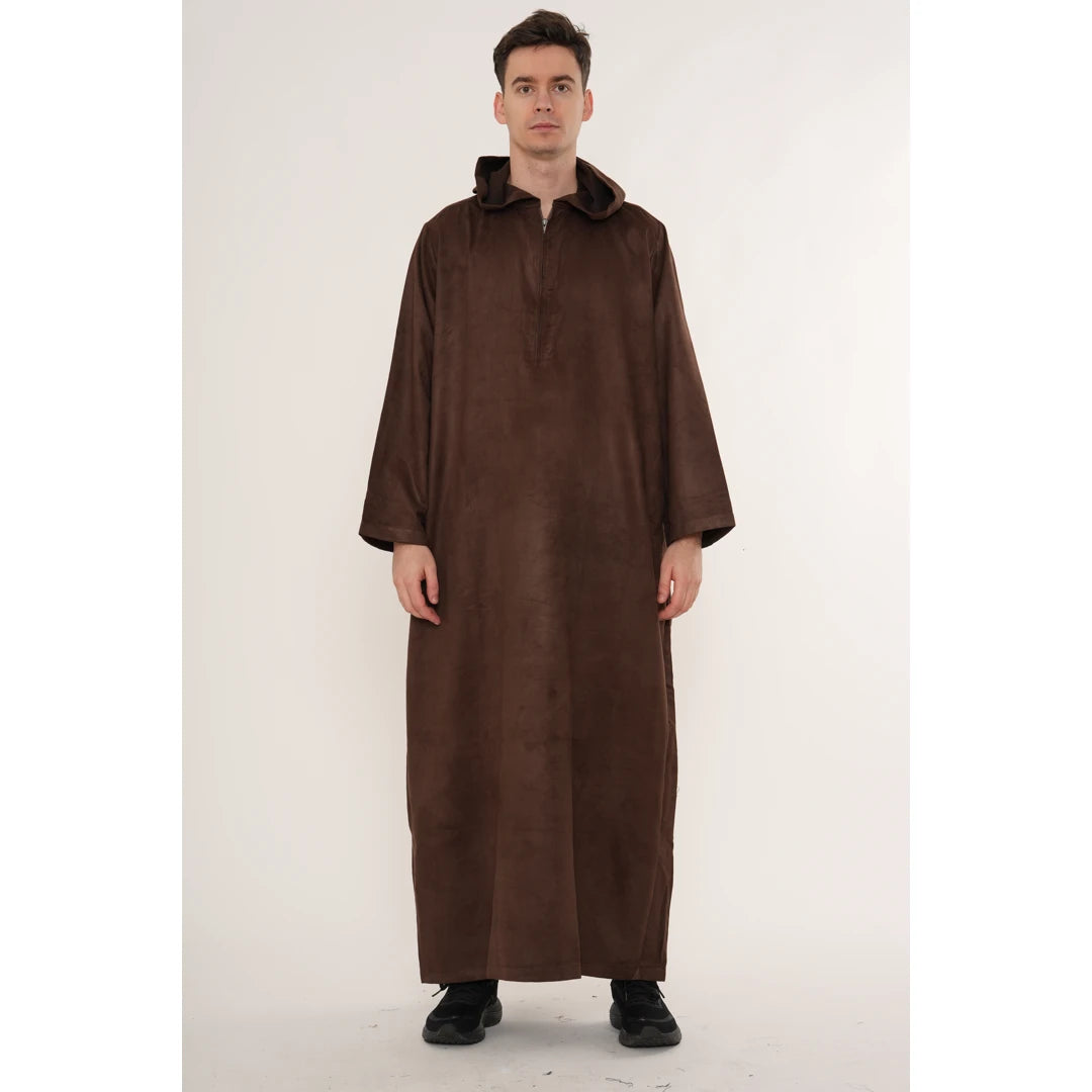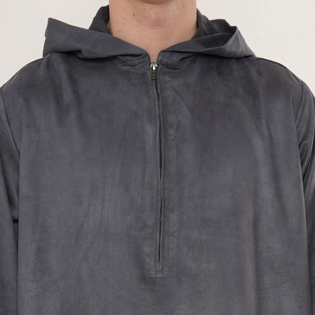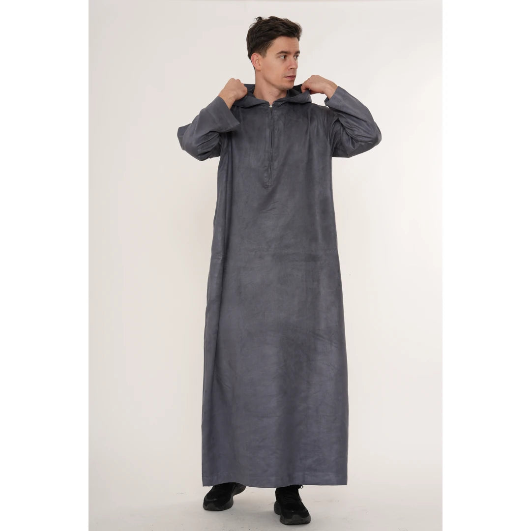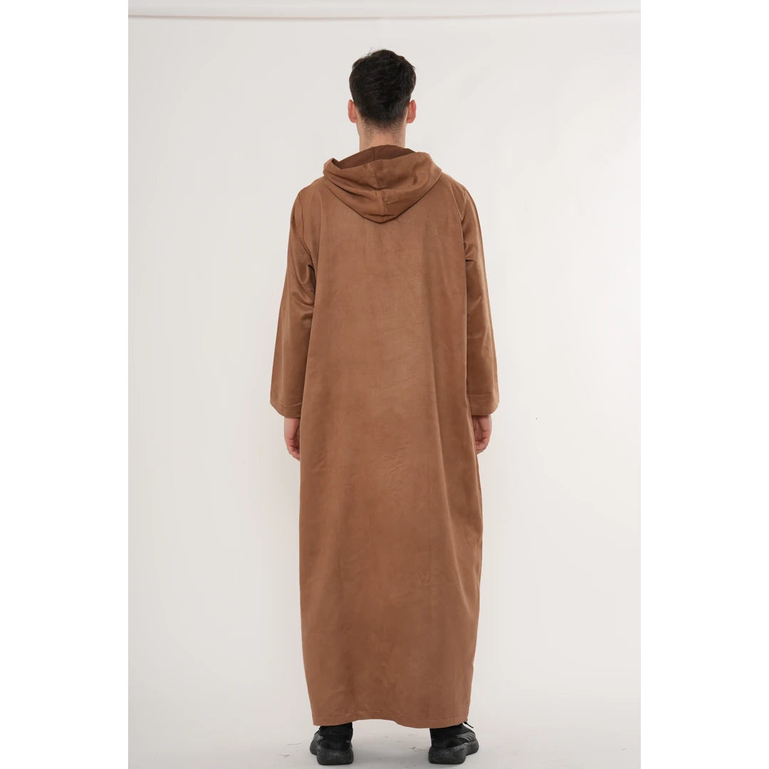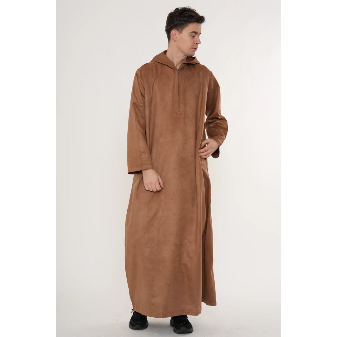 HM12 - Men's Hooded Suede Emirati Omani Zipped Thobe