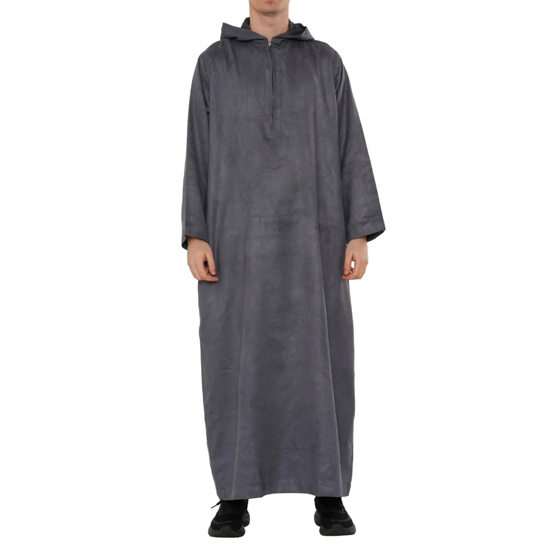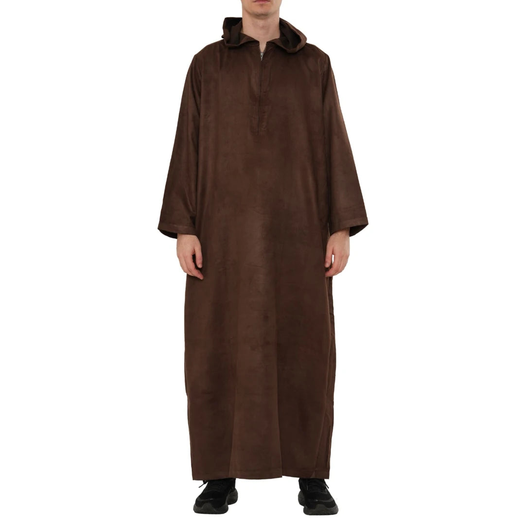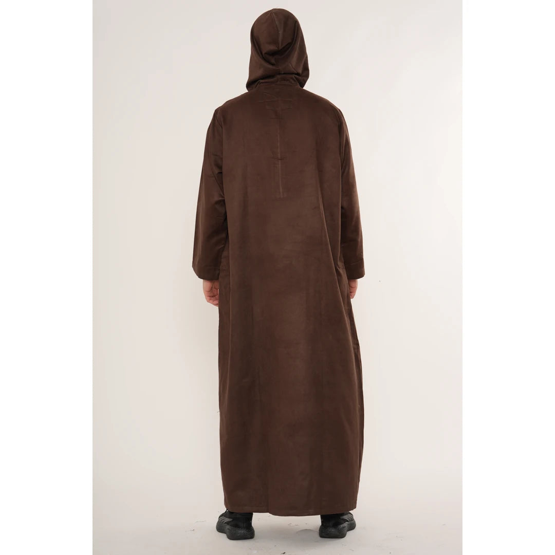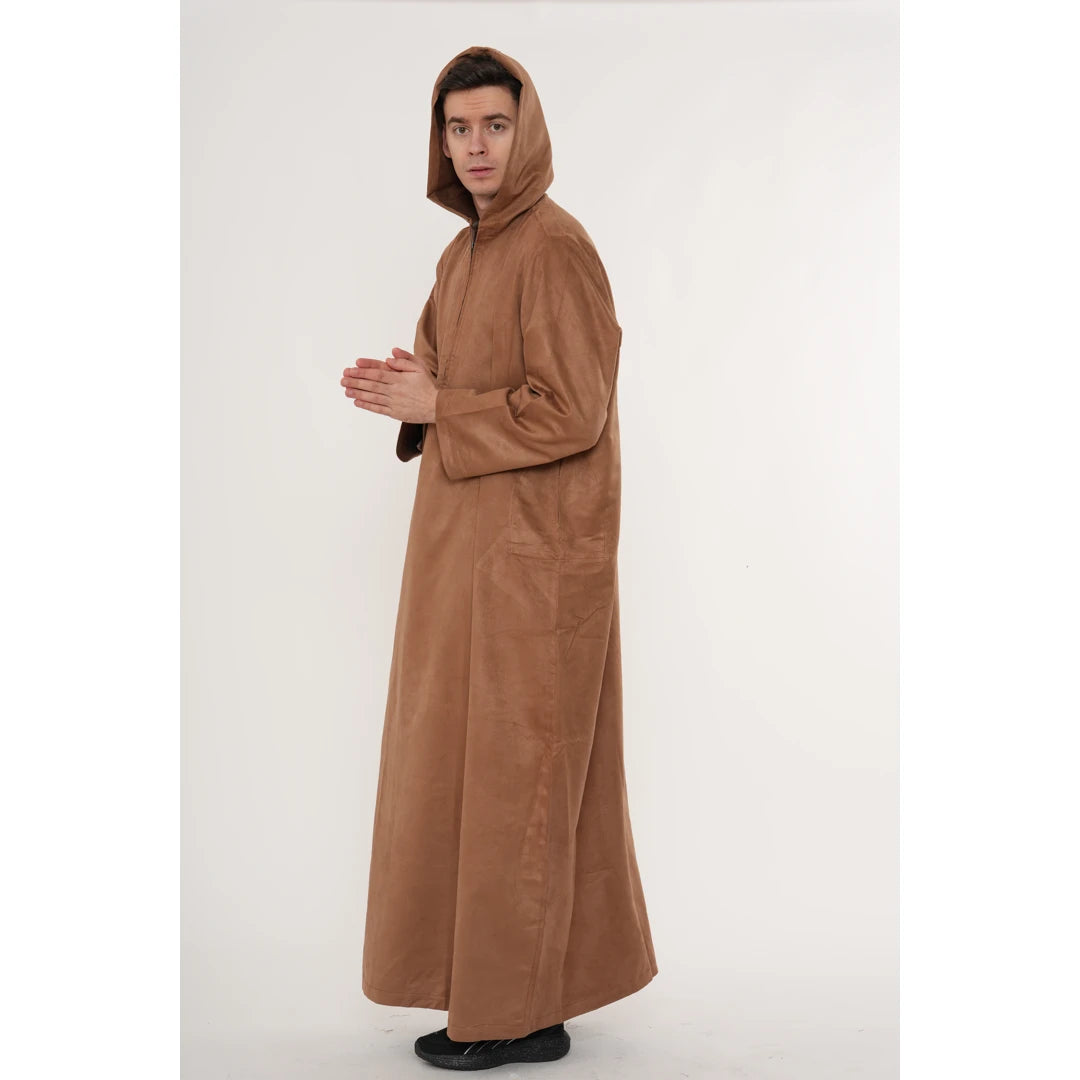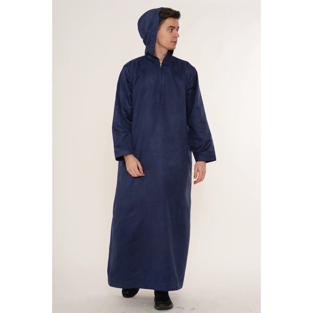 HM12 - Men's Hooded Suede Emirati Omani Zipped Thobe