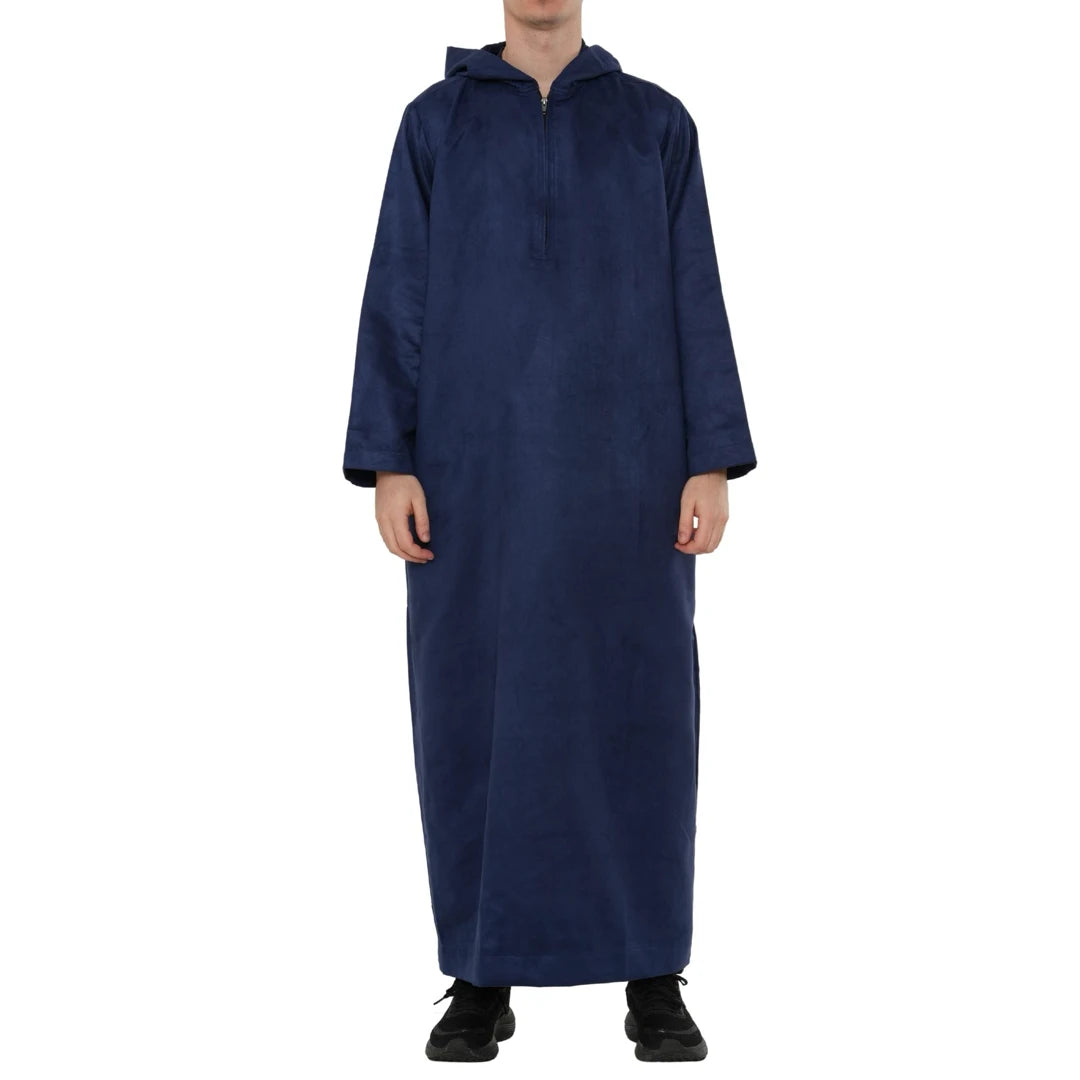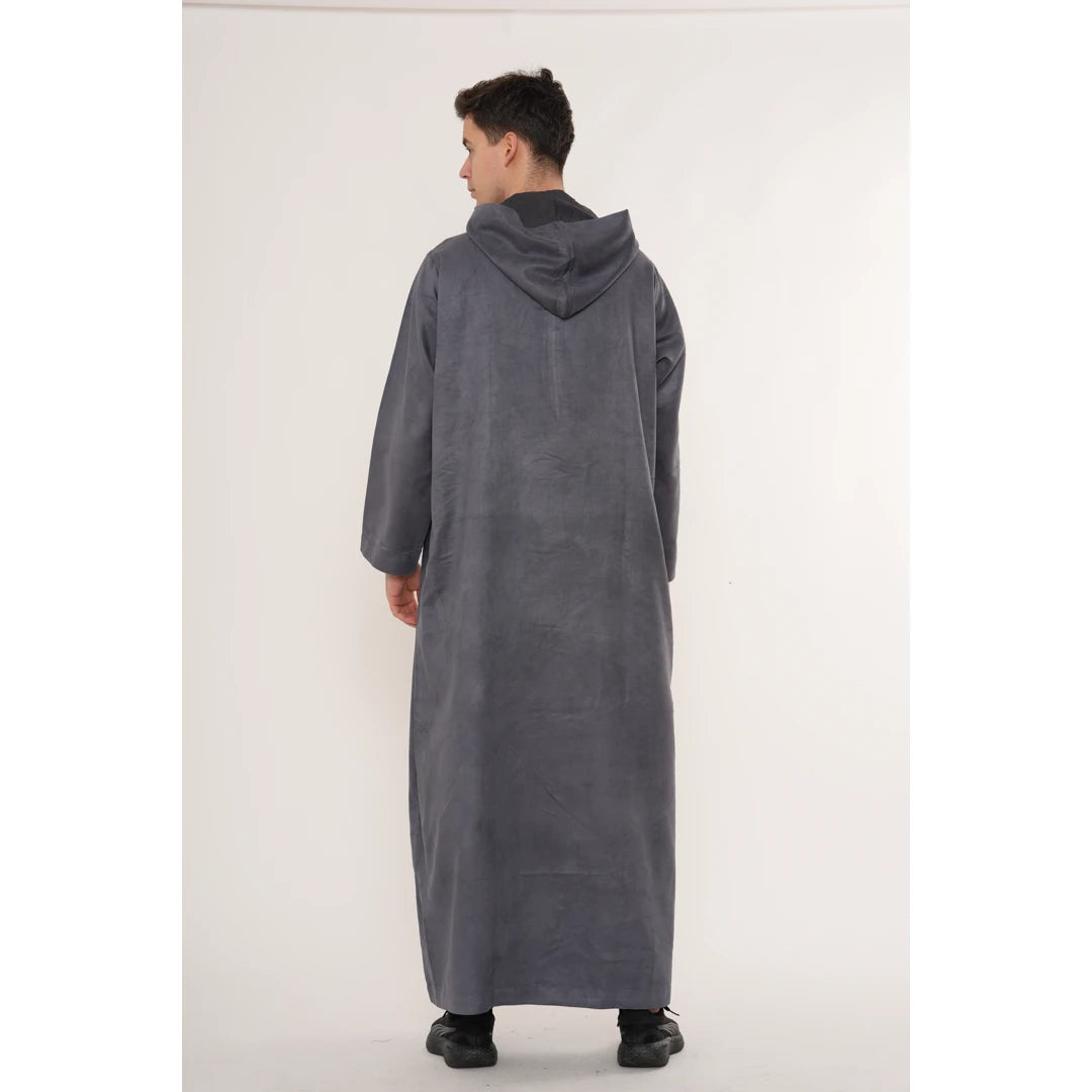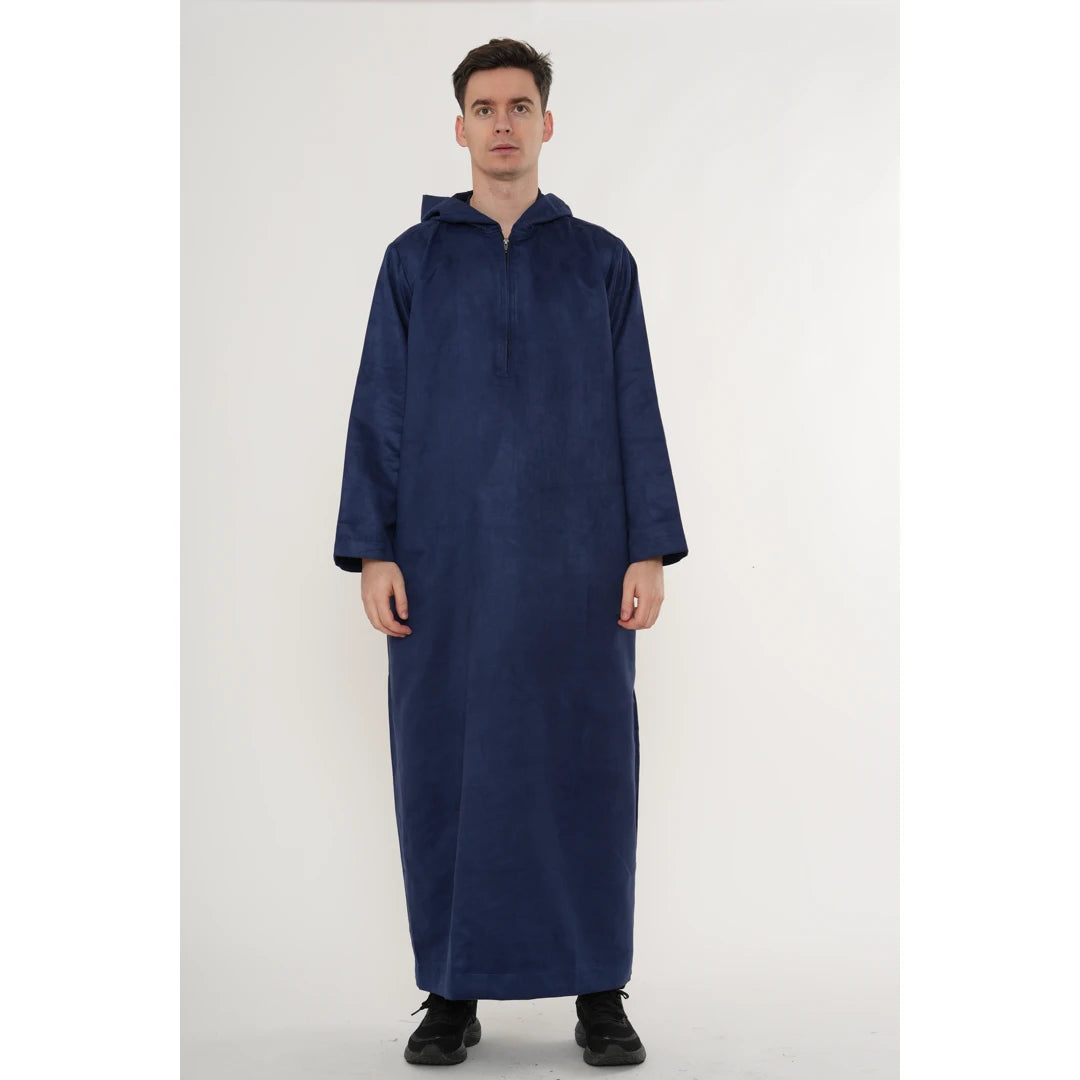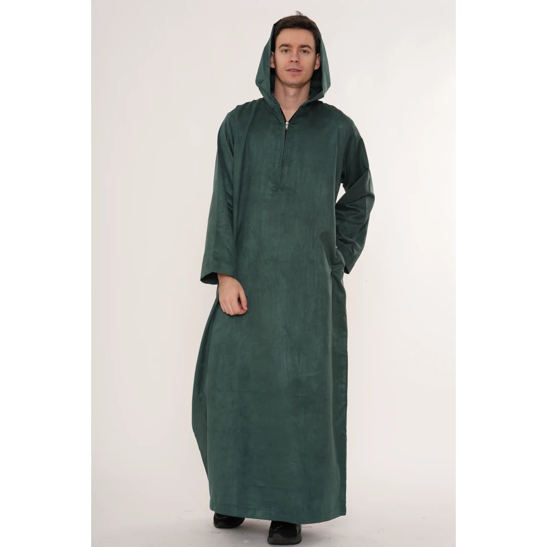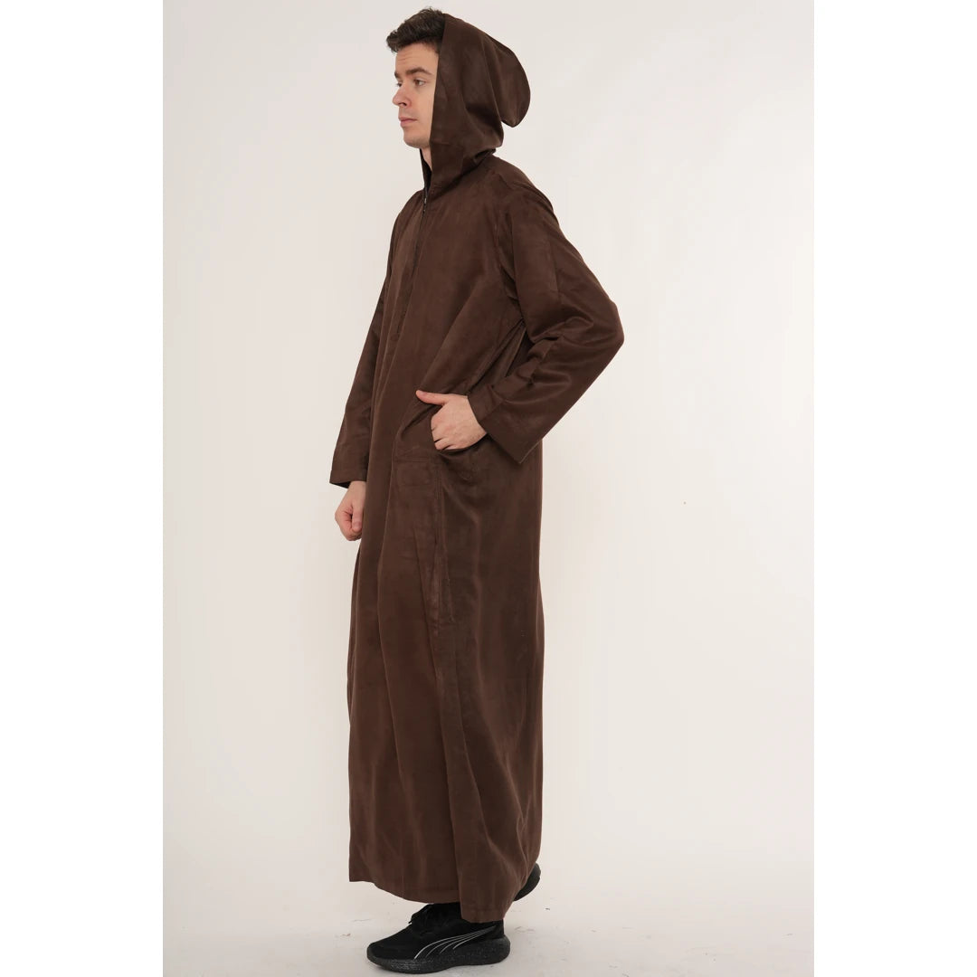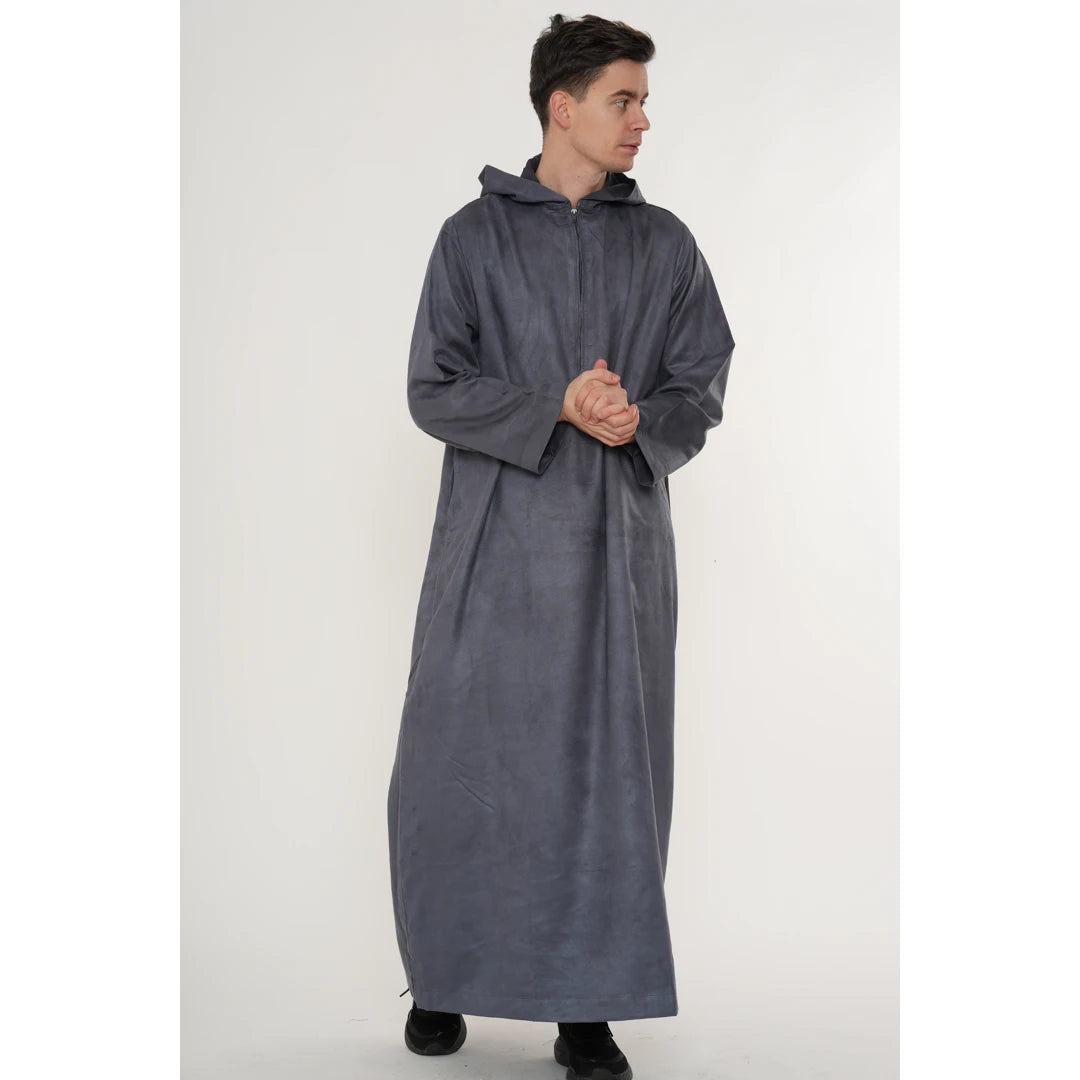 HM12 - Men's Hooded Suede Emirati Omani Zipped Thobe