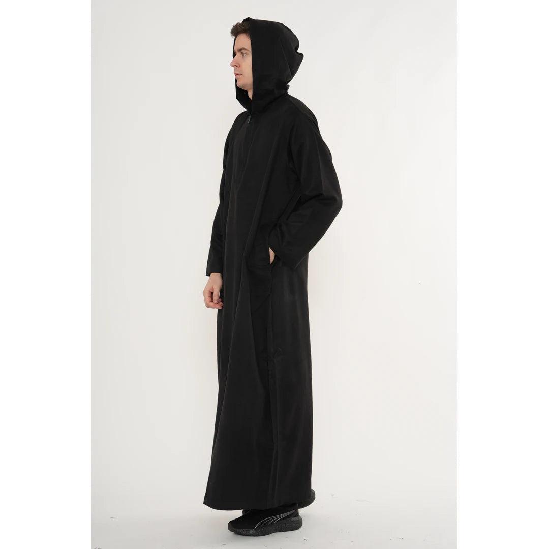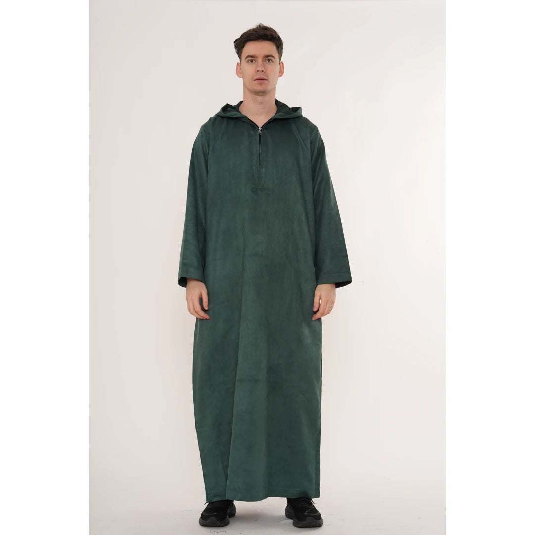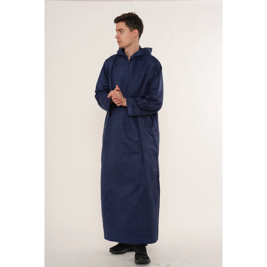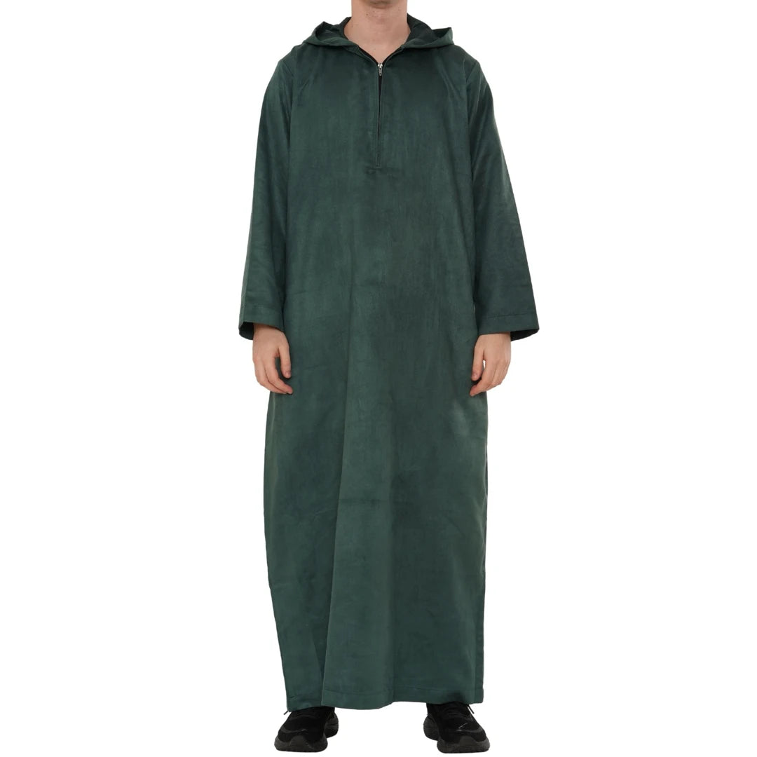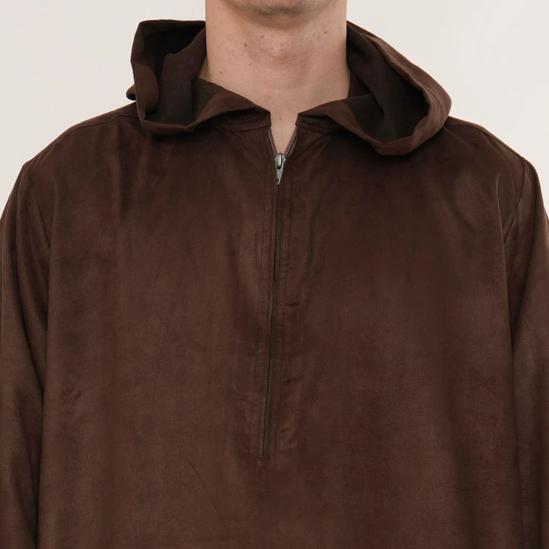 HM12 - Men's Hooded Suede Emirati Omani Zipped Thobe