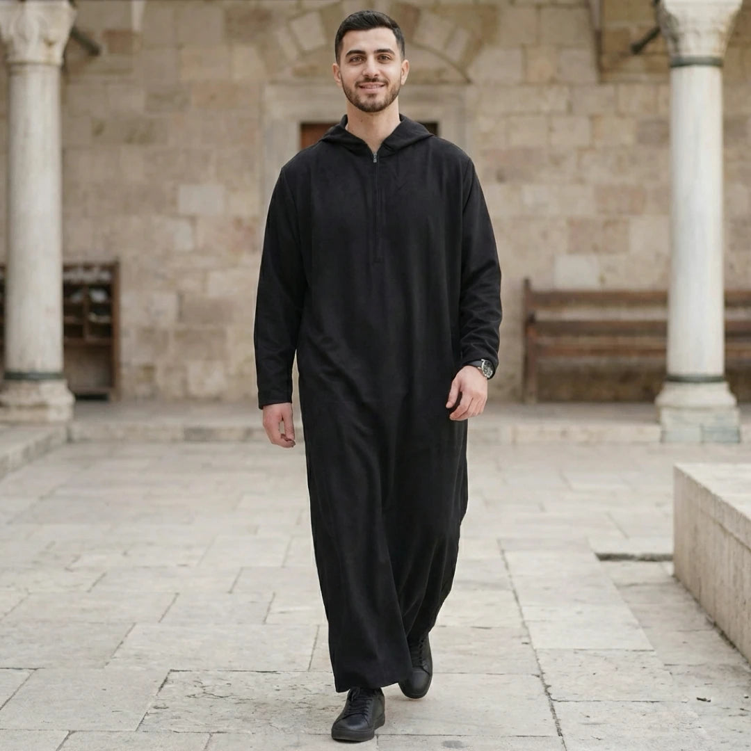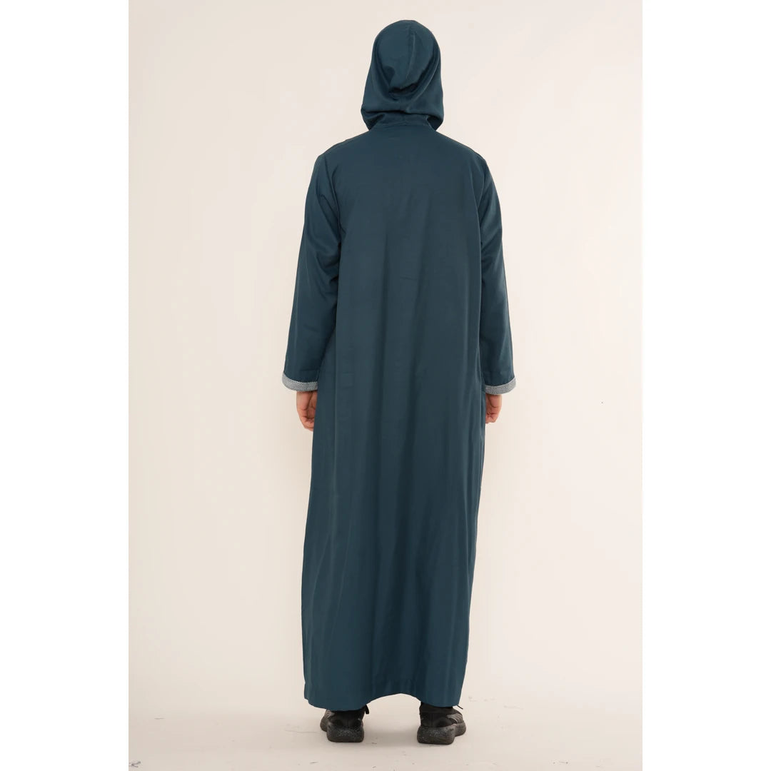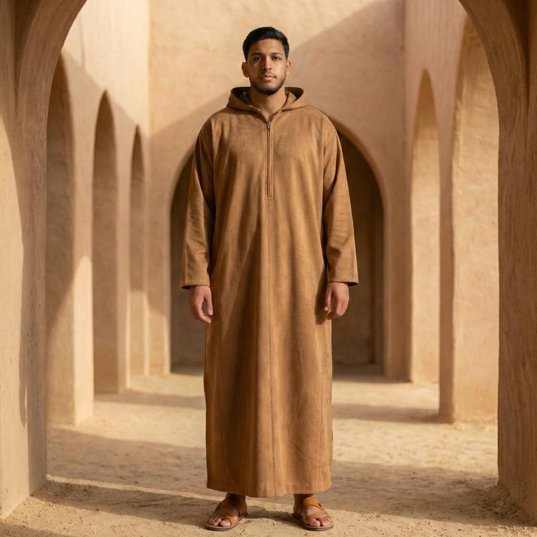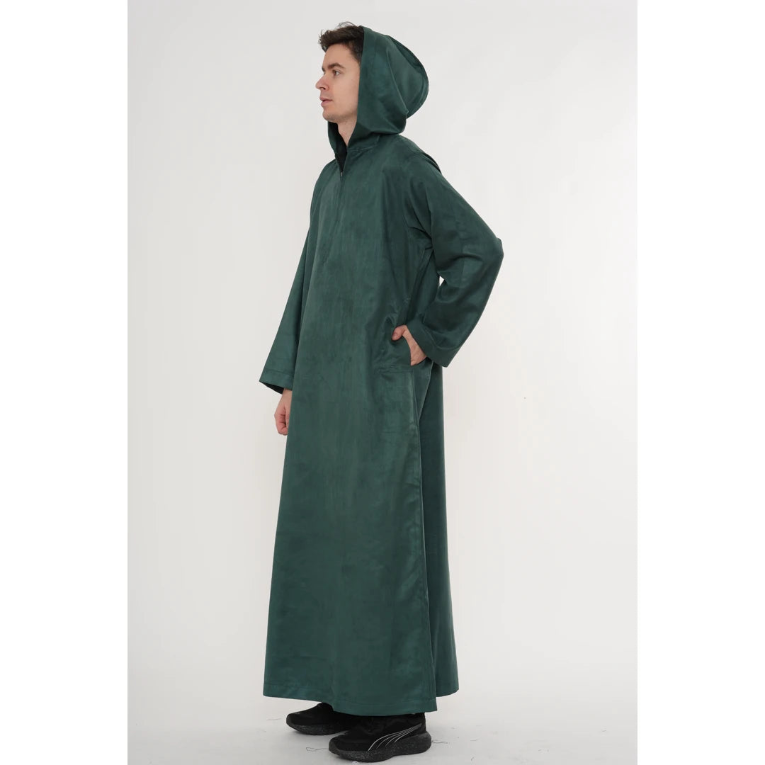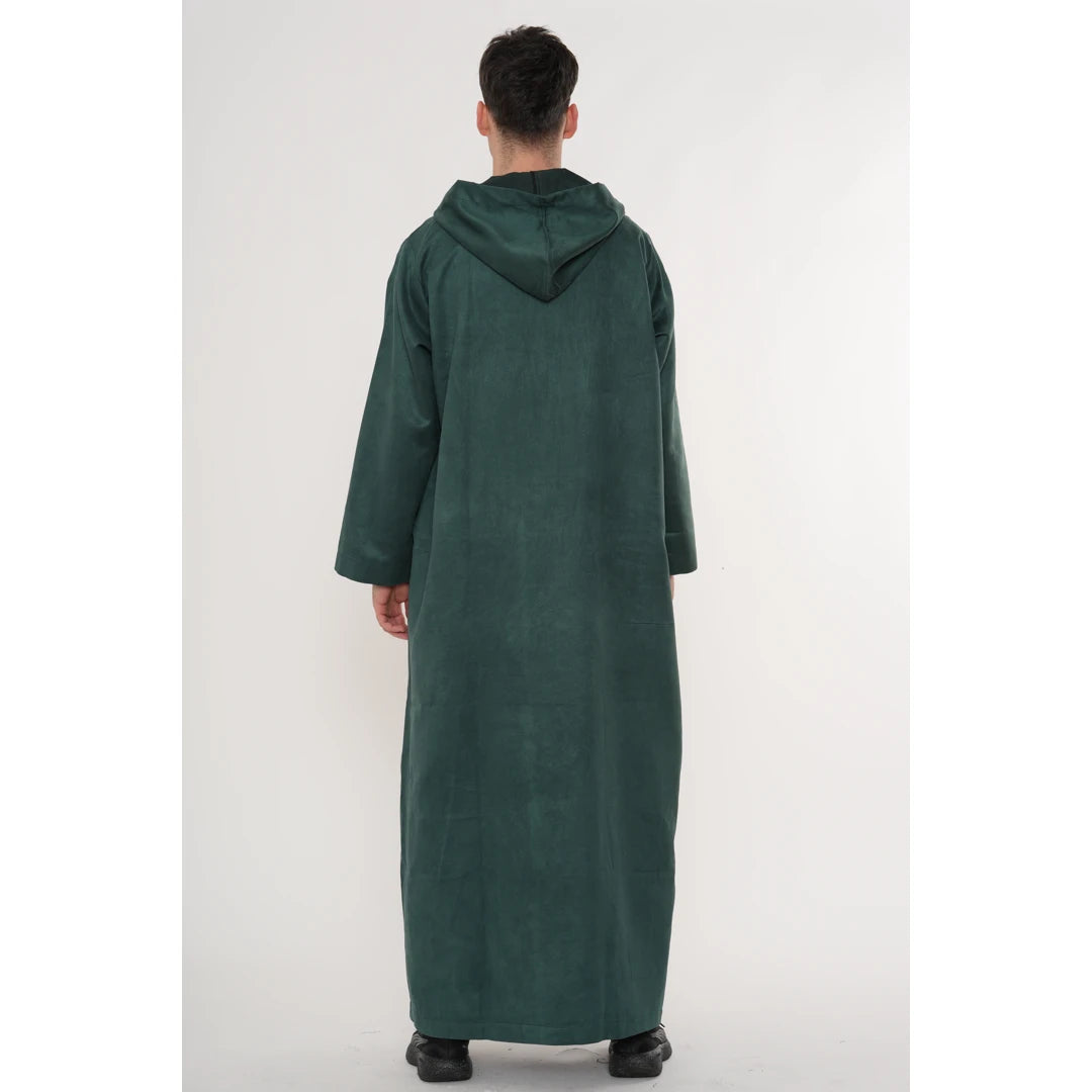 HM12 - Men's Hooded Suede Emirati Omani Zipped Thobe