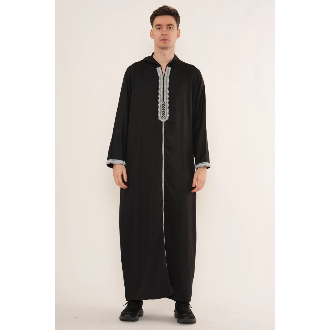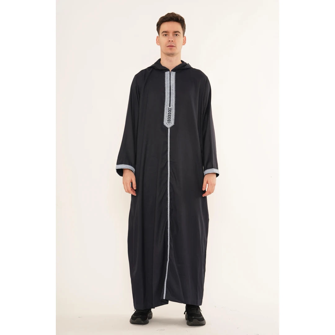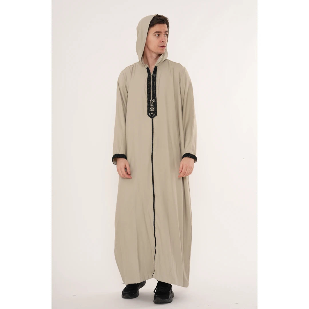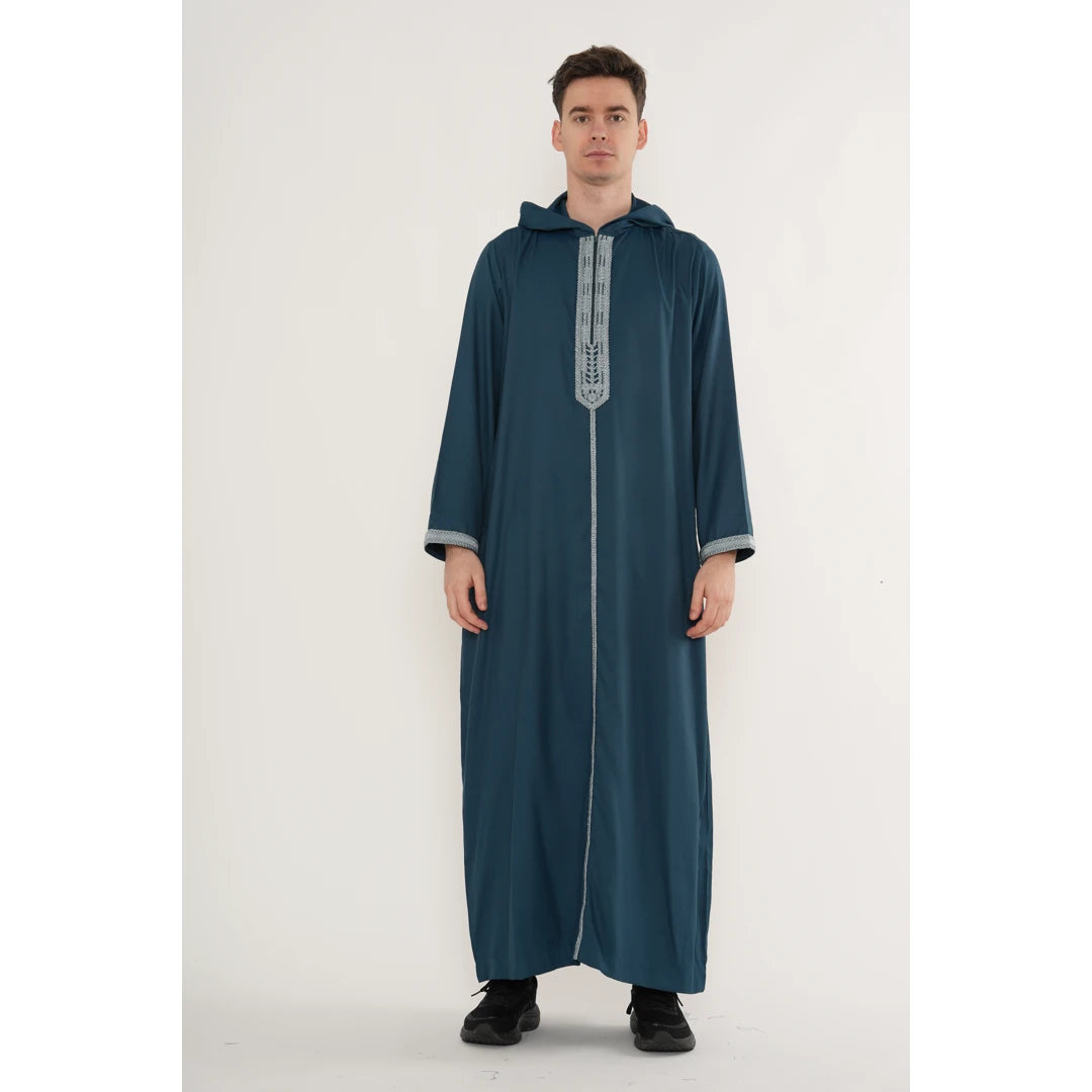 Men's Hooded Gandoura Embroidery Moroccan Thobe