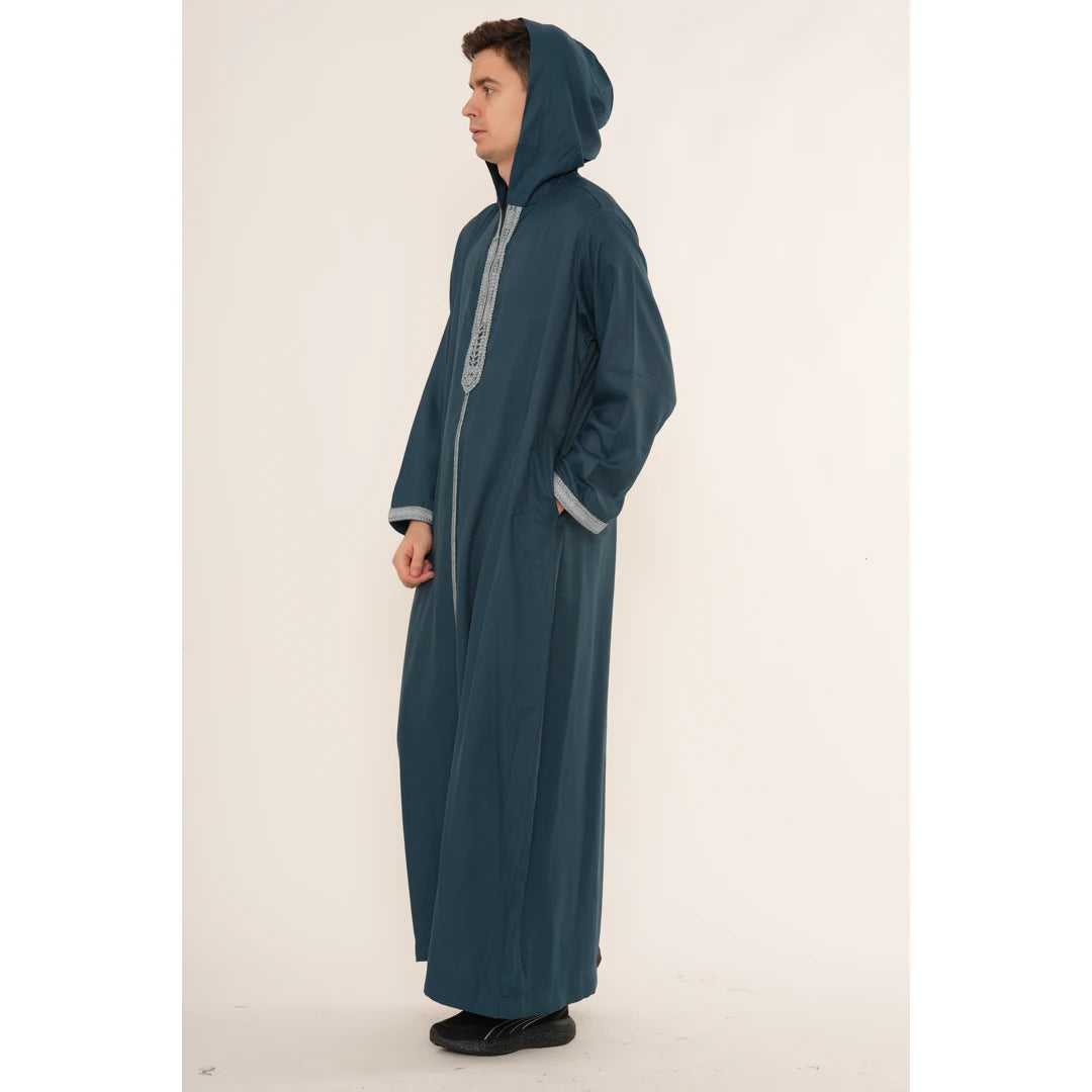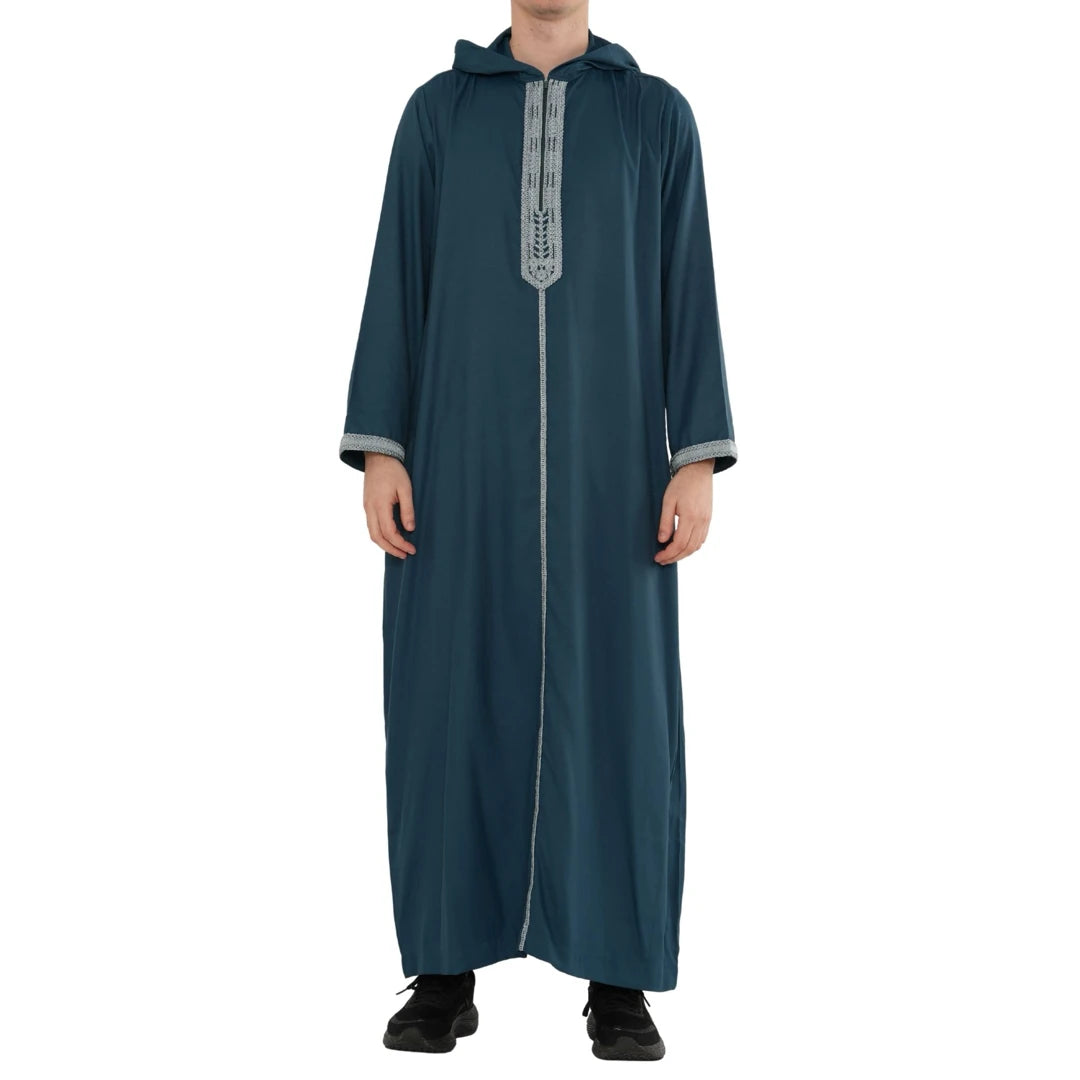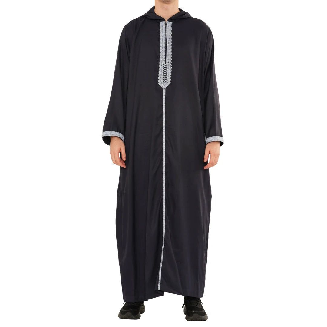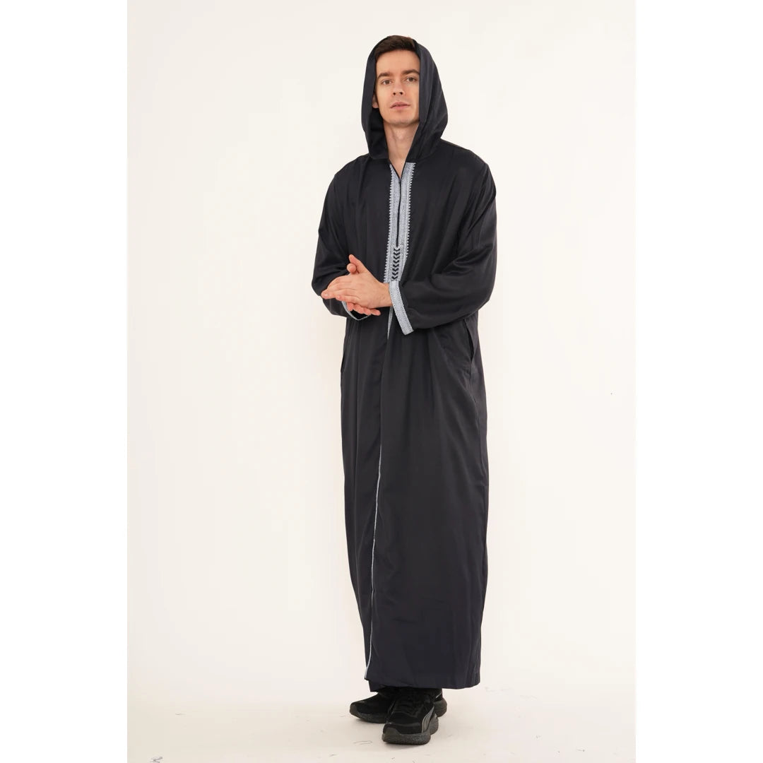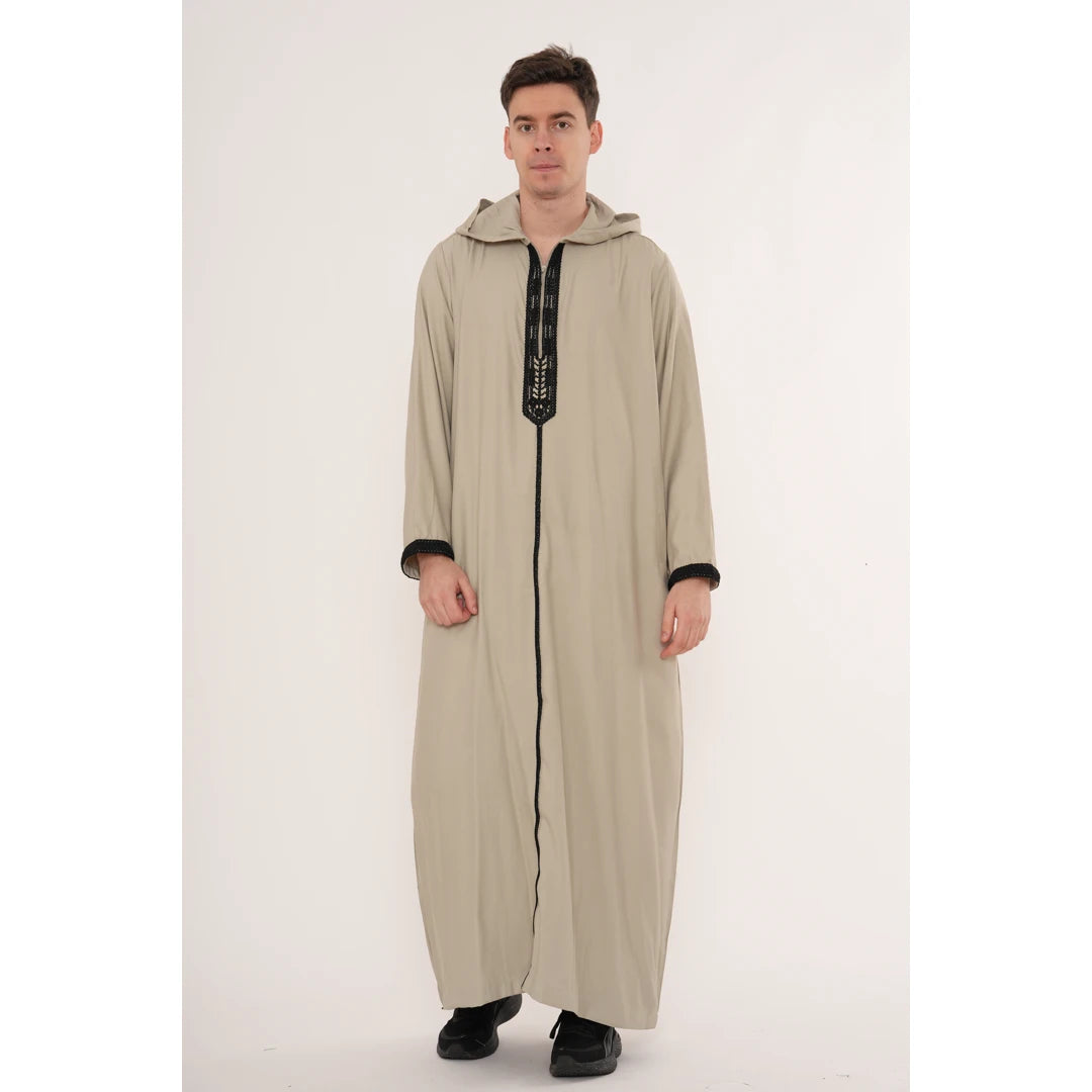 Men's Hooded Gandoura Embroidery Moroccan Thobe