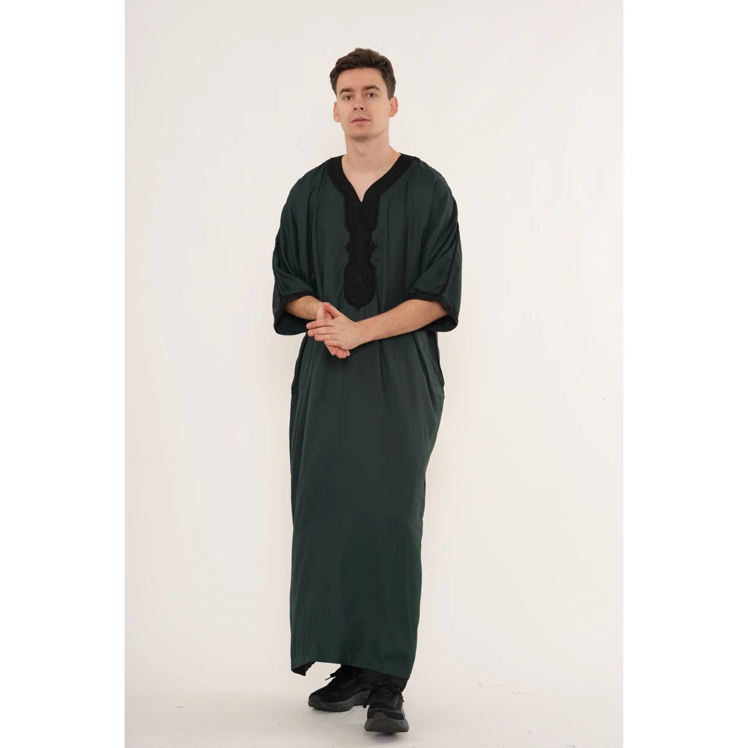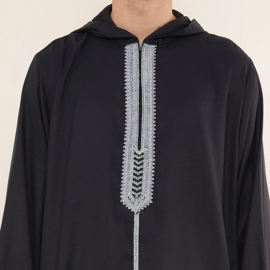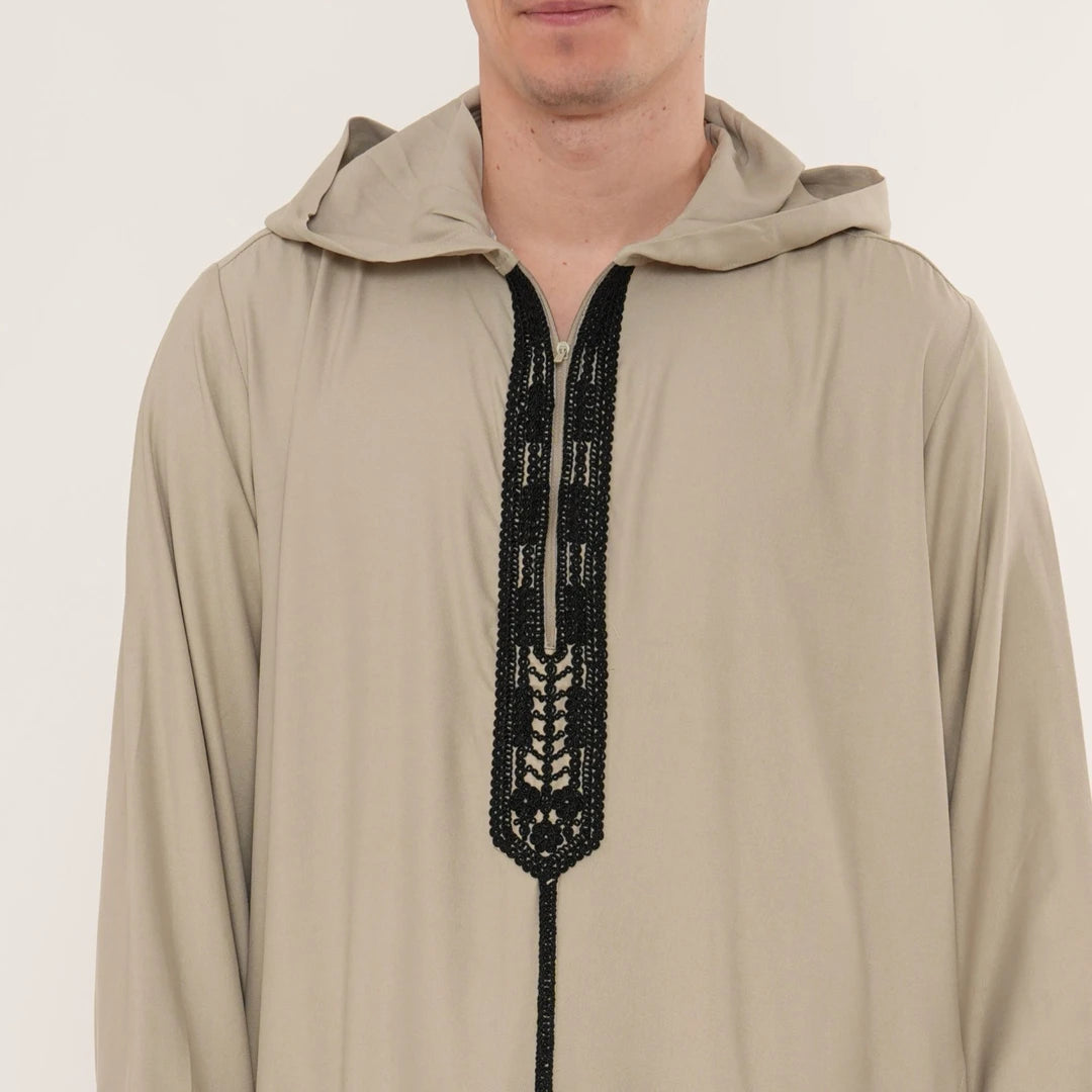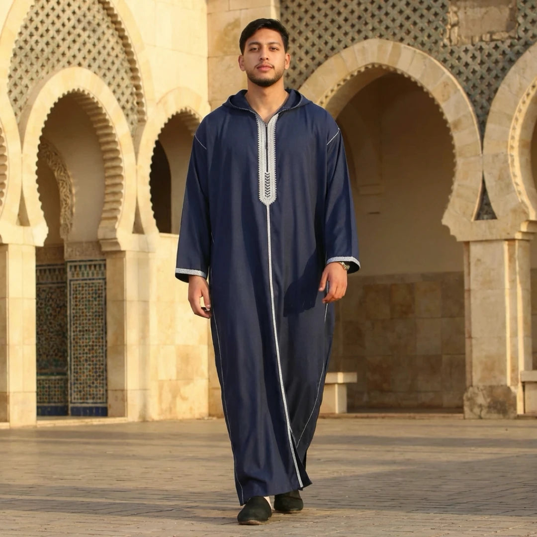 Men's Hooded Gandoura Embroidery Moroccan Thobe