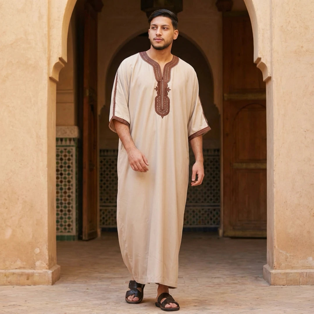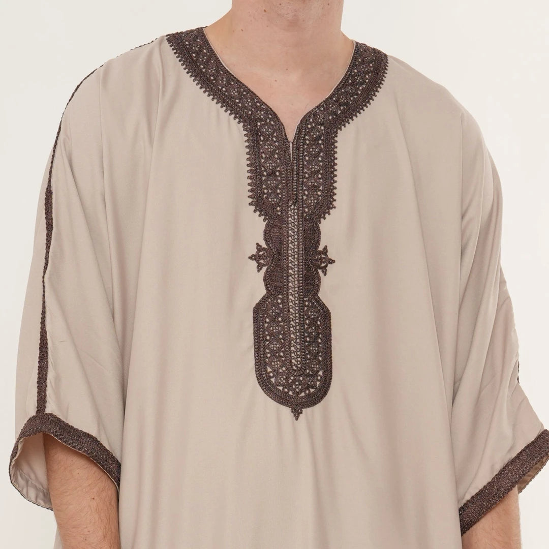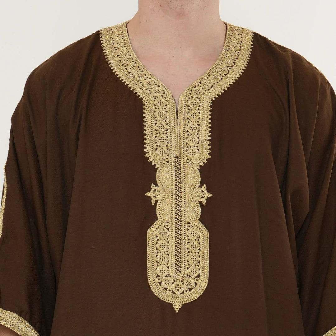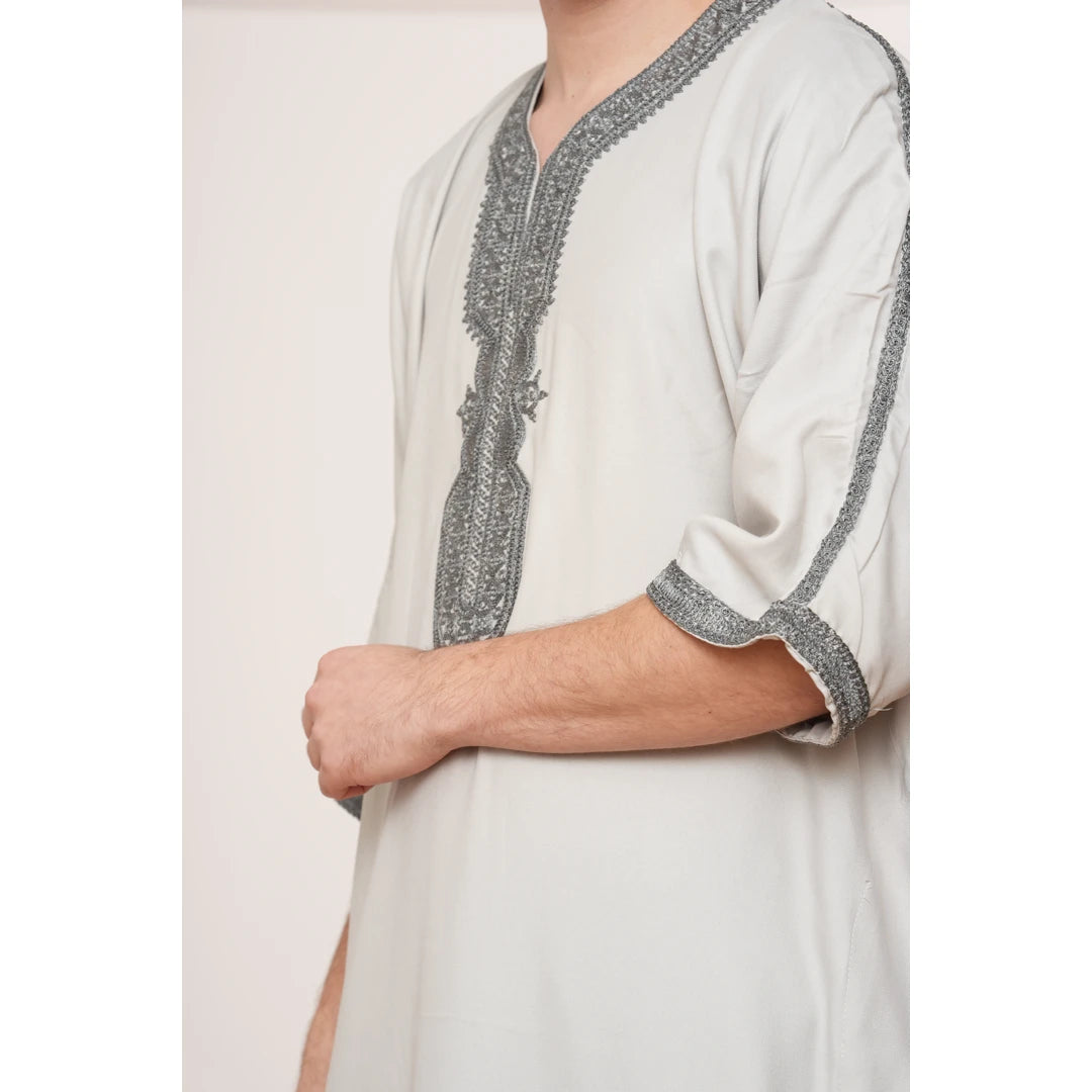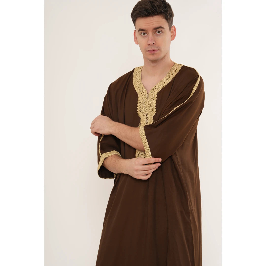 Men's Hooded Gandoura Embroidery Moroccan Thobe