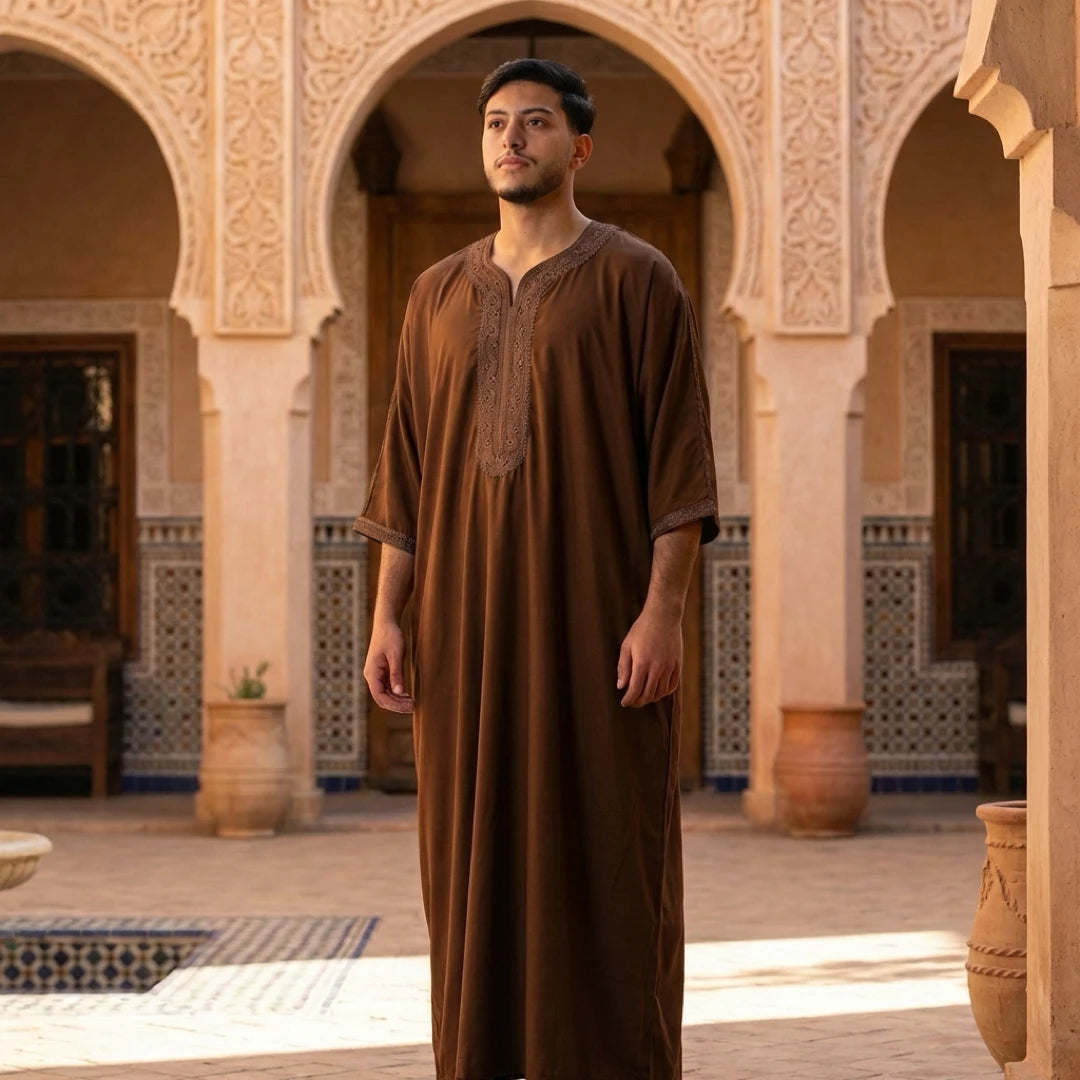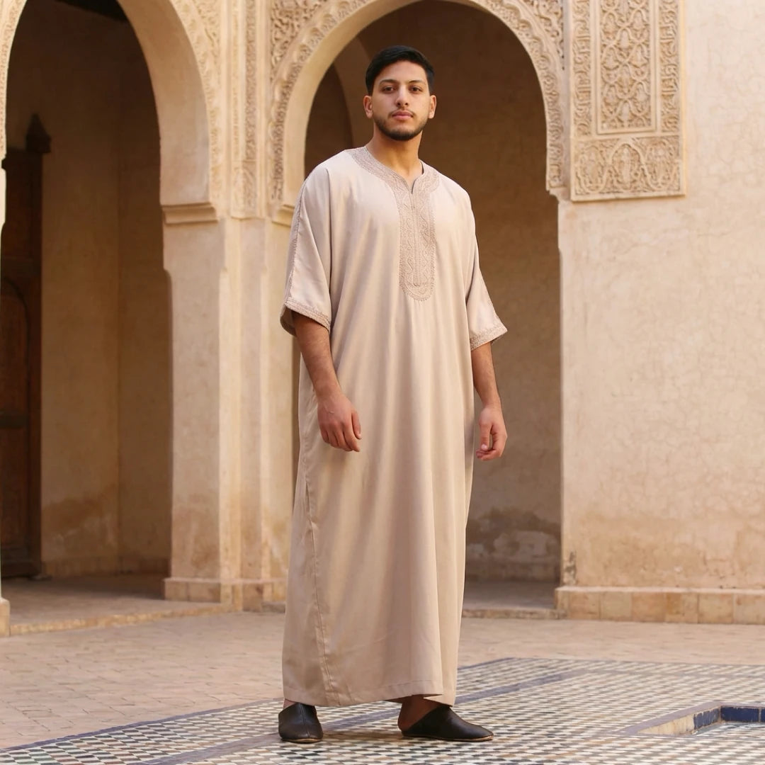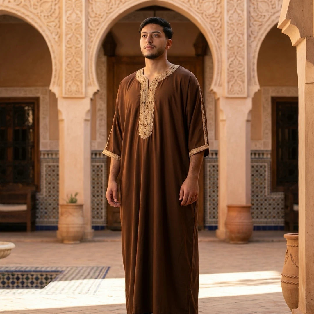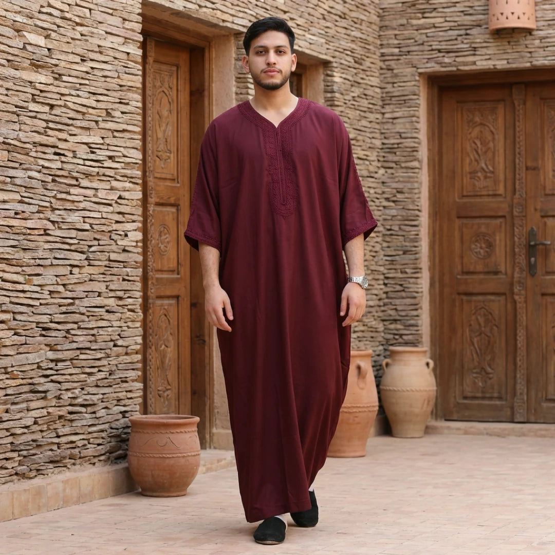 Men's Hooded Gandoura Embroidery Moroccan Thobe