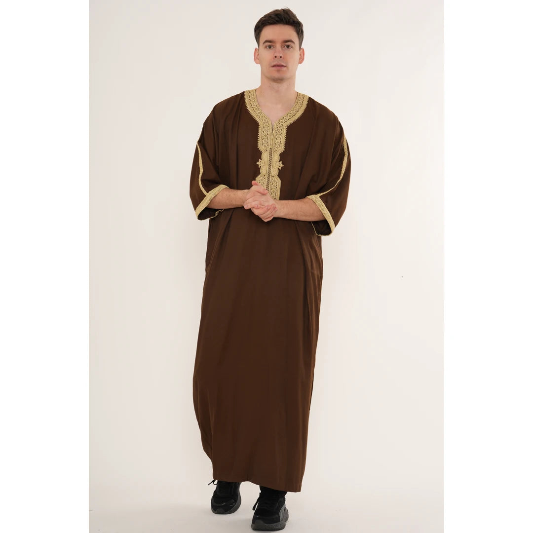 HM10 - Men's Emirati Omani Zipped Embroidery Thobe