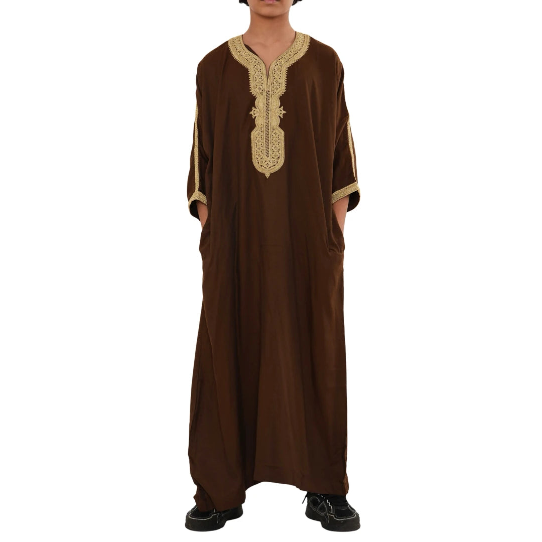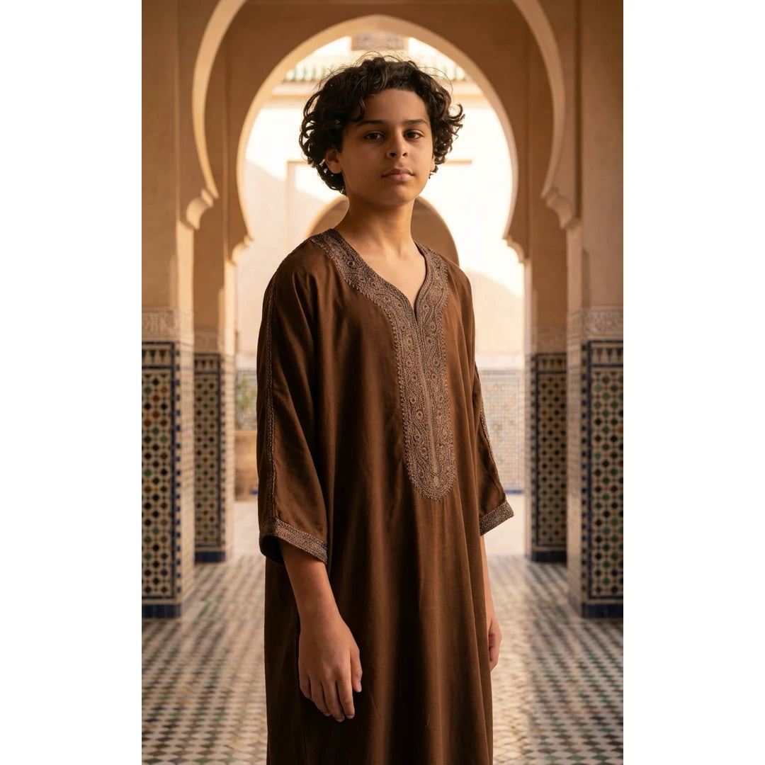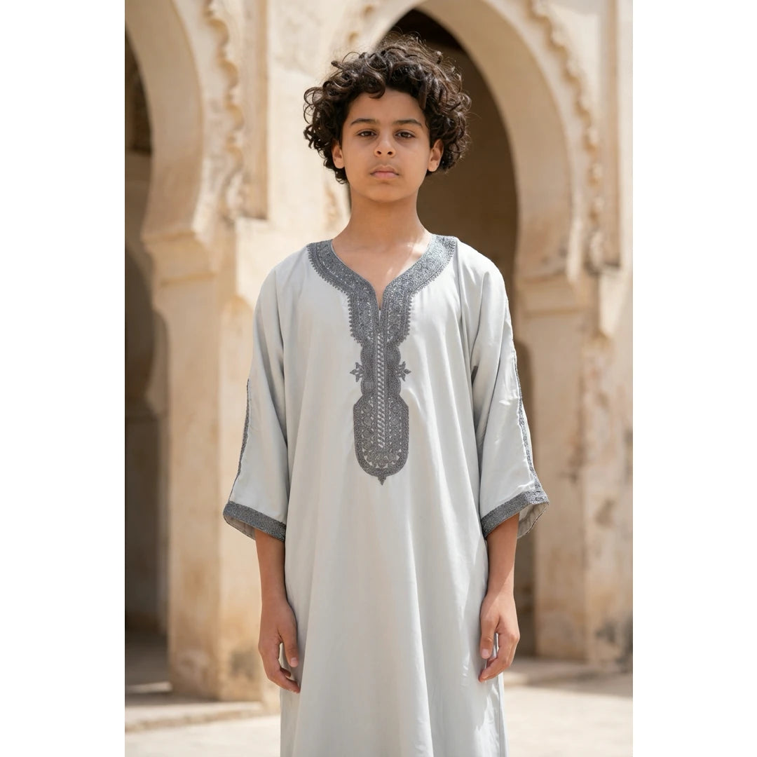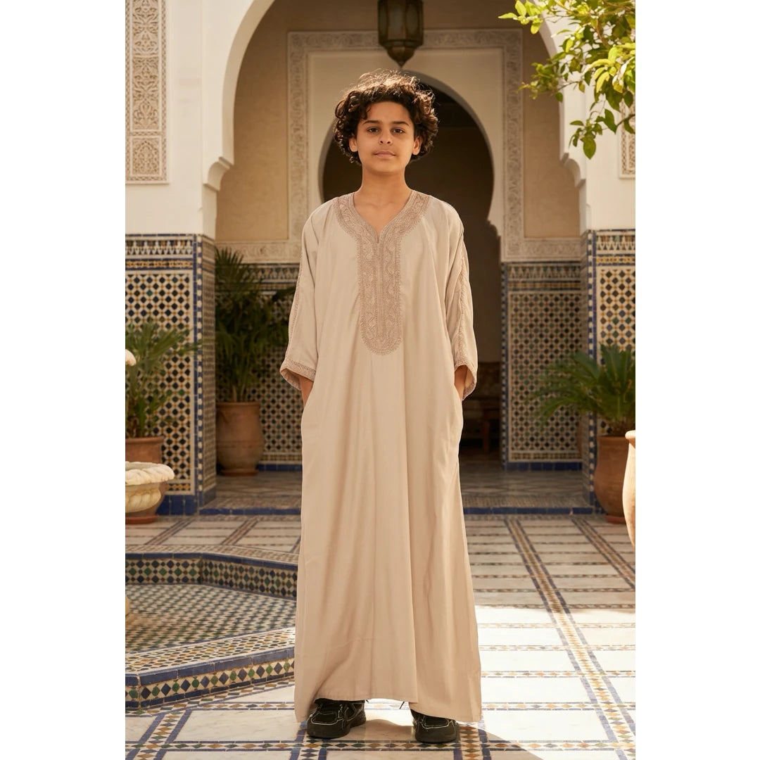* Authentic Moroccan style: Traditional Gandoura kaftan design inspired by classic Moroccan wear, offering a respectful and culturally rooted look for young boys