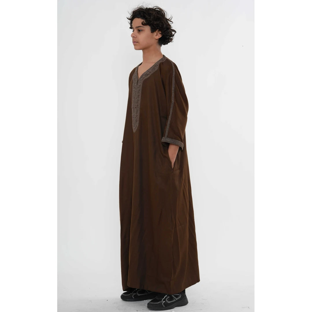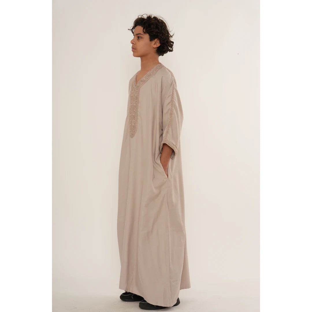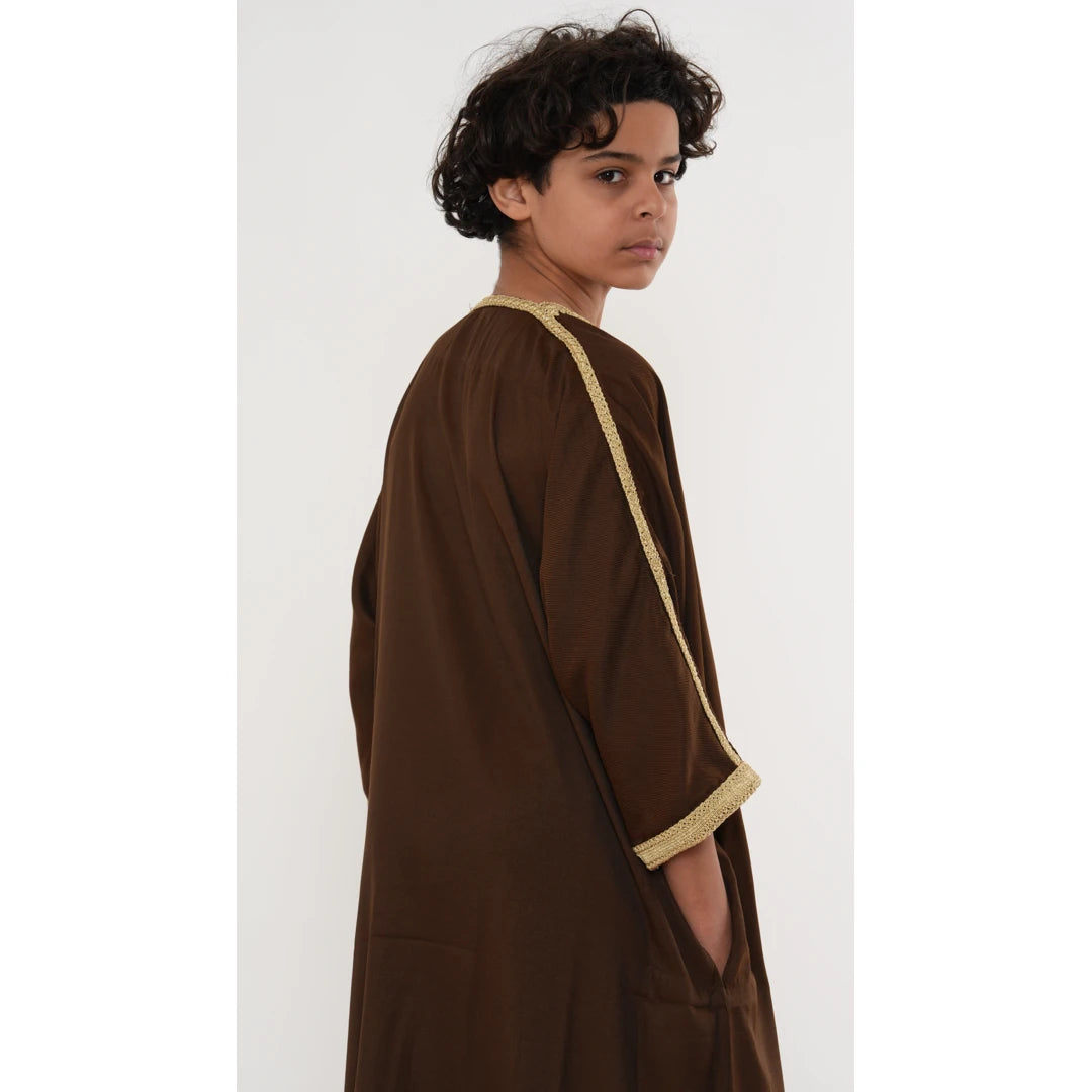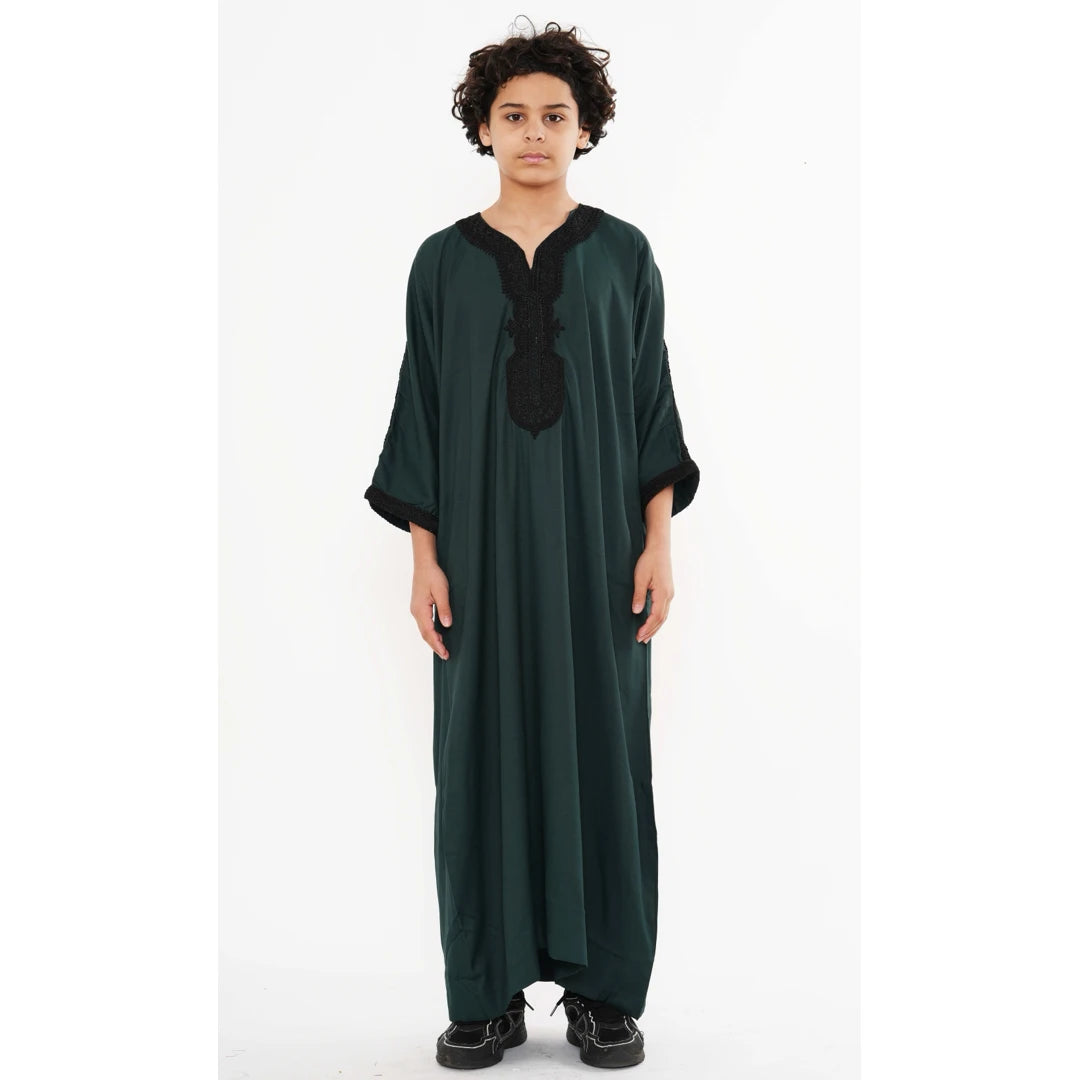 * Authentic Moroccan style: Traditional Gandoura kaftan design inspired by classic Moroccan wear, offering a respectful and culturally rooted look for young boys