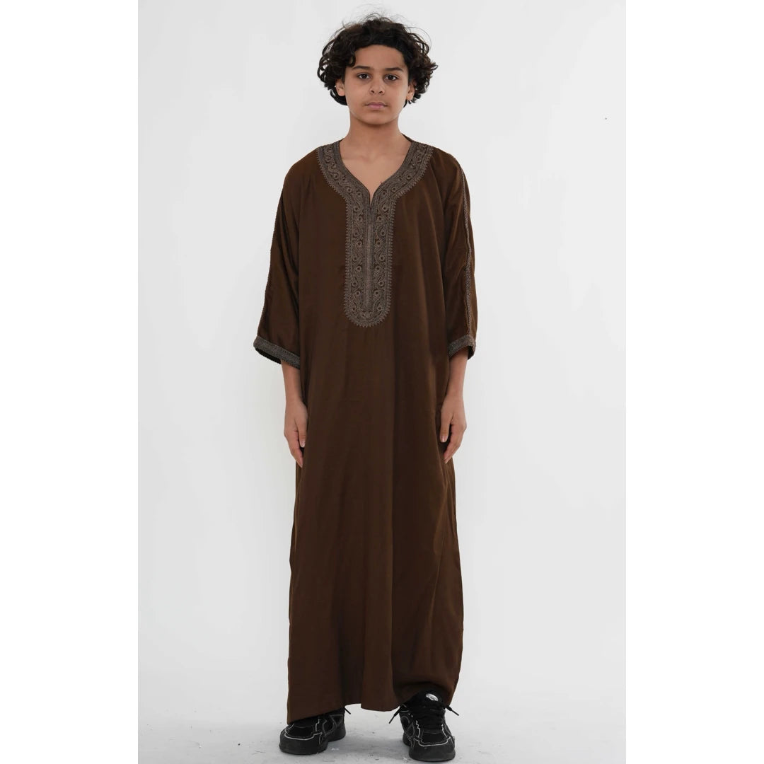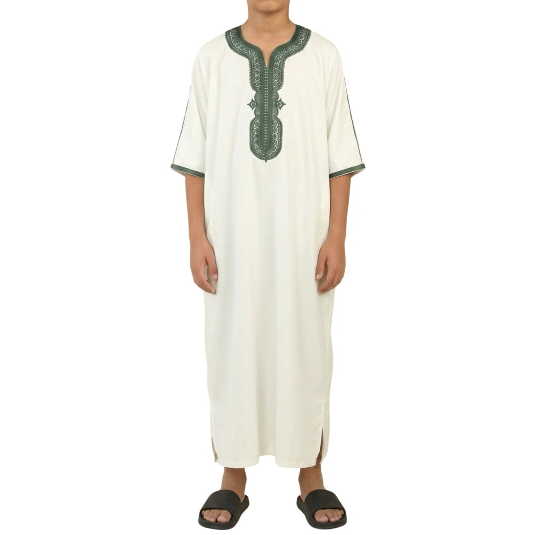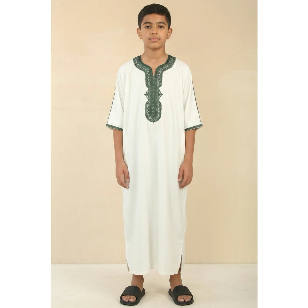 Boy's Moroccan Thobe Half Sleeve Gandoura Embroidery Kaftan