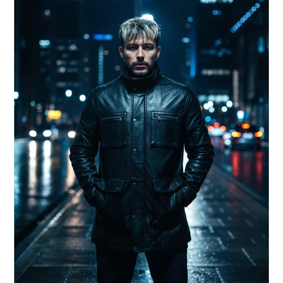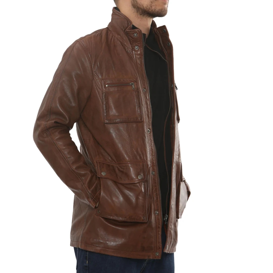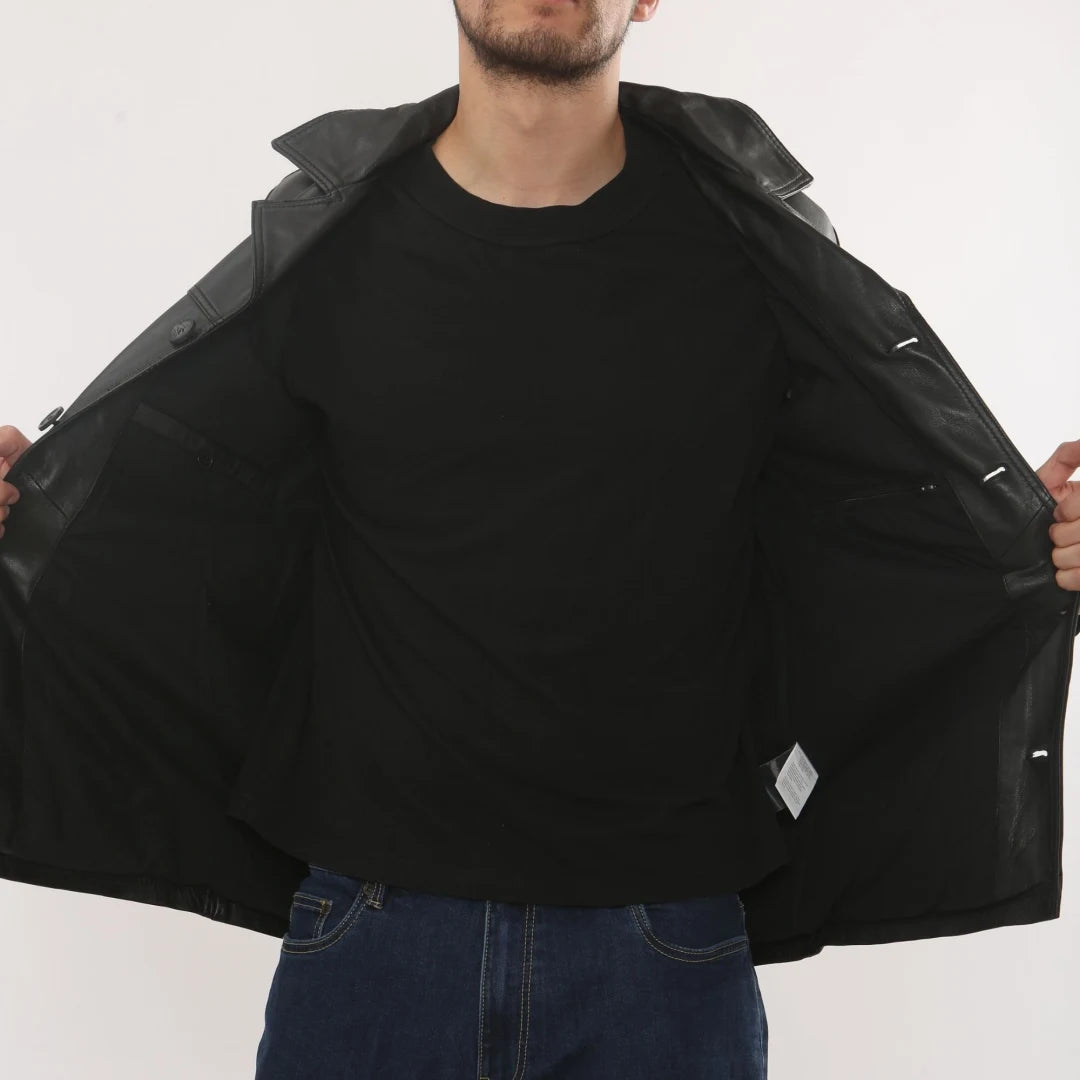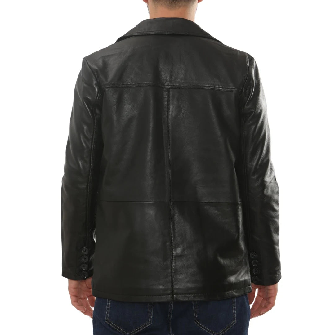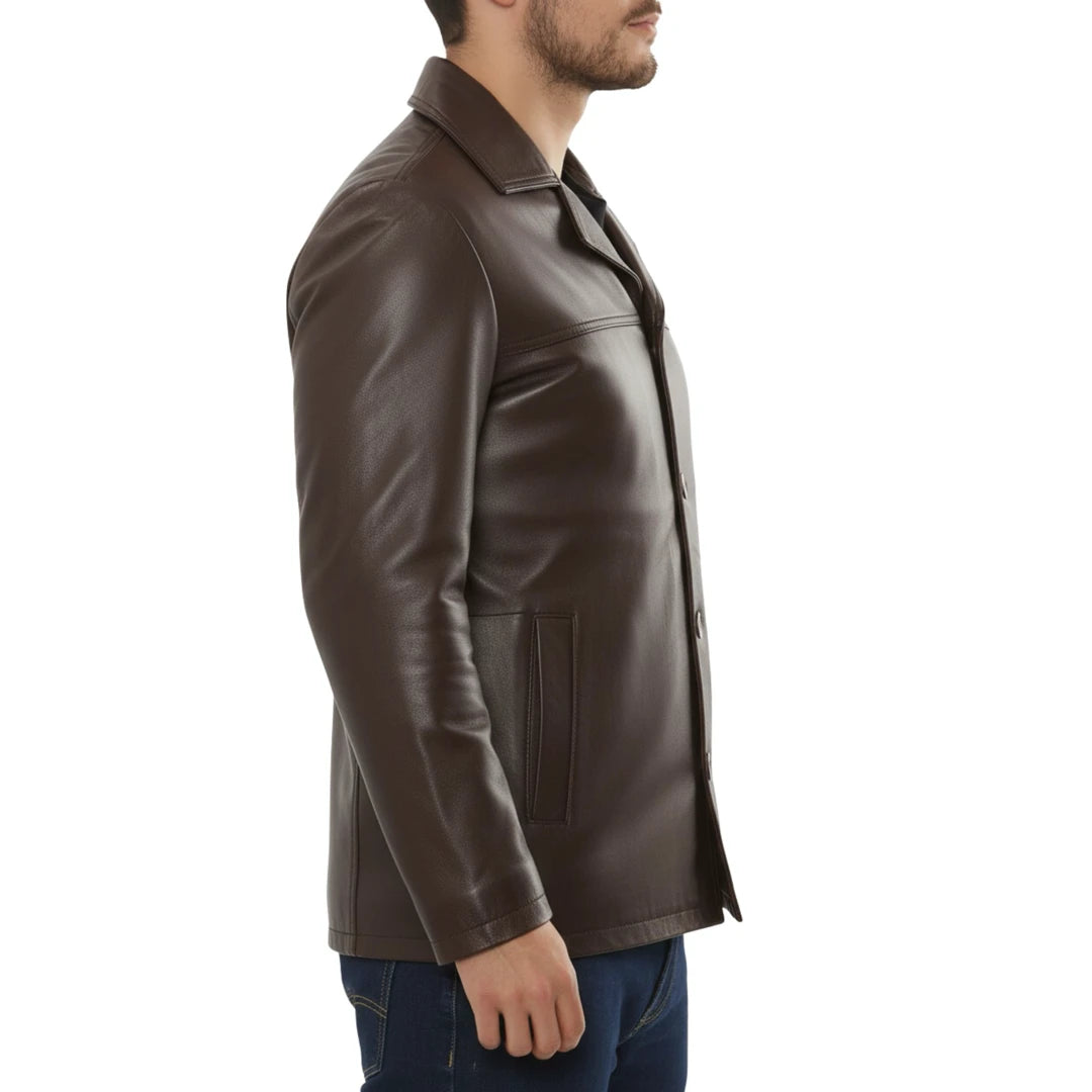 Men's Leather Car Coat Collared Blazer Style Jacket