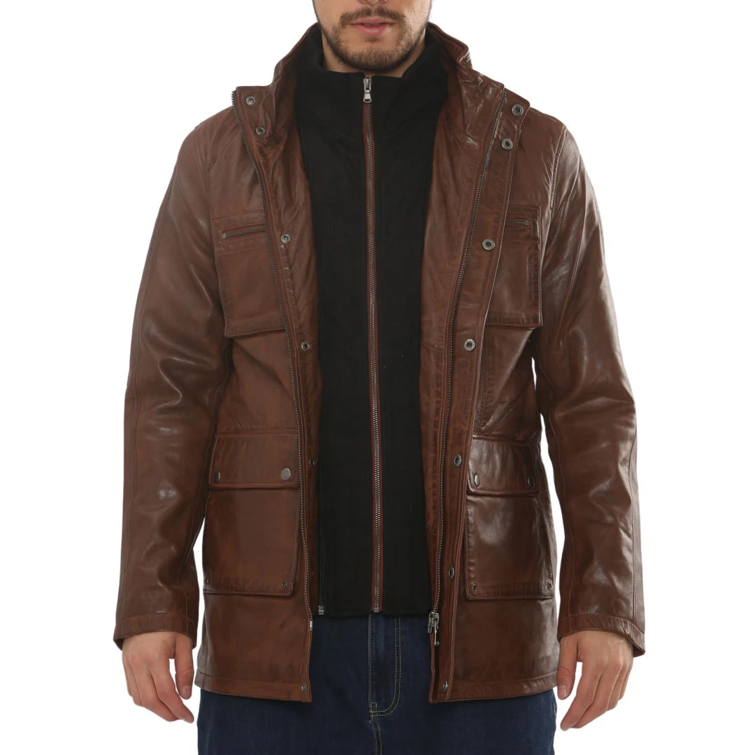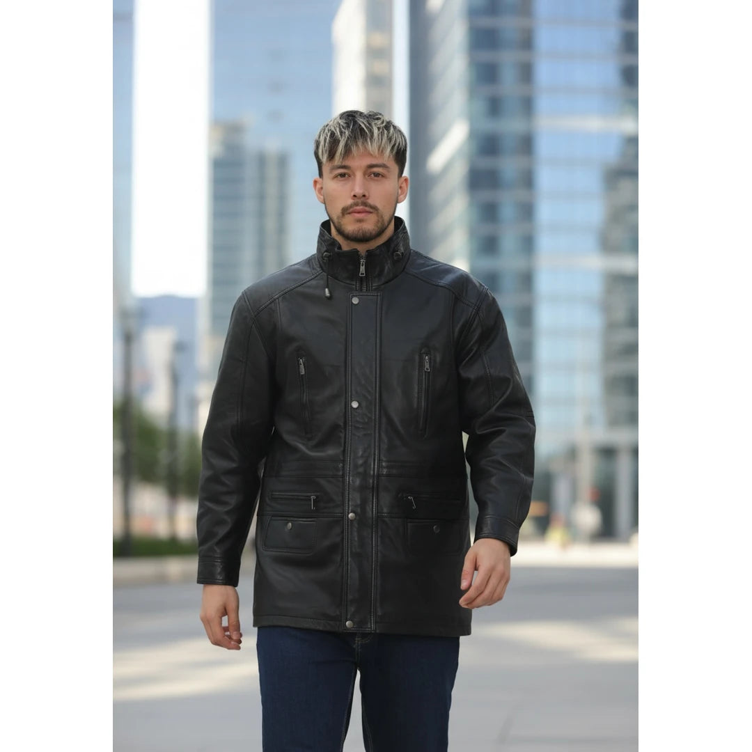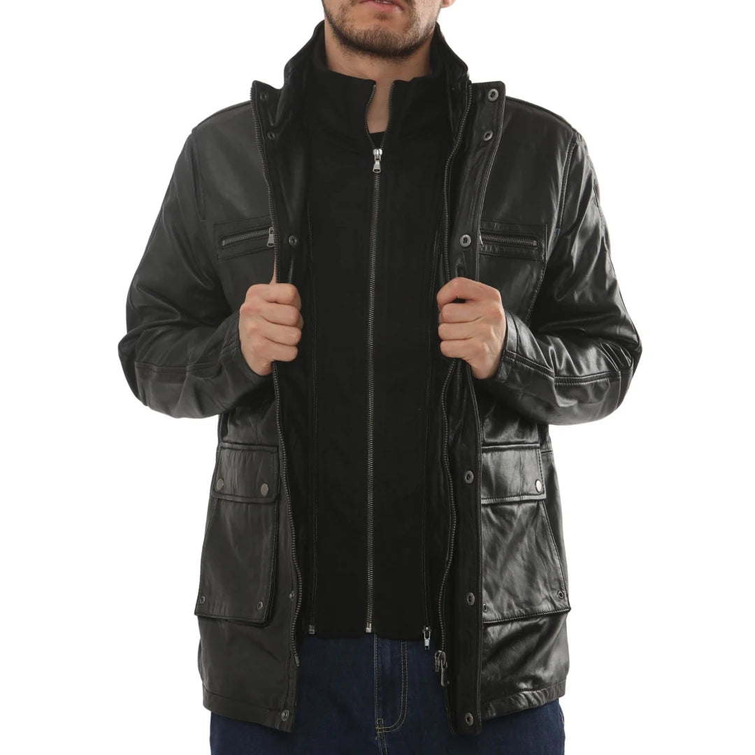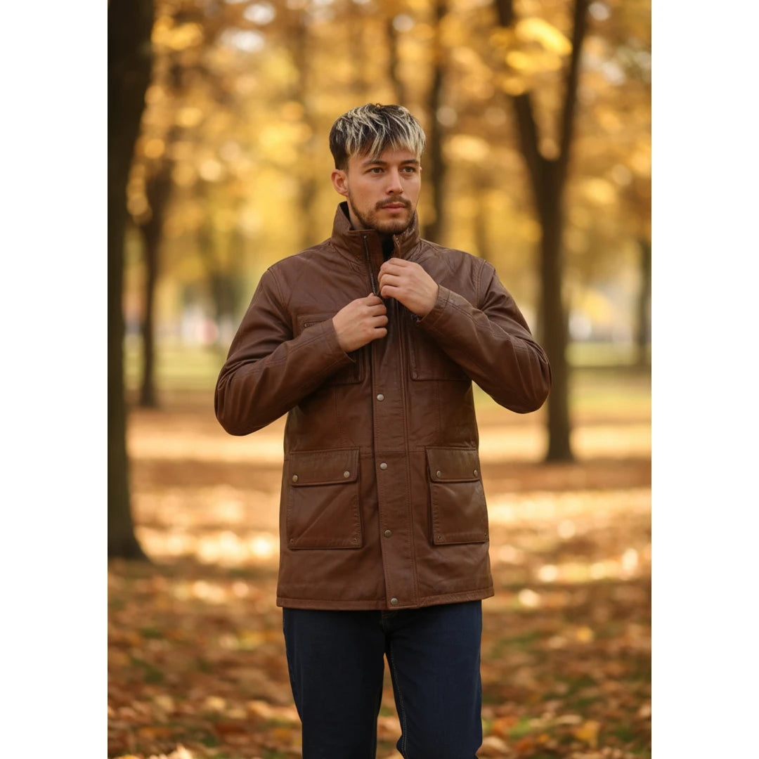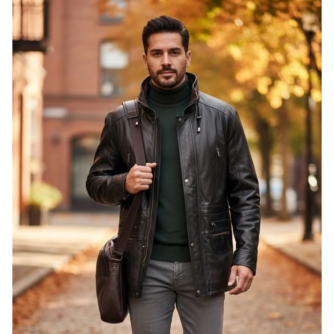 Men's Leather Car Coat Collared Blazer Style Jacket