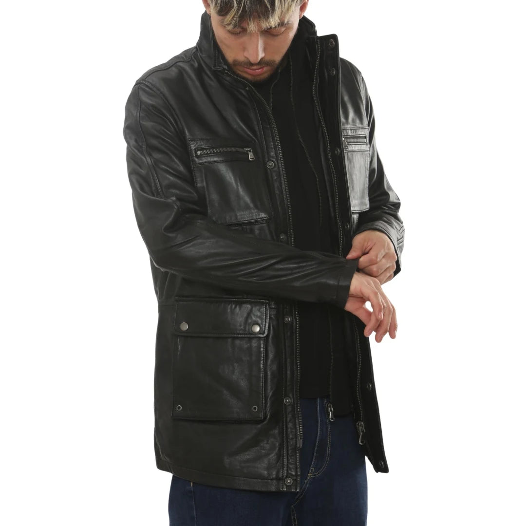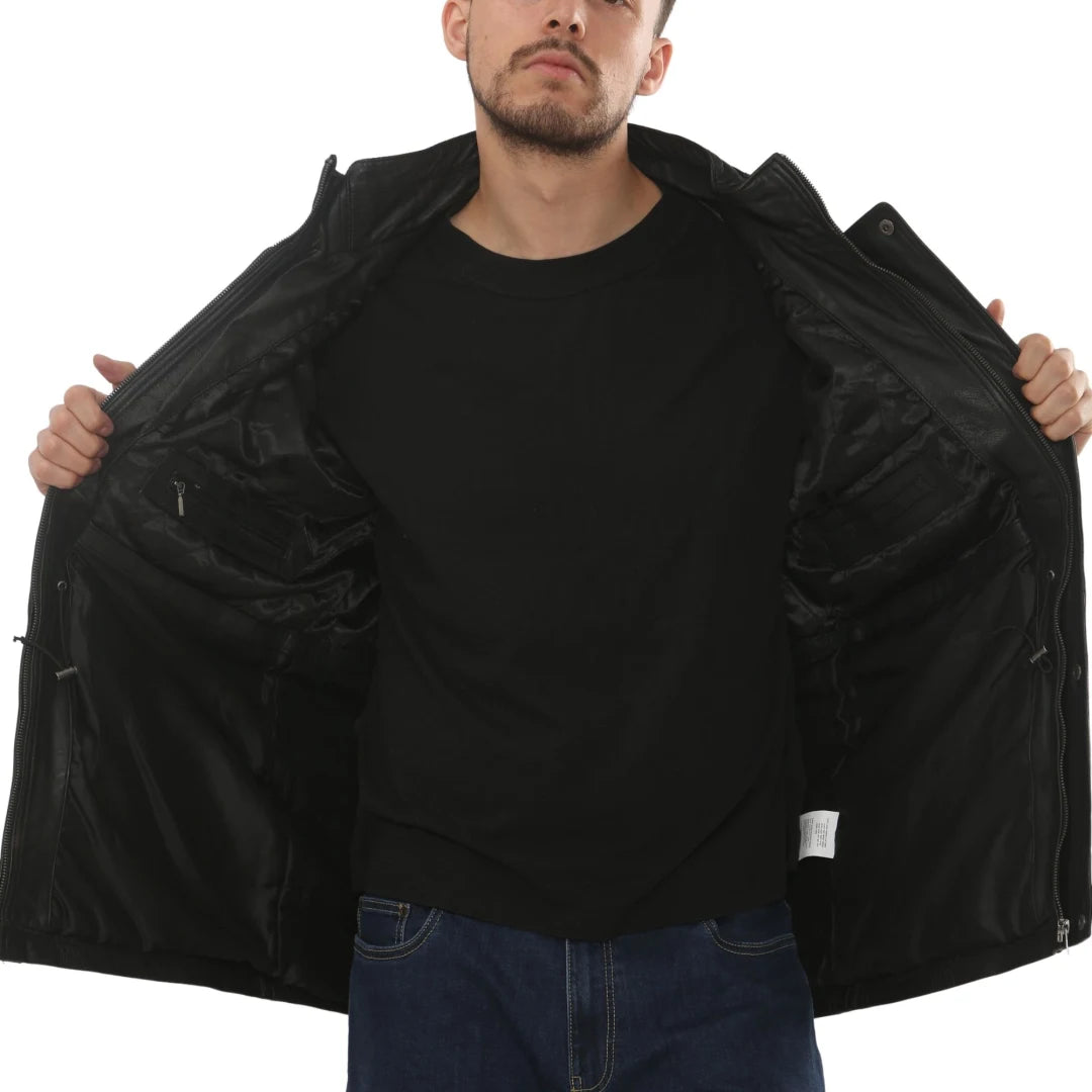 Men's Leather Motorcycle Jacket Distressed Black Biker Coat