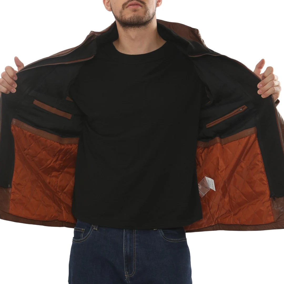 Men's Leather Motorcycle Jacket Classic Biker Coat
