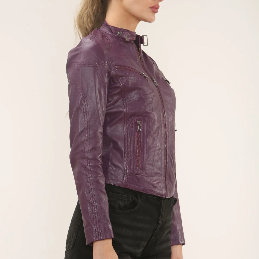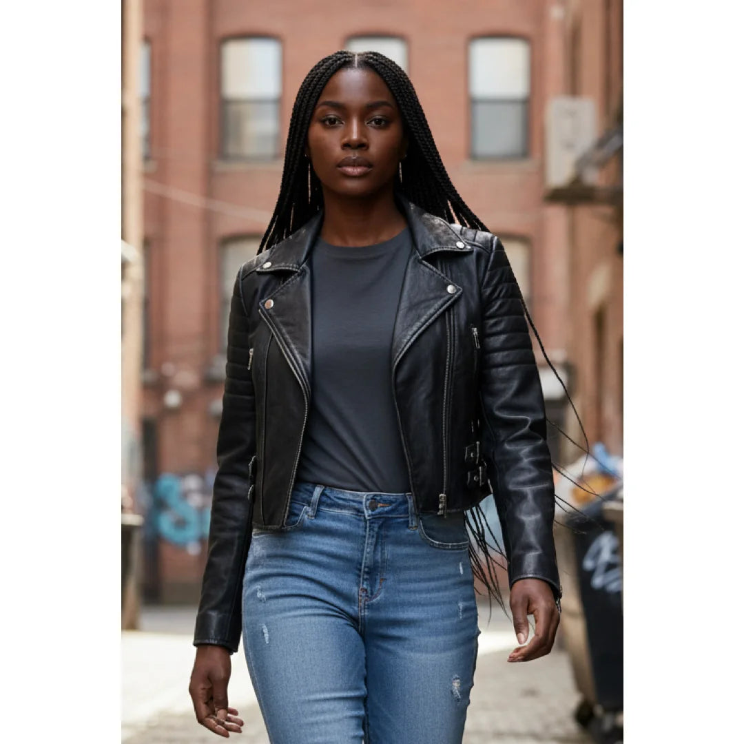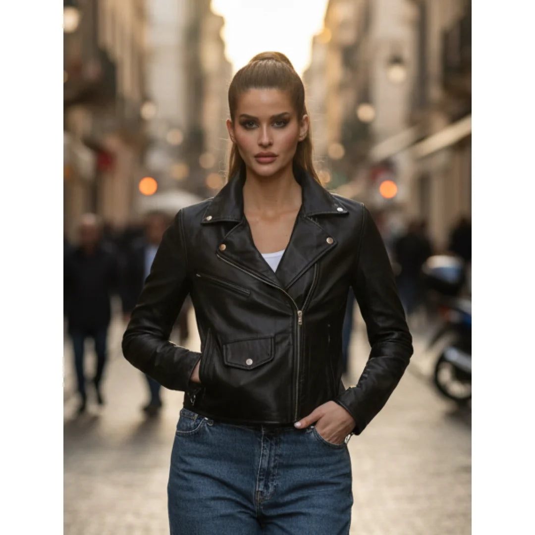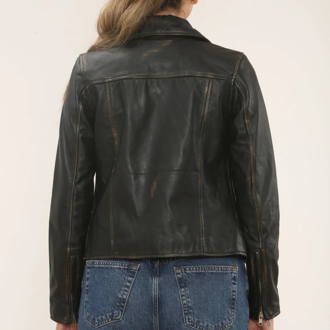 Women's Real Lamb Nappa Leather Vintage Biker Jacket
