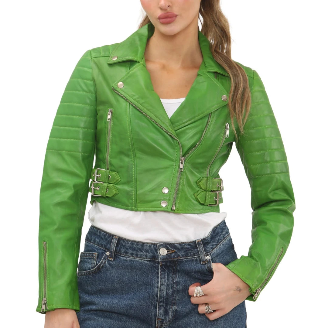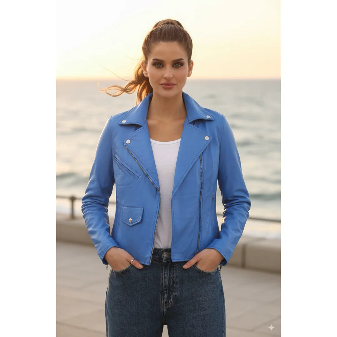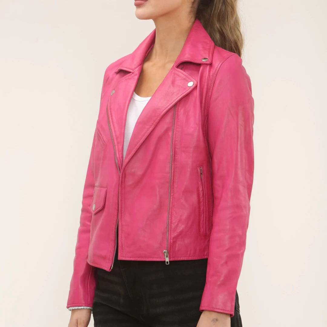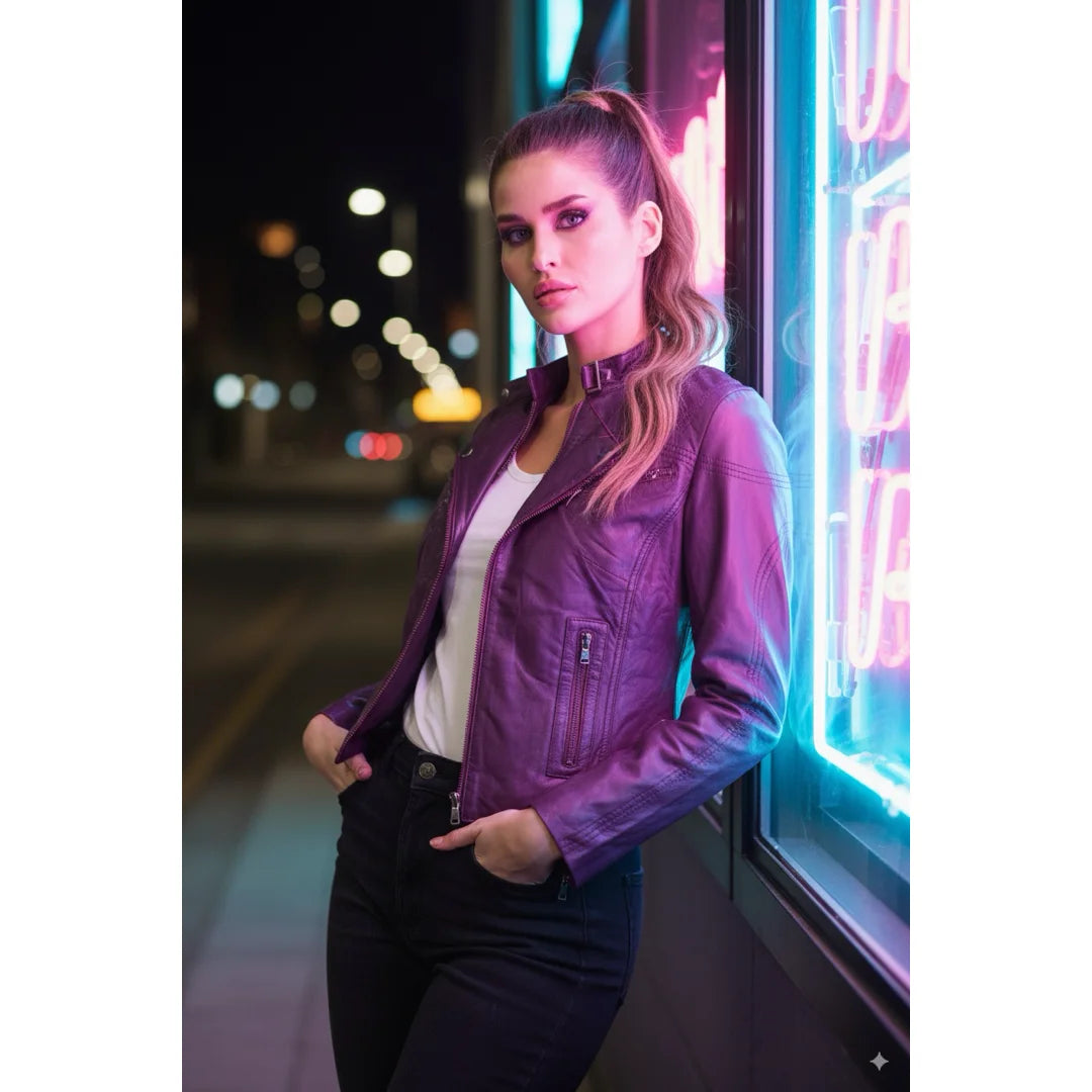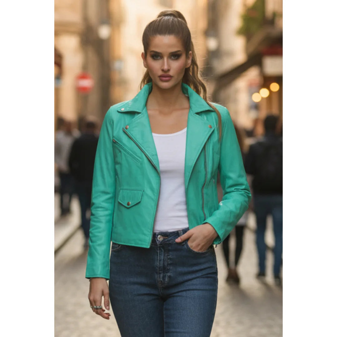 Women's Real Lamb Nappa Leather Vintage Biker Jacket