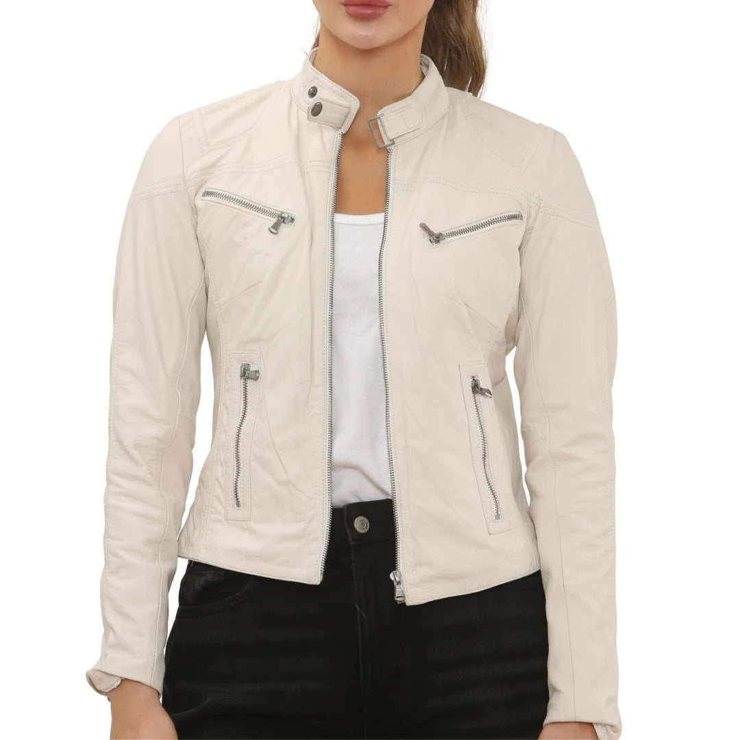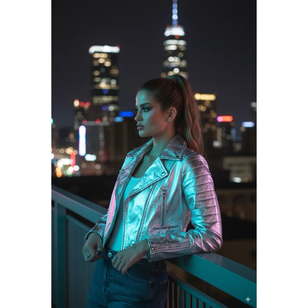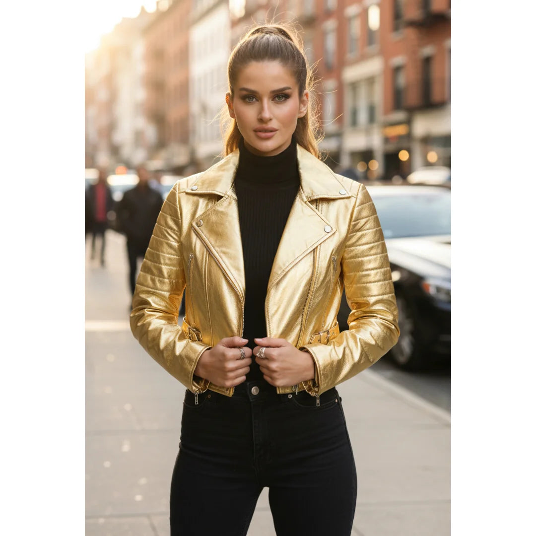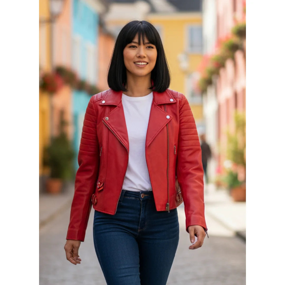 Women's Real Lamb Nappa Leather Vintage Biker Jacket