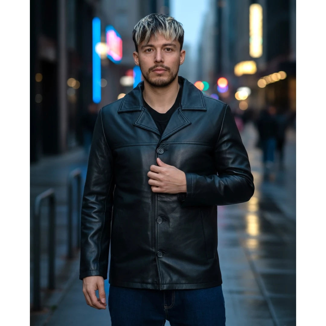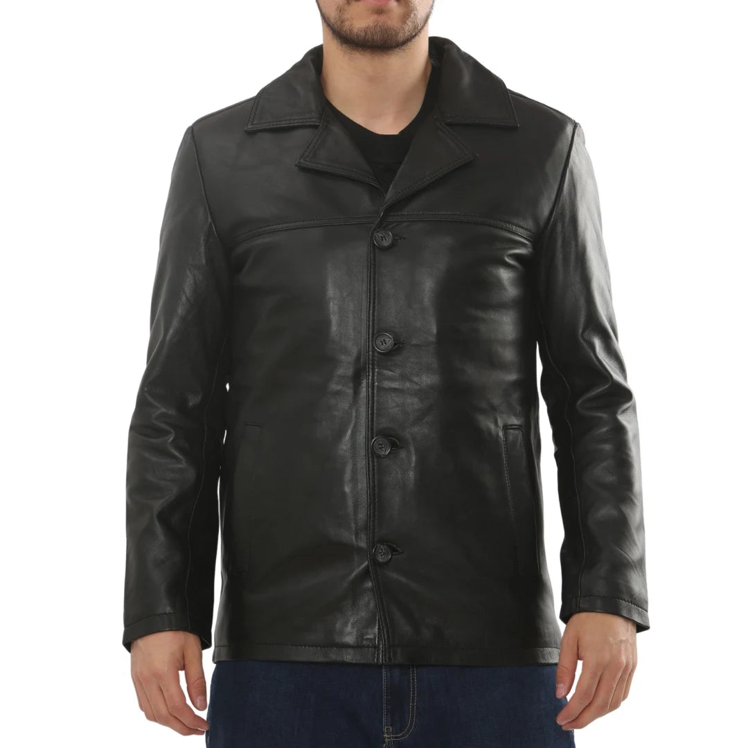 Men's Leather Car Coat Collared Blazer Style Jacket