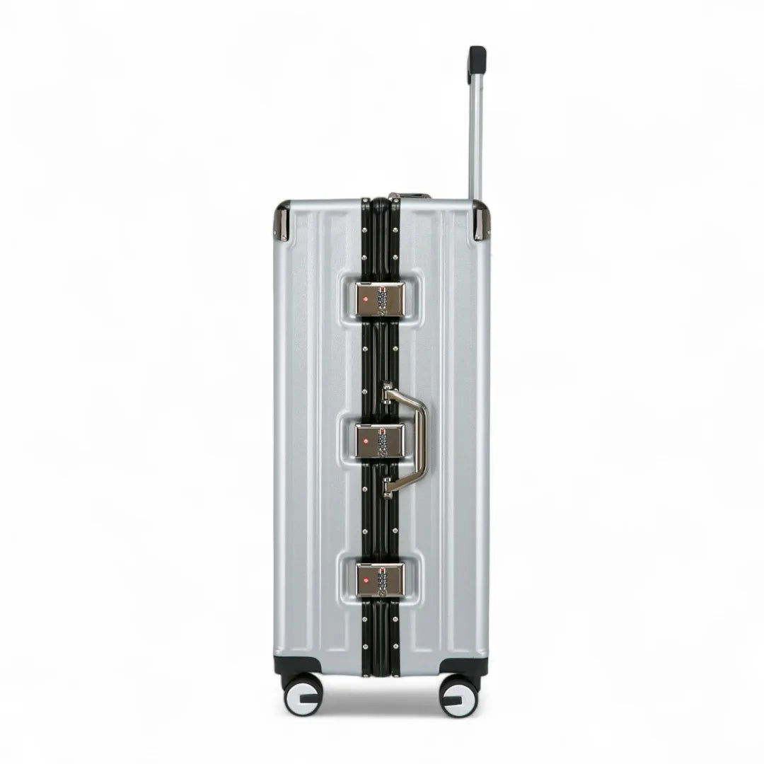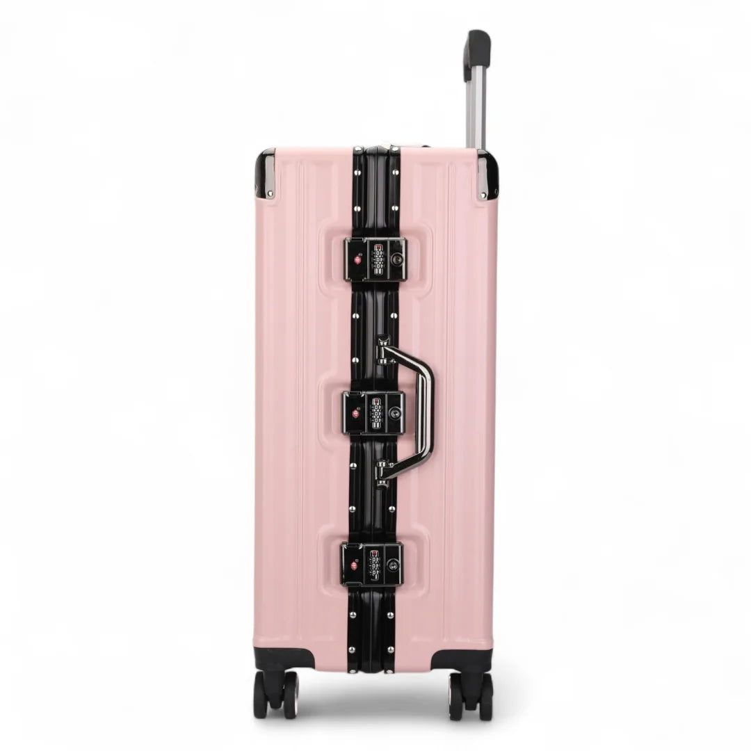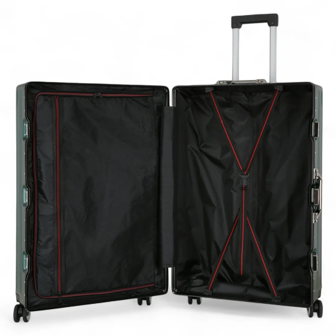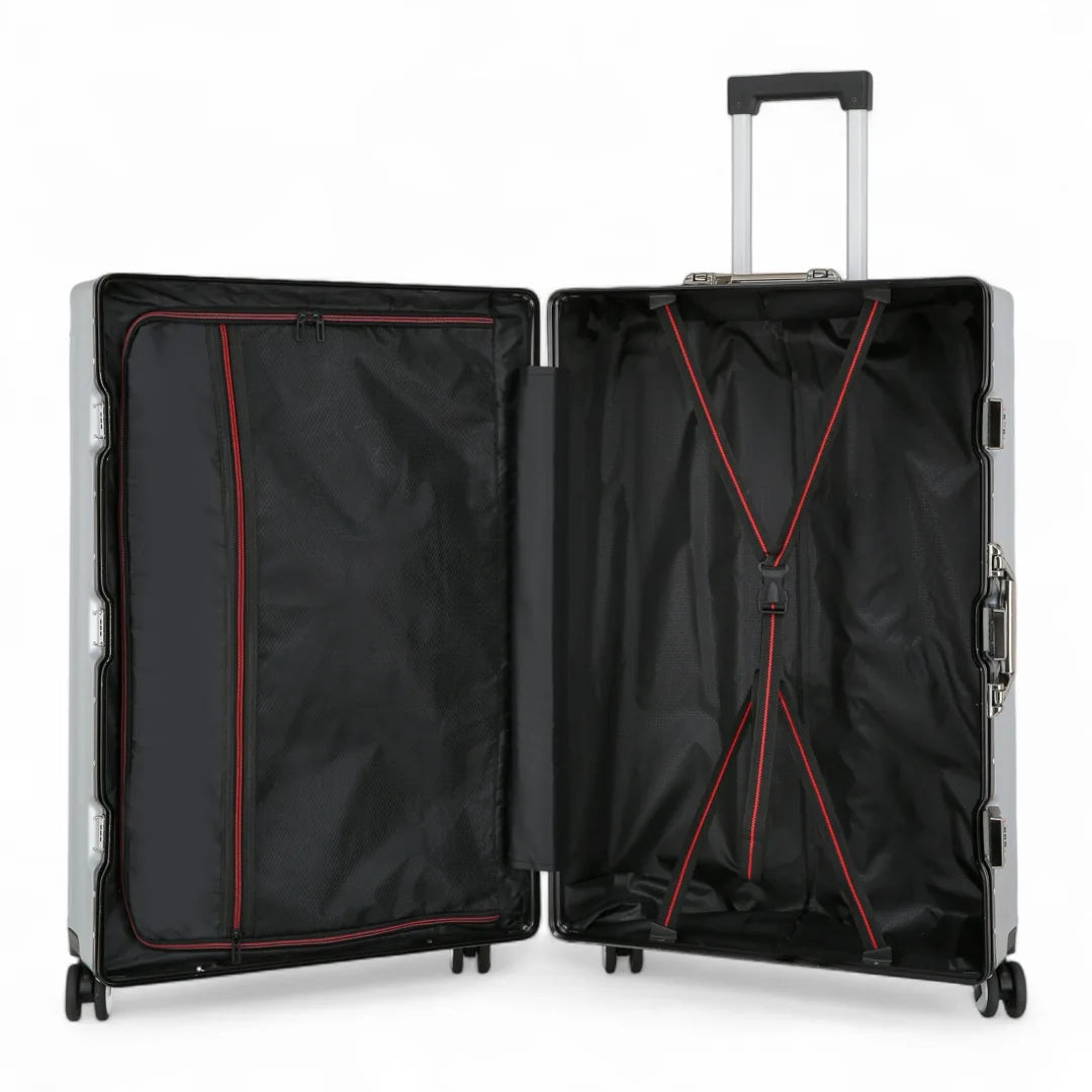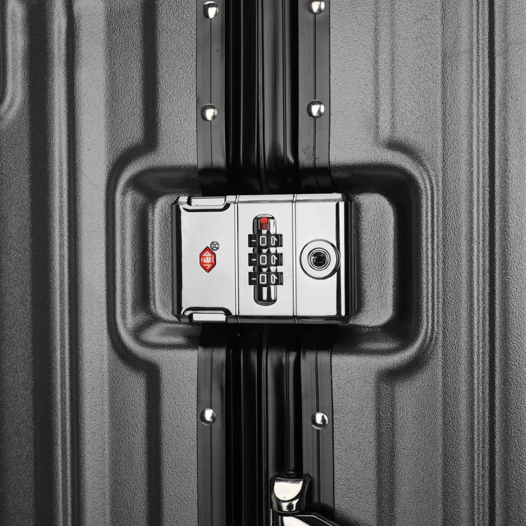 * Reinforced Aluminum Corner Frame: Designed with a sturdy aluminum frame at the corners, the luggage provides added structural support and enhanced durability against rough handling