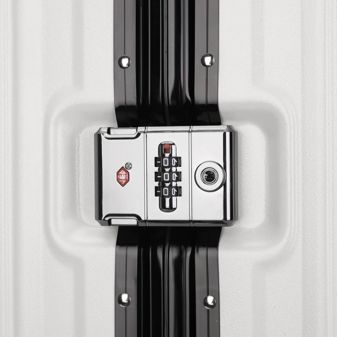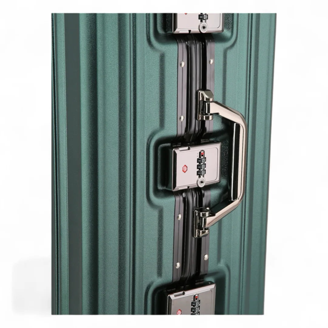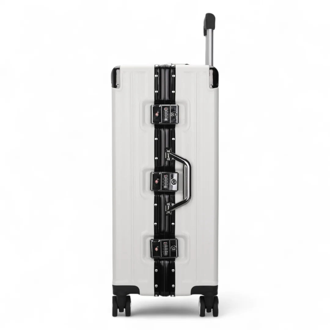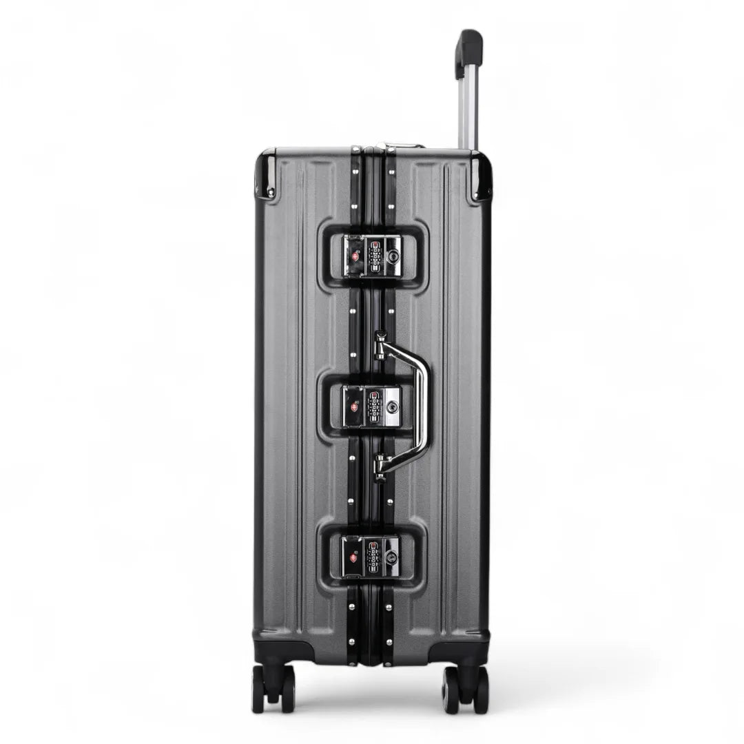 * Reinforced Aluminum Corner Frame: Designed with a sturdy aluminum frame at the corners, the luggage provides added structural support and enhanced durability against rough handling