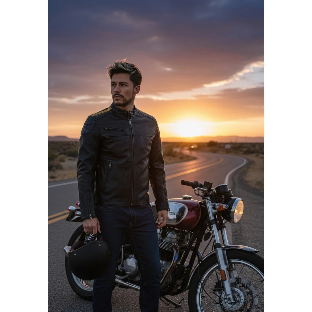 Rev up your style with our collection of men's leather motorcycle jackets, with sleek designs and superior quality that only genuine leather can provide. Whether you're hitting the open road or just looking to add some edge to your wardrobe, our jackets are perfect for both riding and casual wear. Made with high-quality materials, our jackets are built to last and provide the ultimate protection while you're cruising around the town. Our selection includes various styles, giving you the freedom to express yourself through your jacket choice. Plus, the more you wear it, the better it looks – making them the perfect investment piece for any biker.