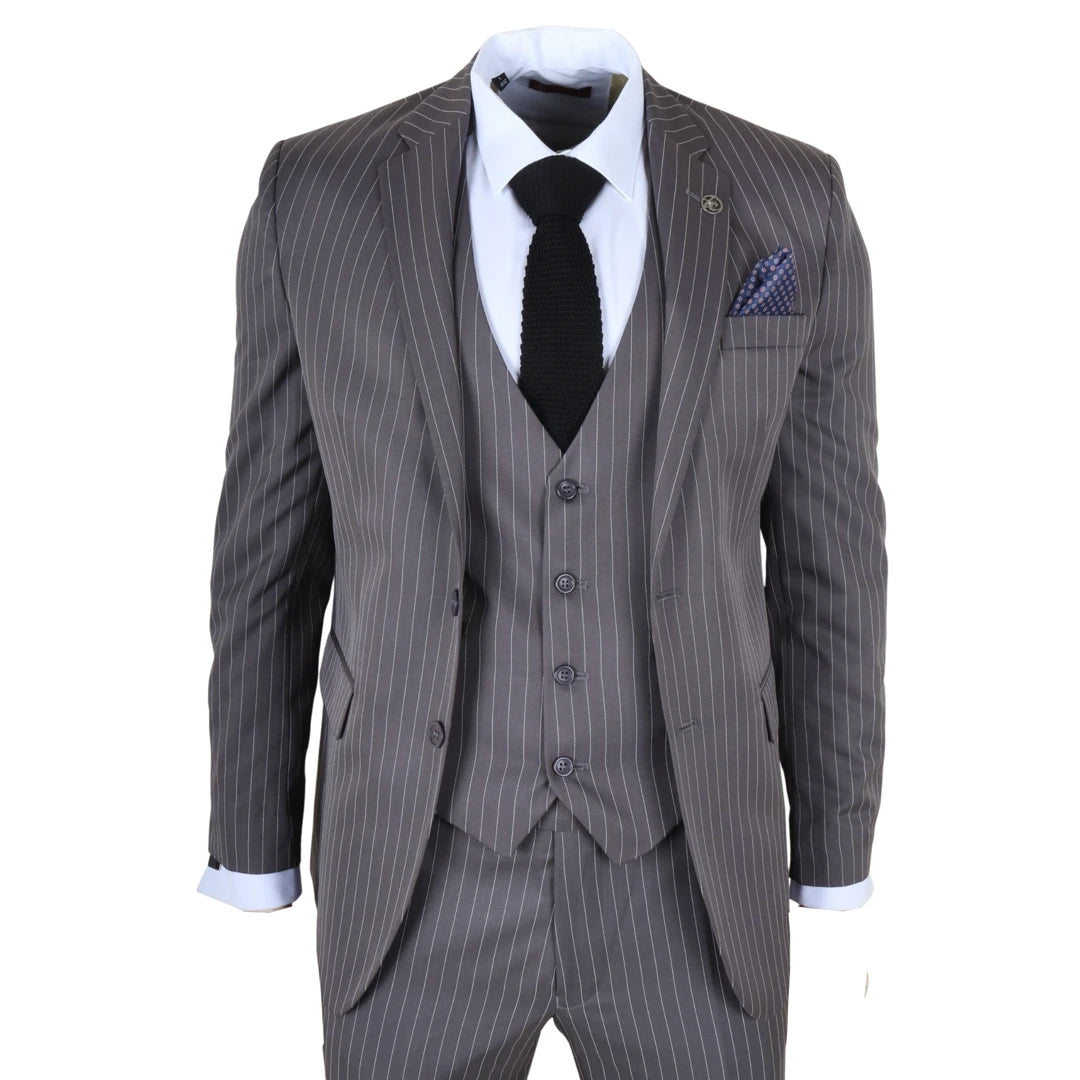 IM44 - Men's Classic Pinstripe 3 Piece Grey Suit