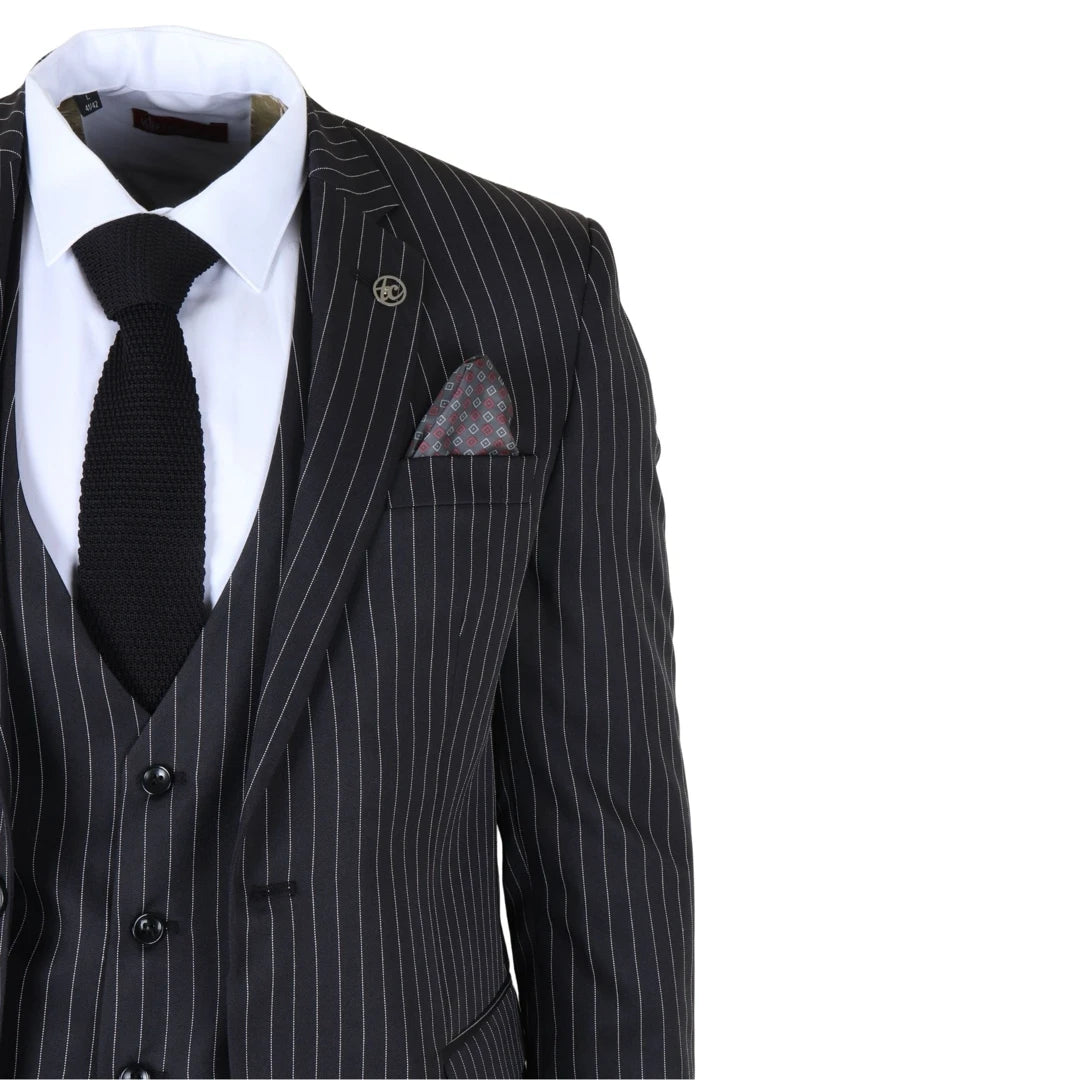 IM45 - Men's Classic Pinstripe 3 Piece Black Suit