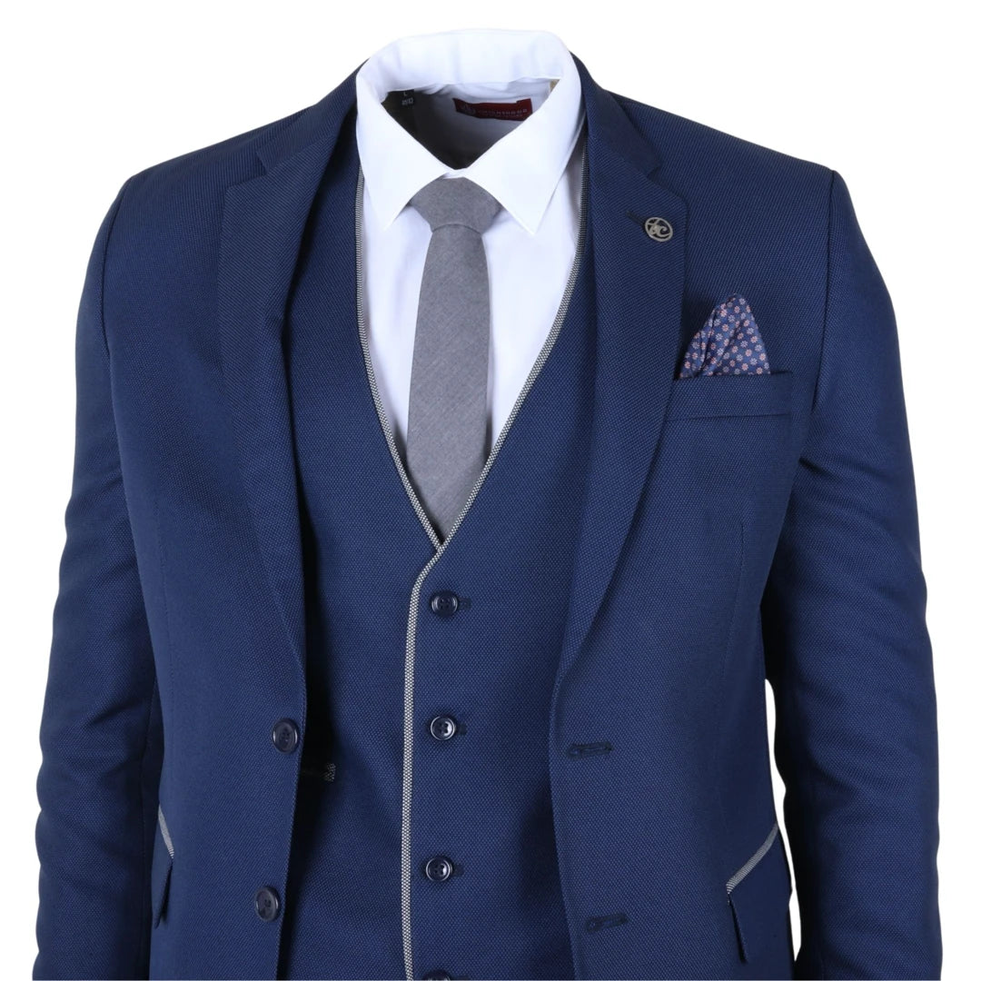 * Striking Color Combination: Features a deep blue suit with subtle grey contrast trim, delivering a modern and polished appearance suitable for business, weddings, or formal events