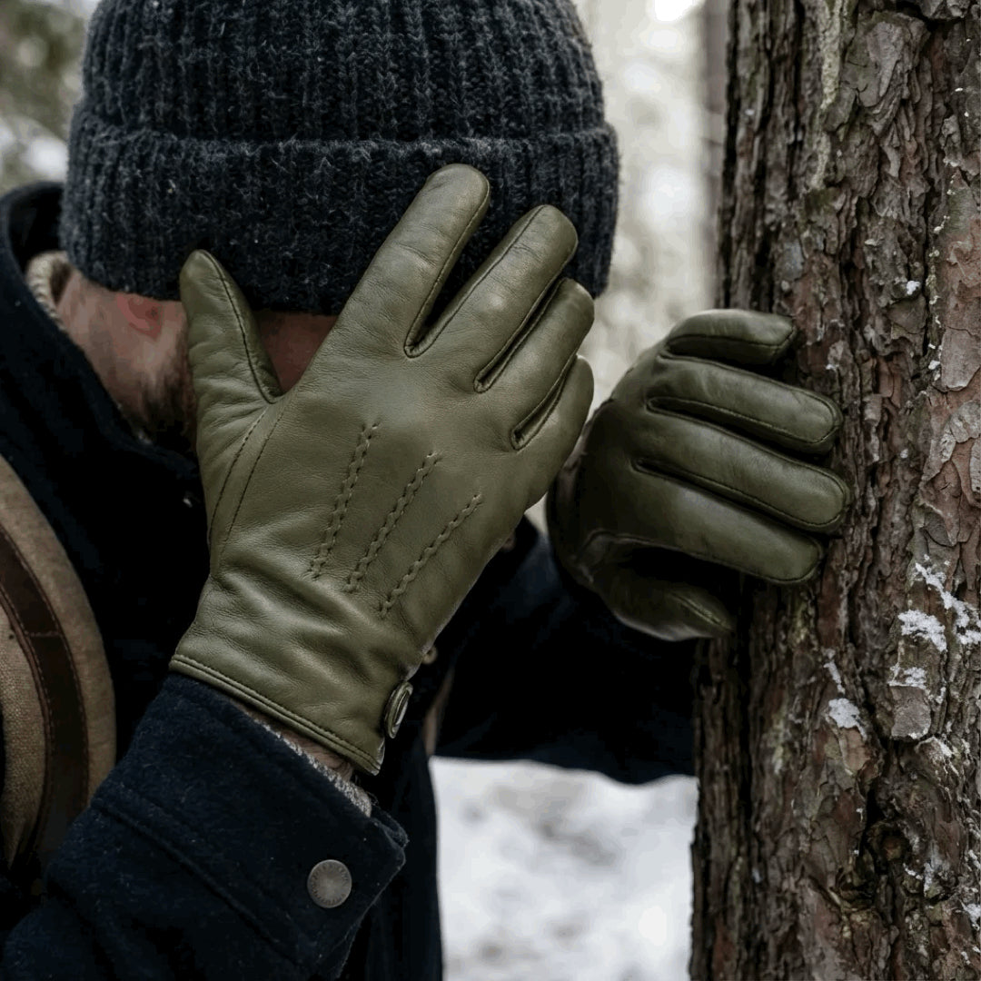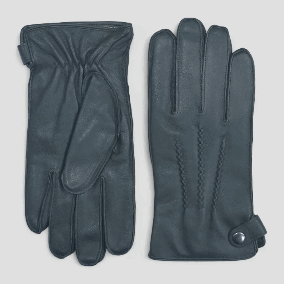 Men’s Leather Wool Lined Snap Button Closure Winter Gloves