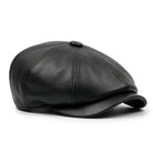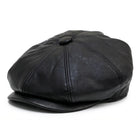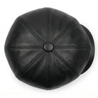 Men's Black PU Leather Vintage 8-Panel Baker Boy Hat