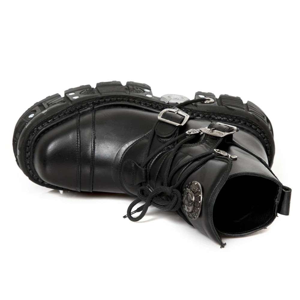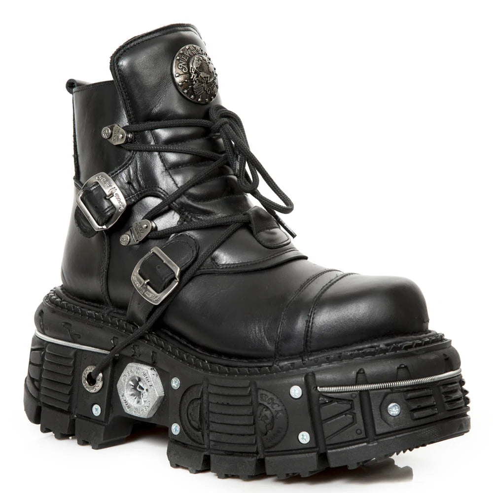 New Rock M-TANK007-S1 Black Leather Platform Ankle Boots