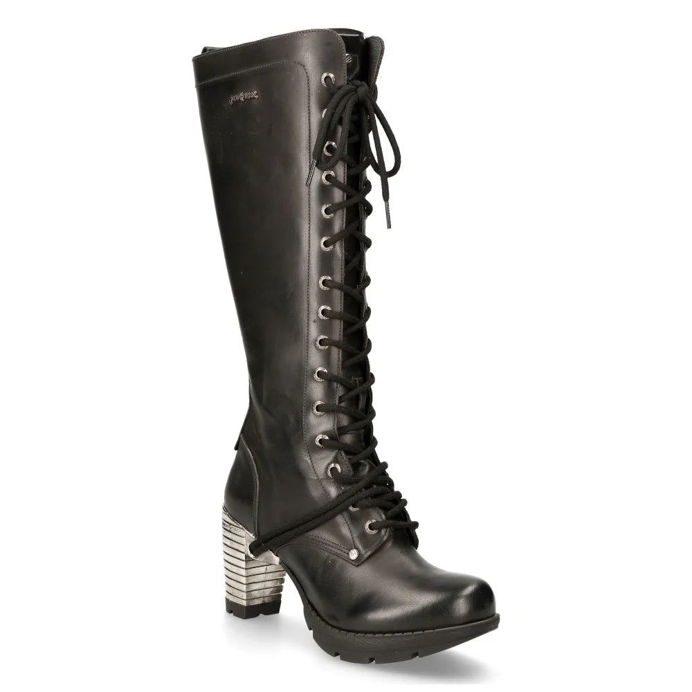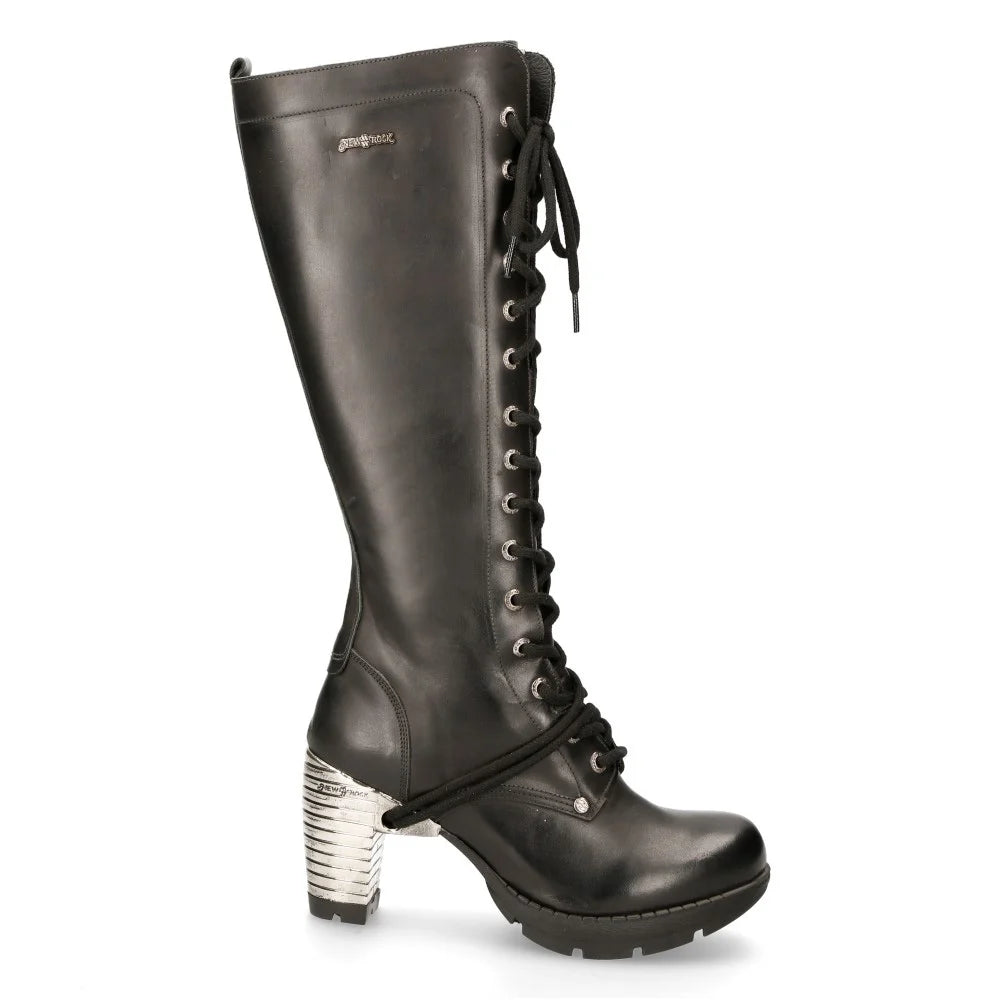 New Rock TR005-S1 Ladies Knee High Black High Heeled Boots