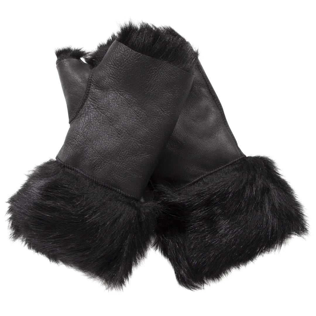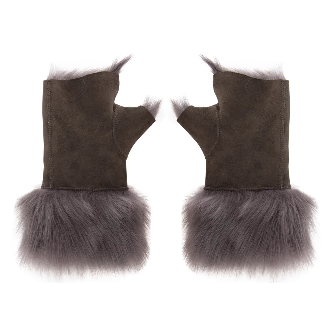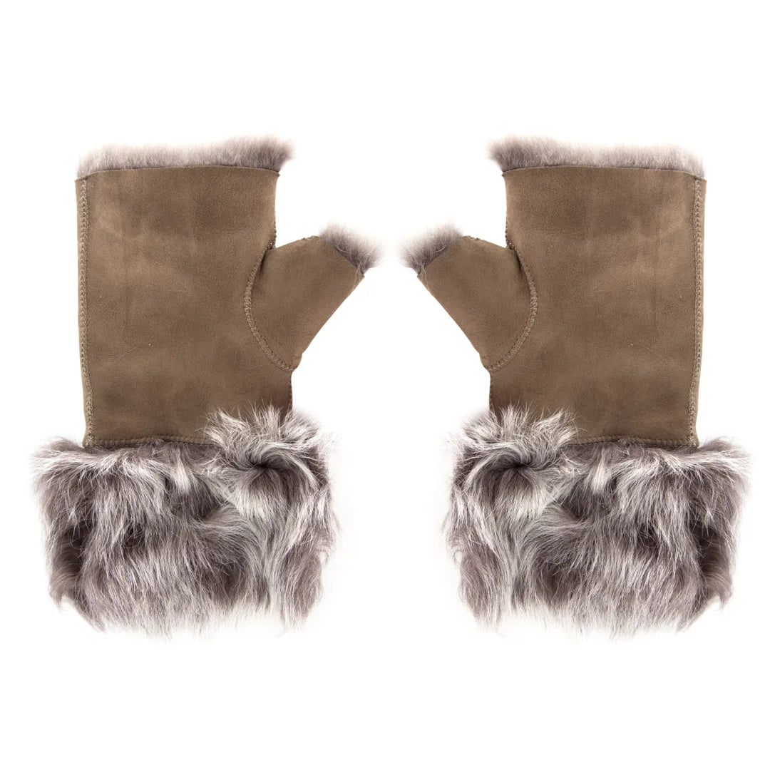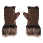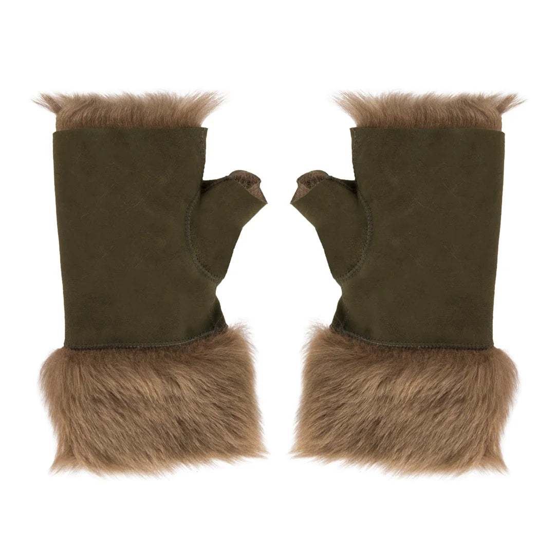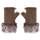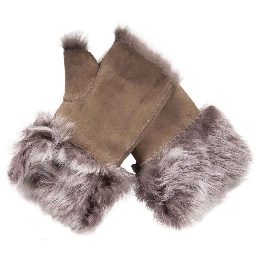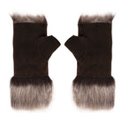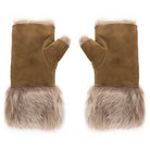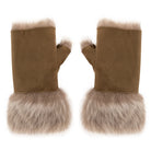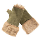 Women’s Suede Leather Shearling Lined Fingerless Gloves