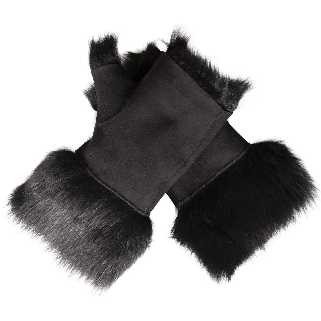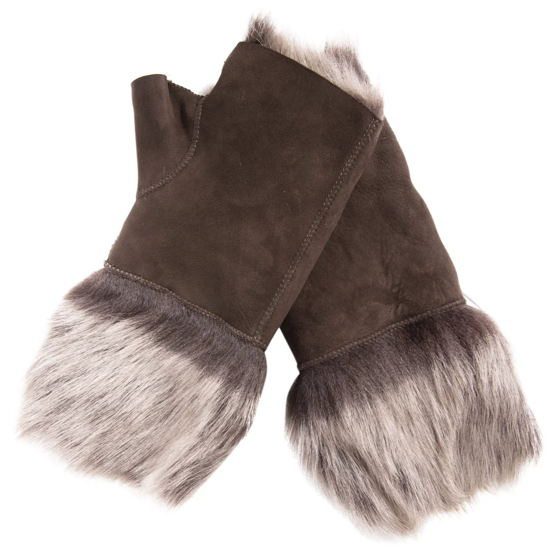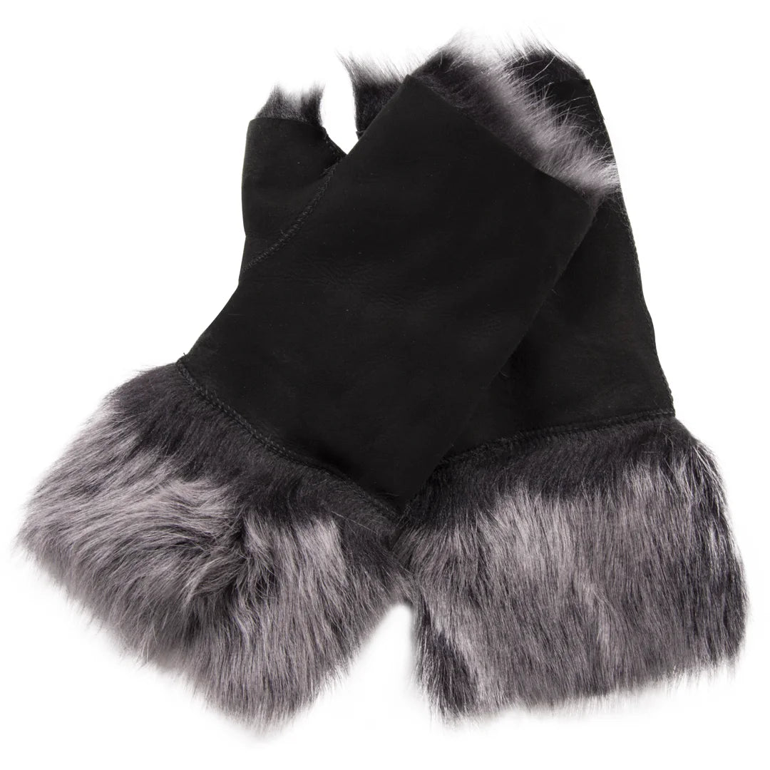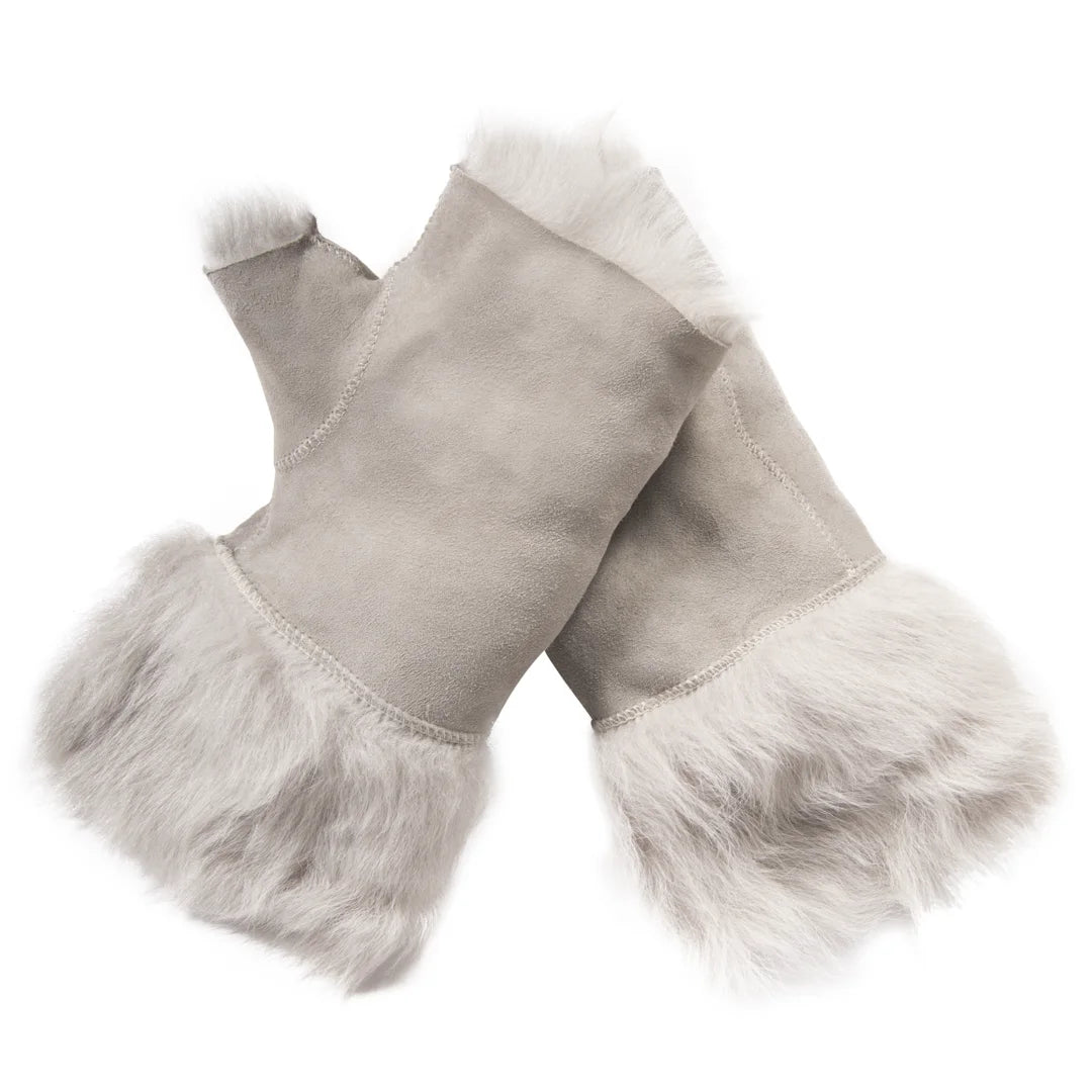 Women’s Suede Leather Shearling Lined Fingerless Gloves
