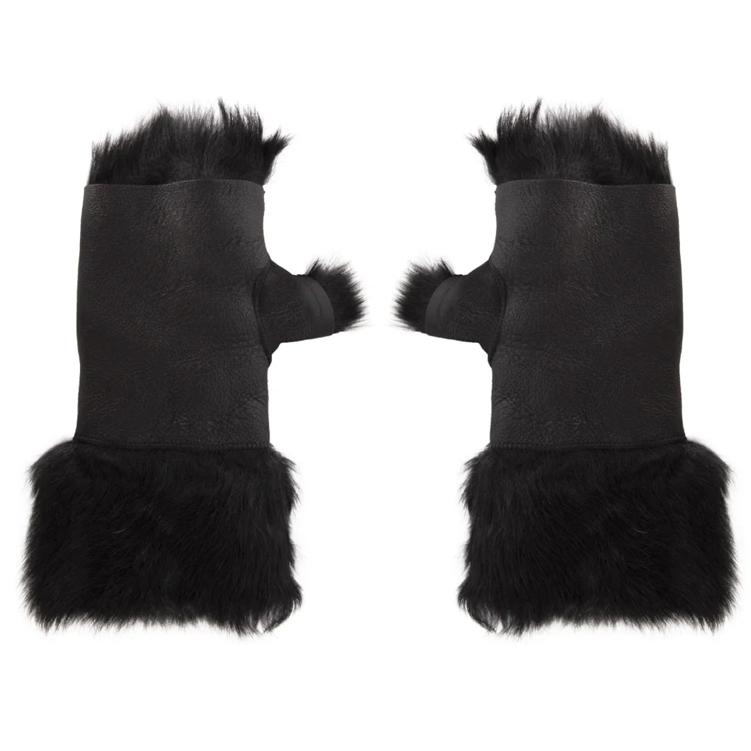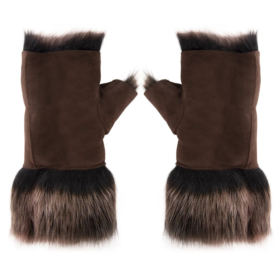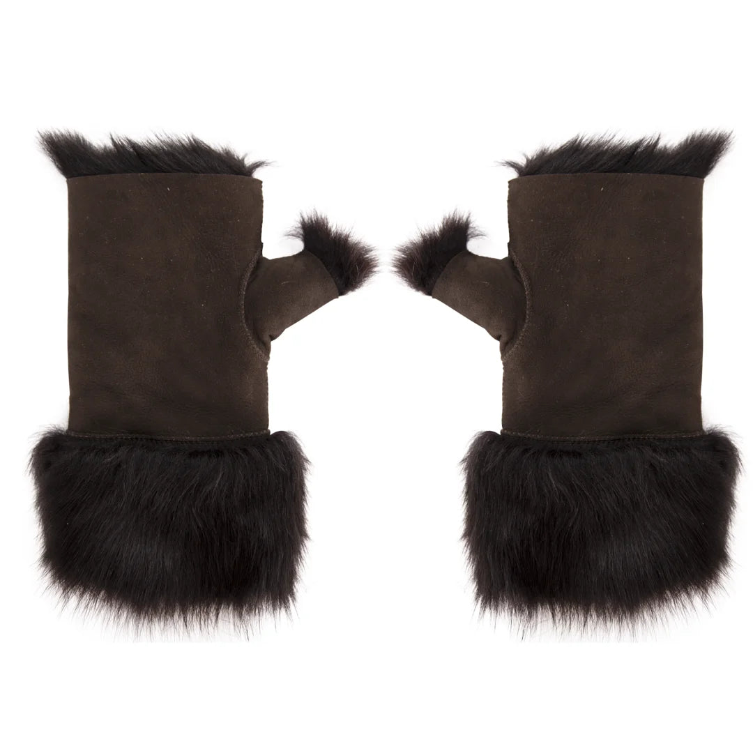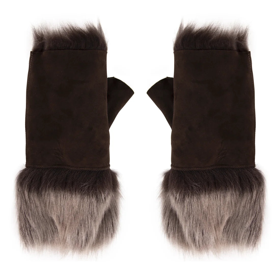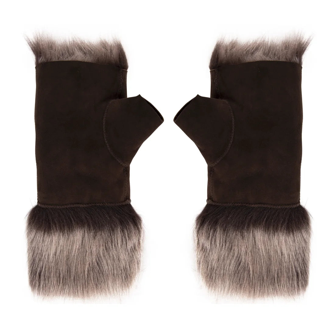 Women’s Suede Leather Shearling Lined Fingerless Gloves