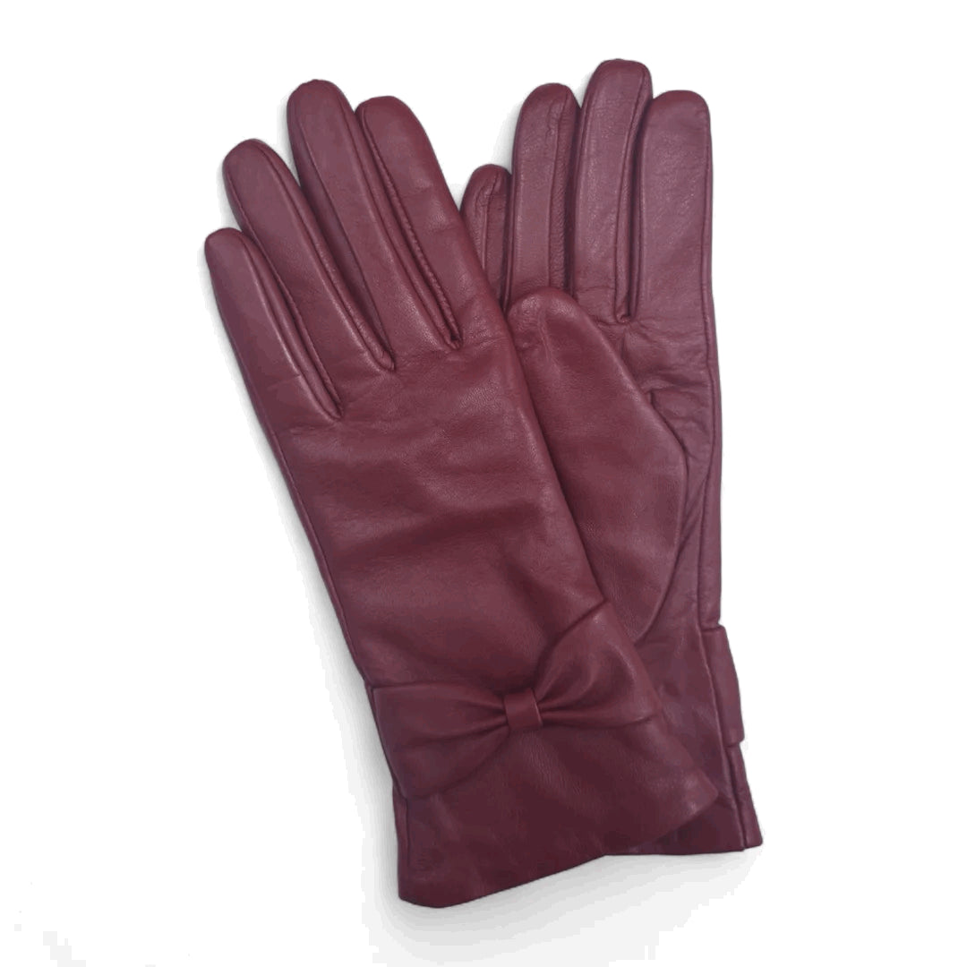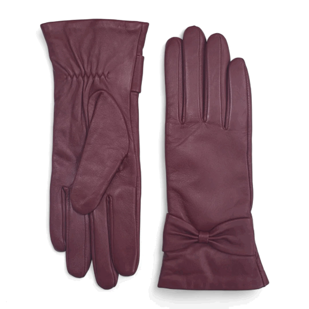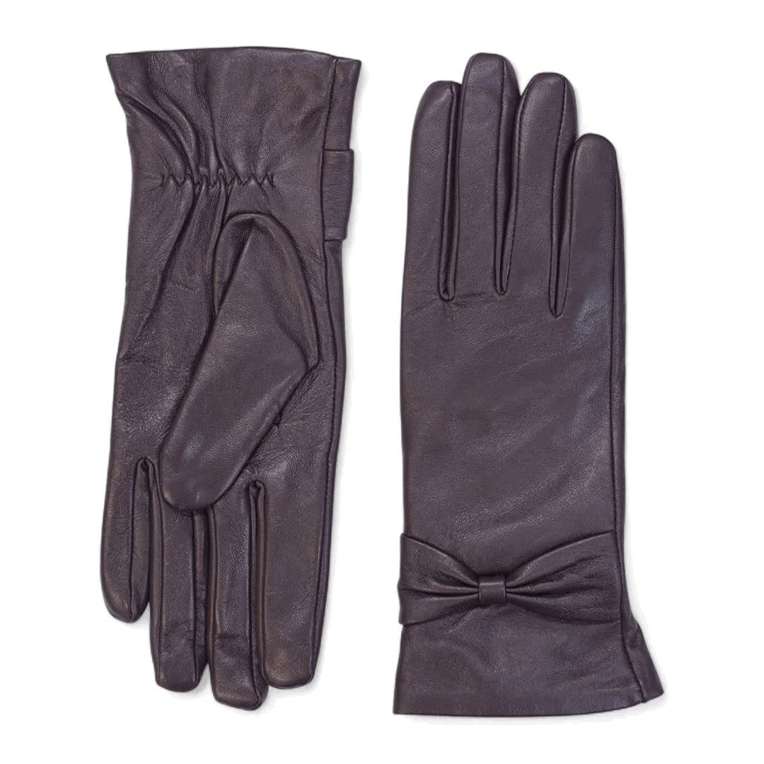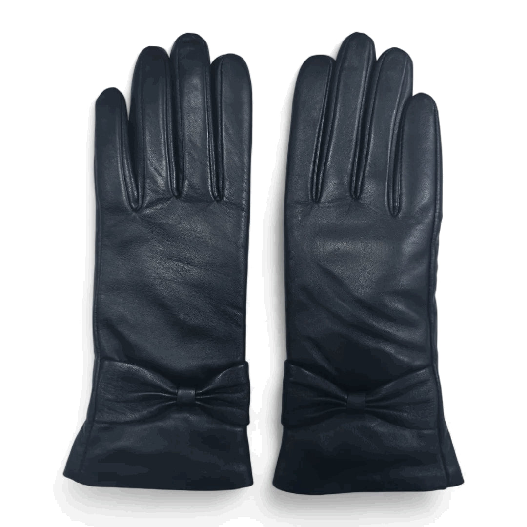 Women's Leather Wool Lined Bow Knot Accent Gloves