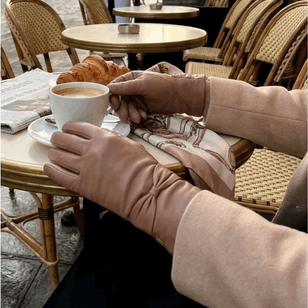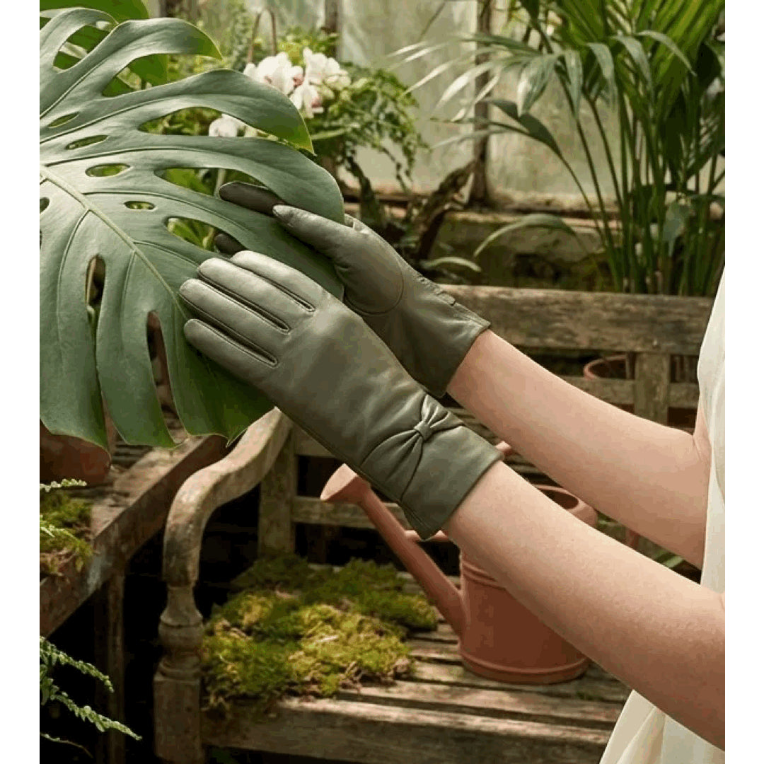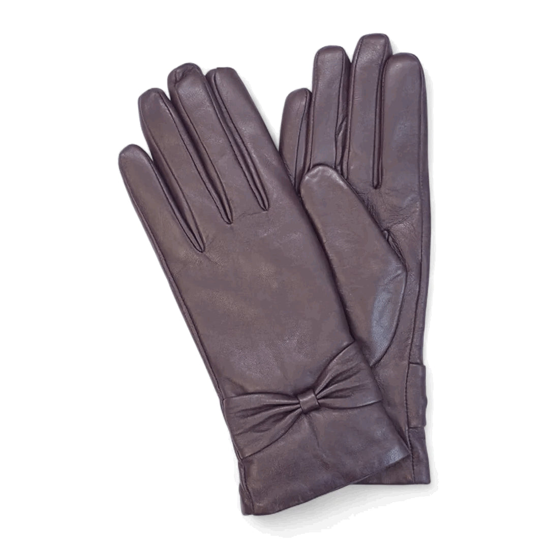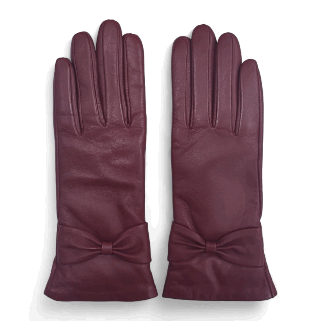 Women's Leather Wool Lined Bow Knot Accent Gloves