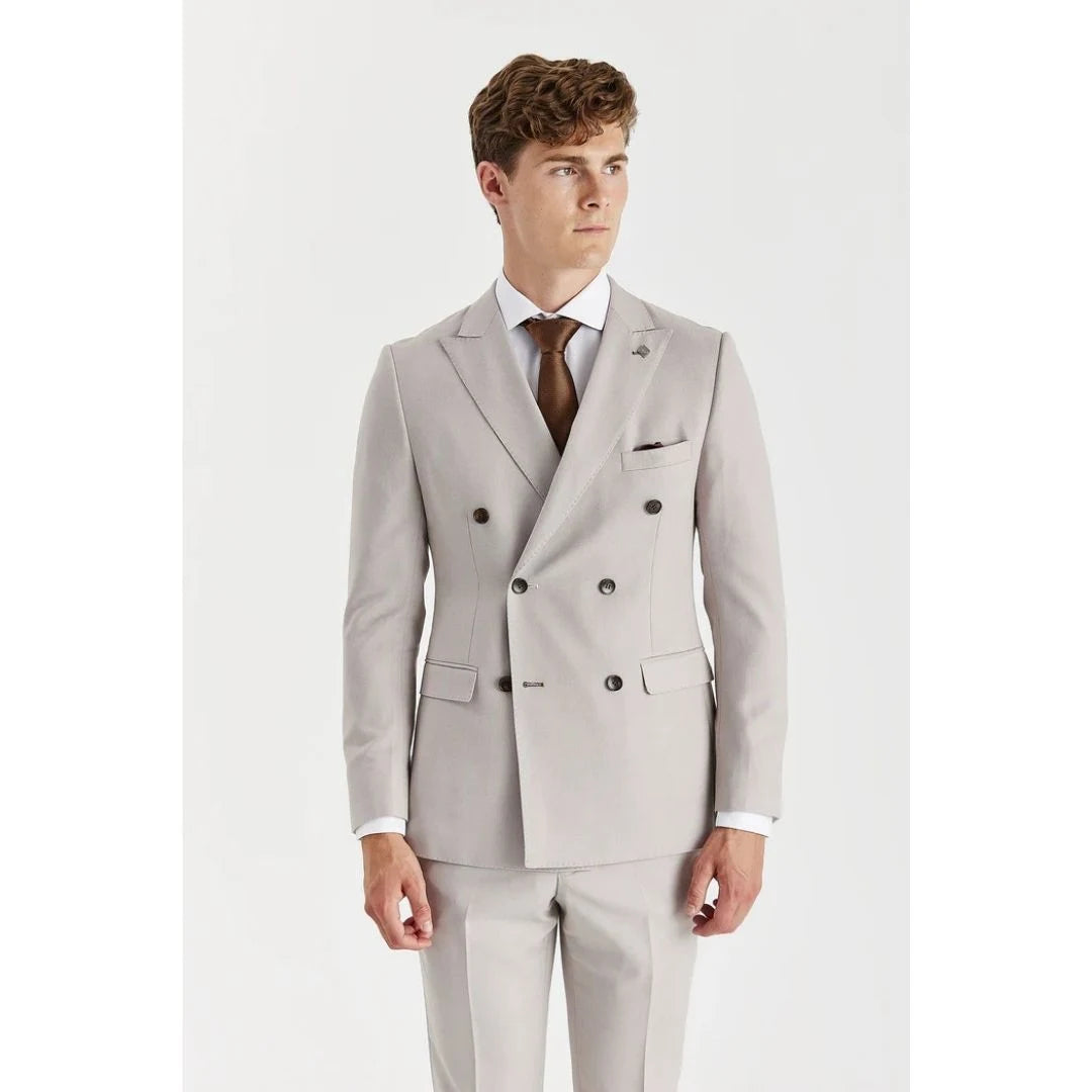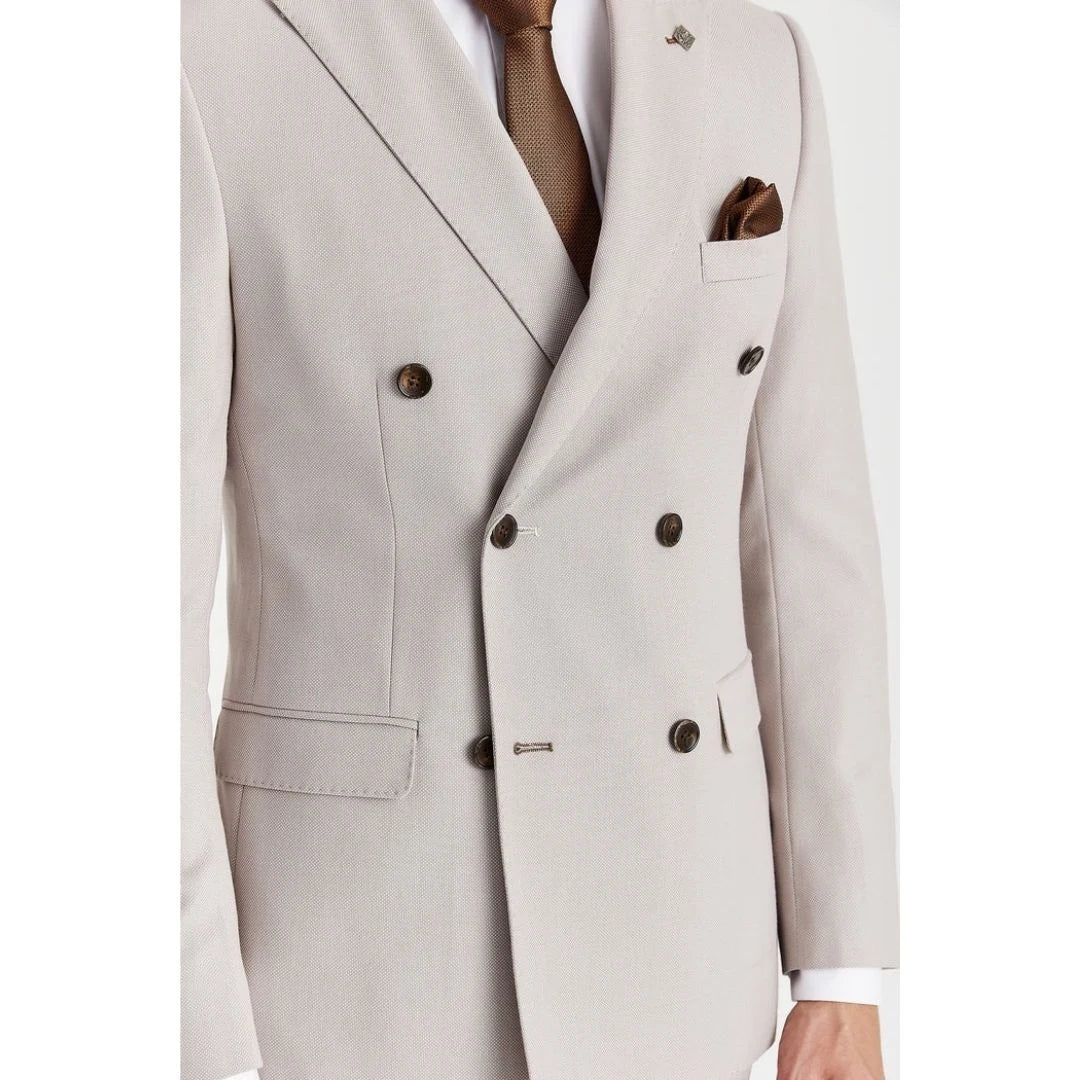 Mayfair - Men's Stone Birdseye Double Breasted Blazer