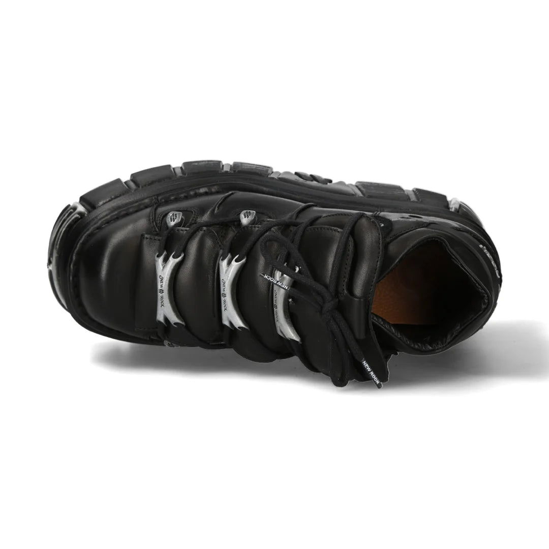 * Distinctive Lace-Up Detailing: The cord lace fastening not only secures the fit but also amplifies the rebellious, heavy-rock aesthetic synonymous with New Rock’s Metallic Collection