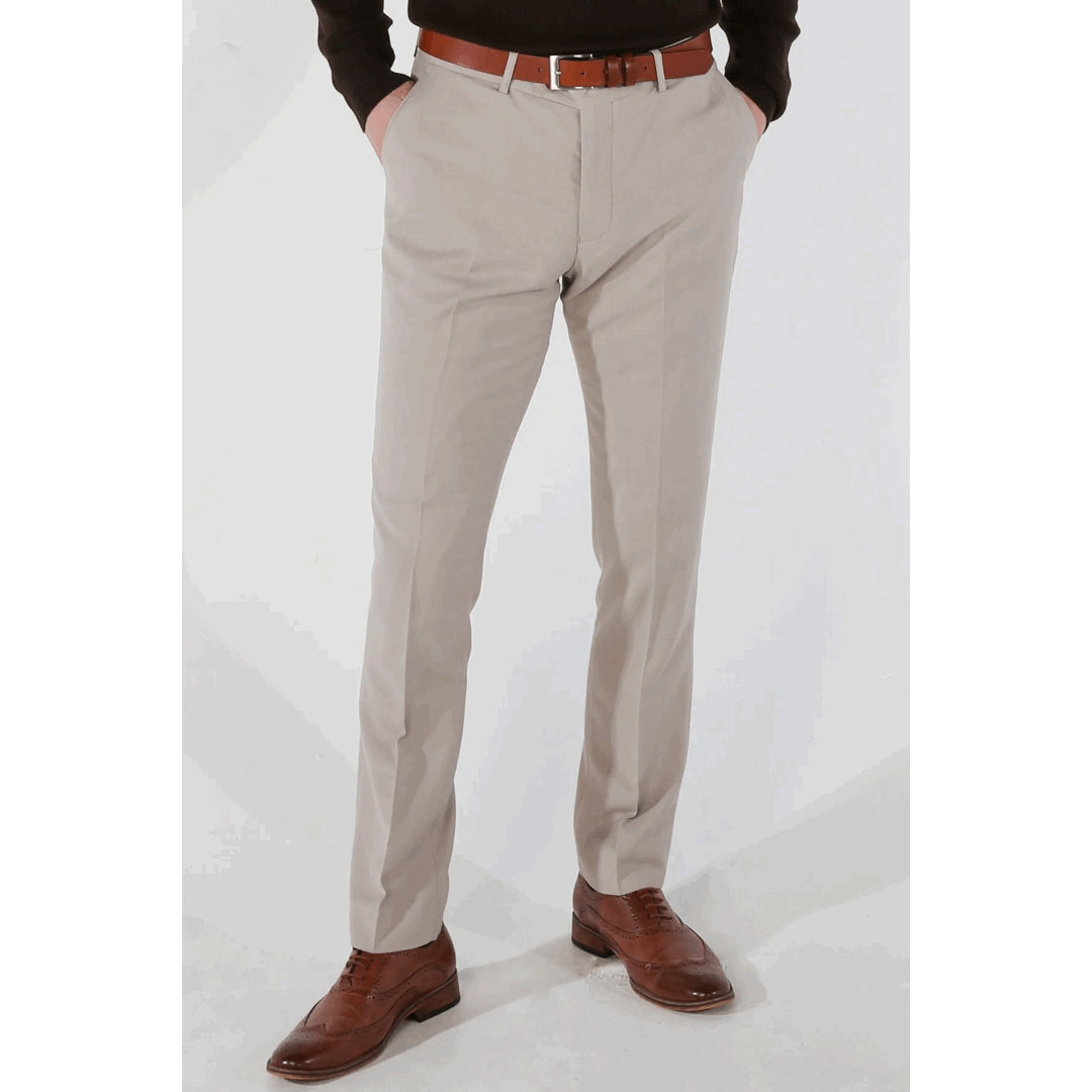 Mayfair - Men's Beige Birdseye Formal Trousers