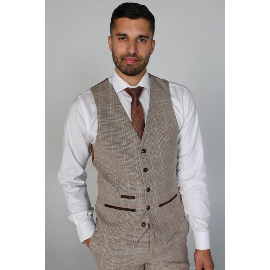 First of all, it is very significant to choose a men's tweed waistcoat that suits you. This means that you should not choose a model that is too short or too long. Ideally, your men’s tweed waistcoat should reach the waistband or just below it, covering it.