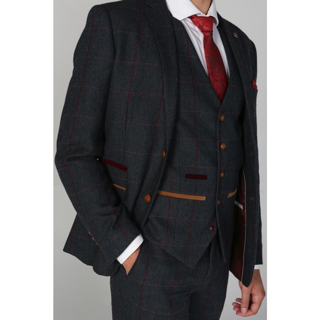 A men’s tweed waistcoat can also look great when in a different contrasting shade of your suit, as this can add a different color layer to the outfit. For example, if your suit is in the grey range and you combine it with a classic white shirt, choose a men’s tweed waistcoat in red or yellow, which will highlight the look in an elegant way. Bet on black shoes so as not to clutter the look with colors.