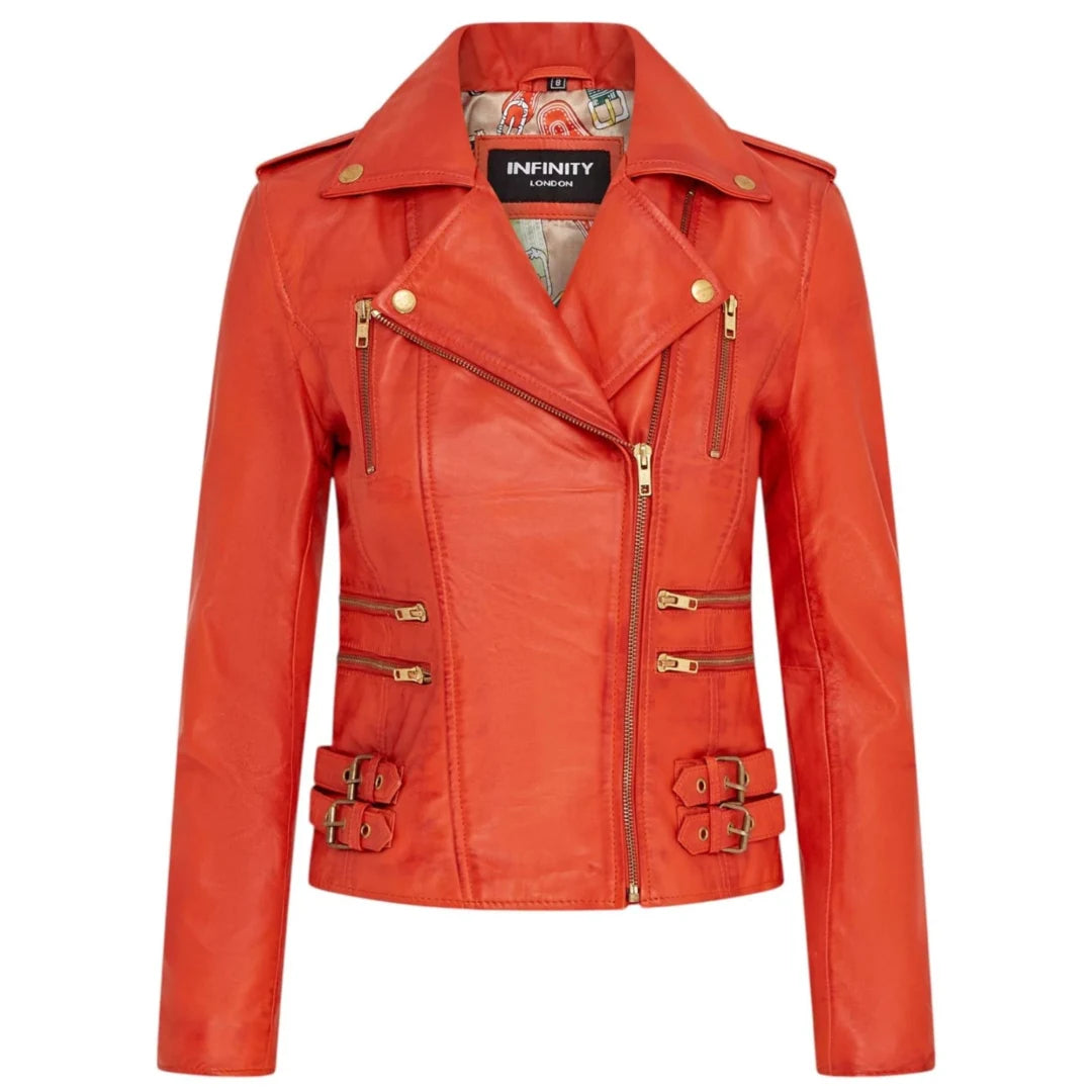 Our collection of ladies’ leather biker jackets is designed with this in mind, offering cuts and details that balance modern style with long-lasting quality. Each jacket is crafted from genuine leather, chosen not only for durability but also for the way it becomes more individual with every wear. The fit adapts, the leather softens, and the finish develops character, giving you a jacket that feels increasingly personal over time.