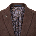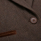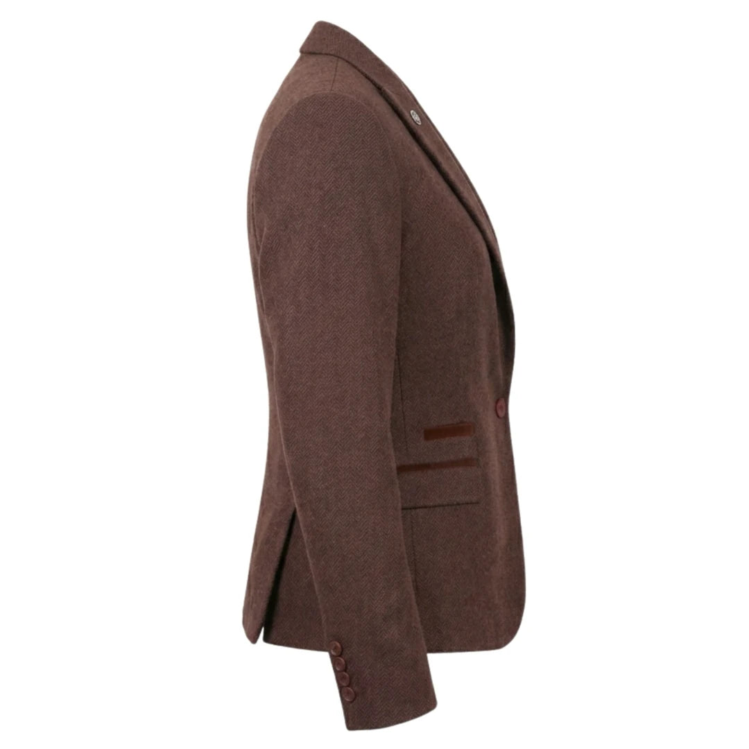 * Eye-Catching Contrasting Trims: Subtle trim details on blazer flap pockets and waistcoat edges add a modern touch to classic brown tweed, making the set stand out in any professional setting