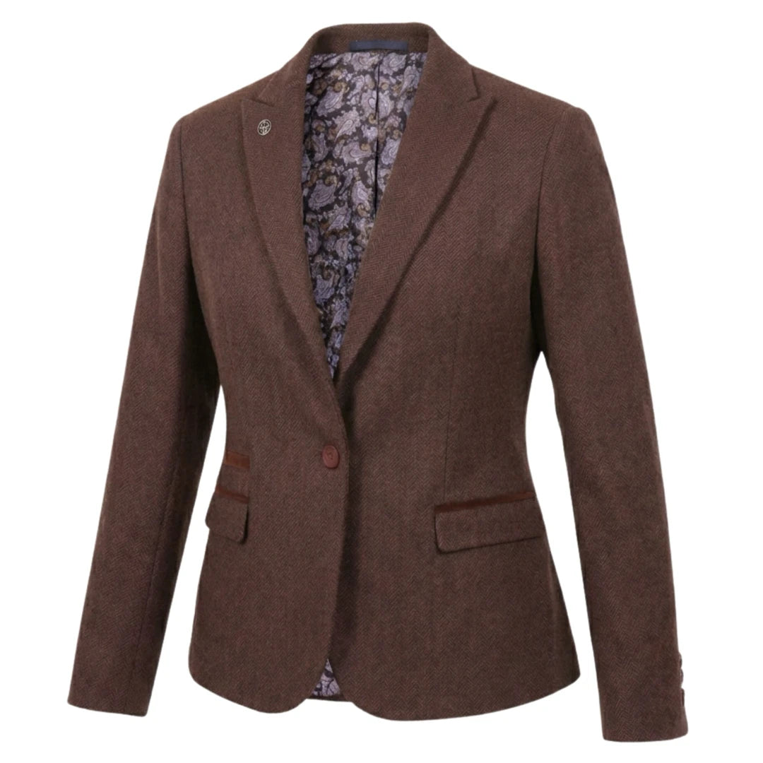 IMW-04 - Women's Brown Tweed Herringbone Blazer Waistcoat