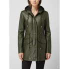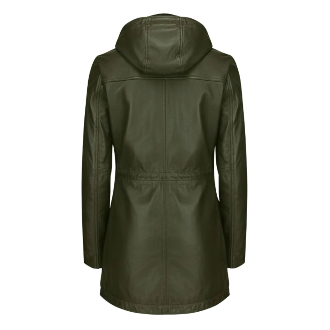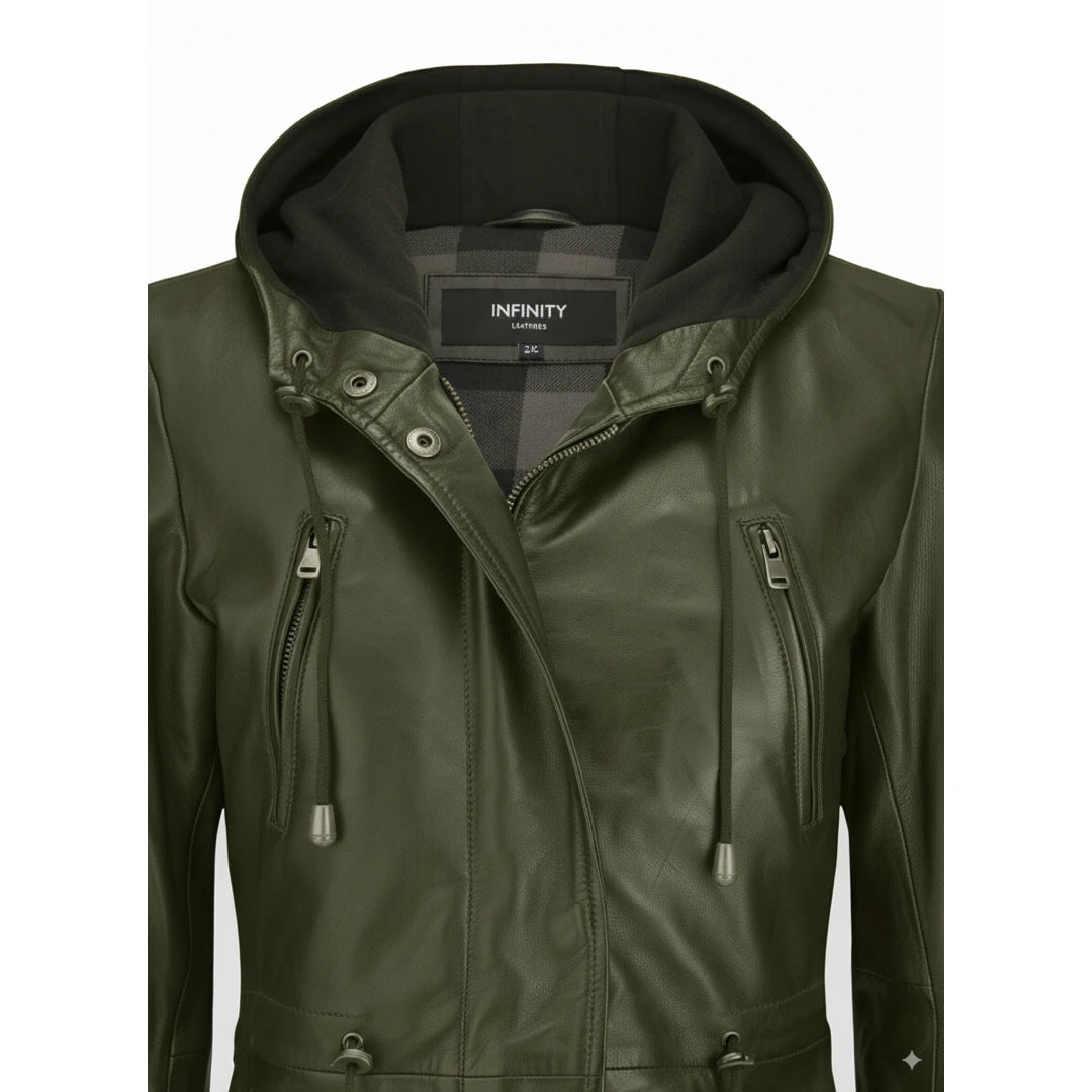 Women's Leather Peacoat Hooded Parka Jacket Navy Blue Brown