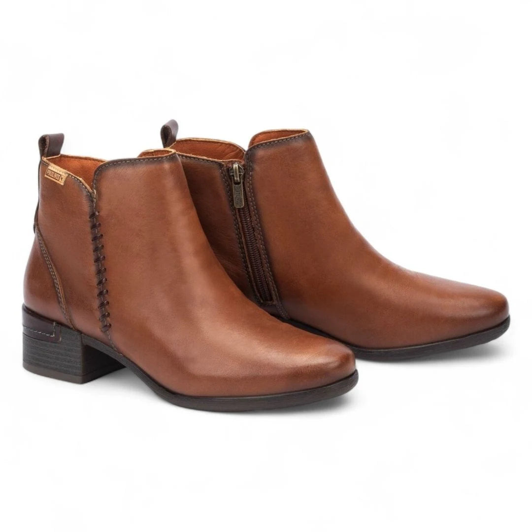 Malaga - Women’s Brown Mid Heel Zip Leather Ankle Boots